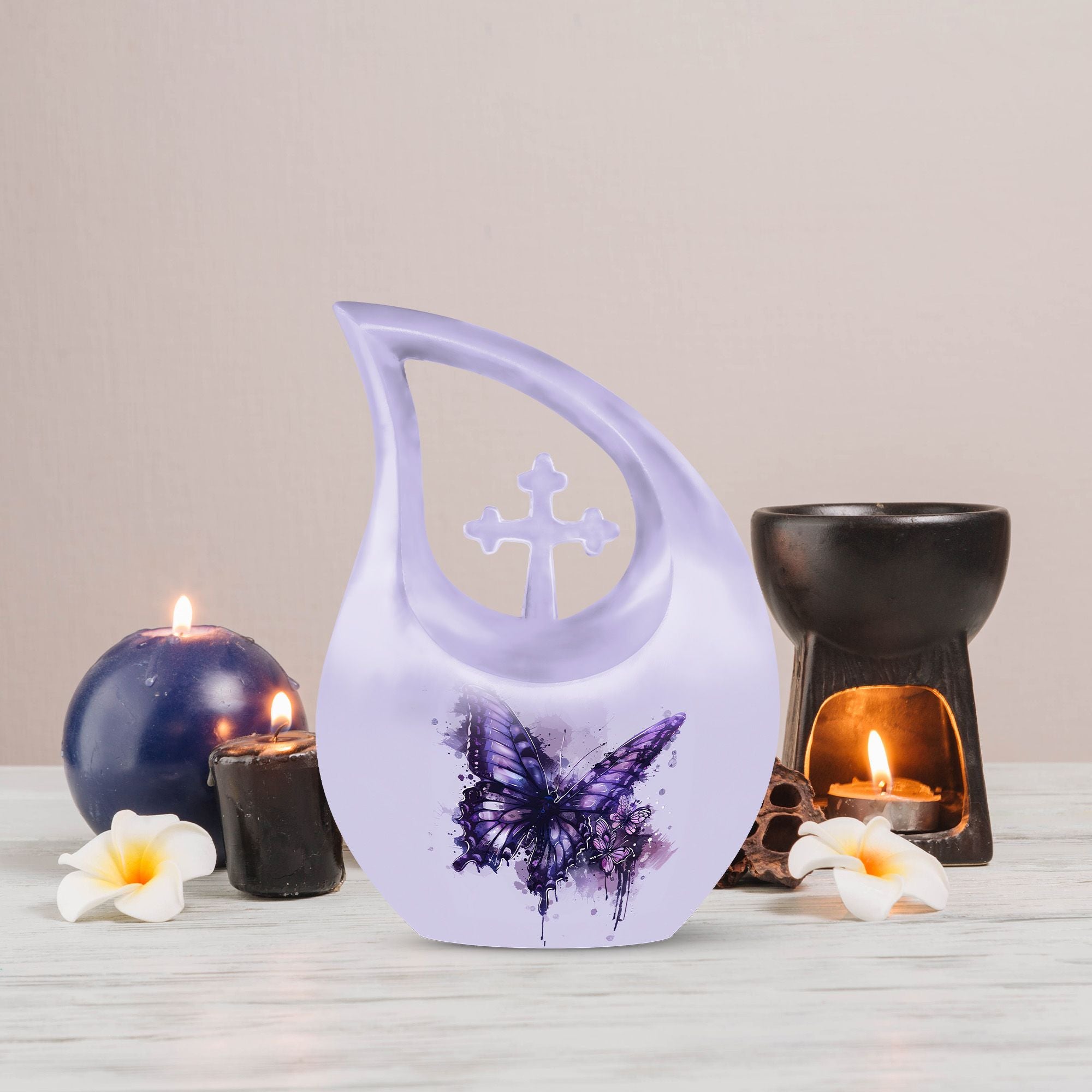 This purple butterfly cremation urn is more than a resting place—it is a heartfelt symbol of love, remembrance, and serenity. Its graceful design creates a timeless and comforting tribute to honor a cherished woman.