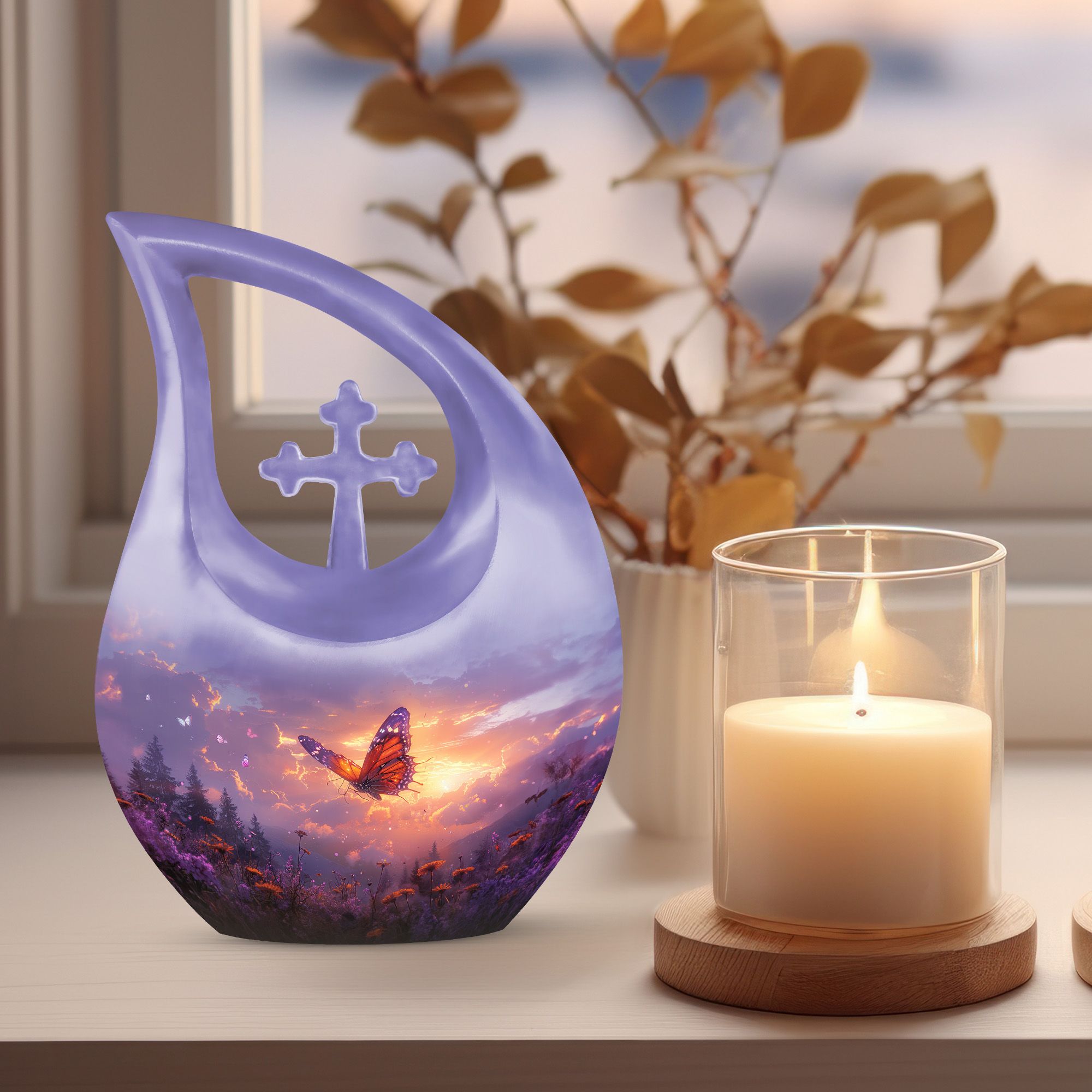 The Purple Meadow Urn is more than a vessel—it’s a work of art celebrating love’s eternal journey. Each butterfly and brushstroke speaks of hope, renewal, and the beauty of a life remembered forever.