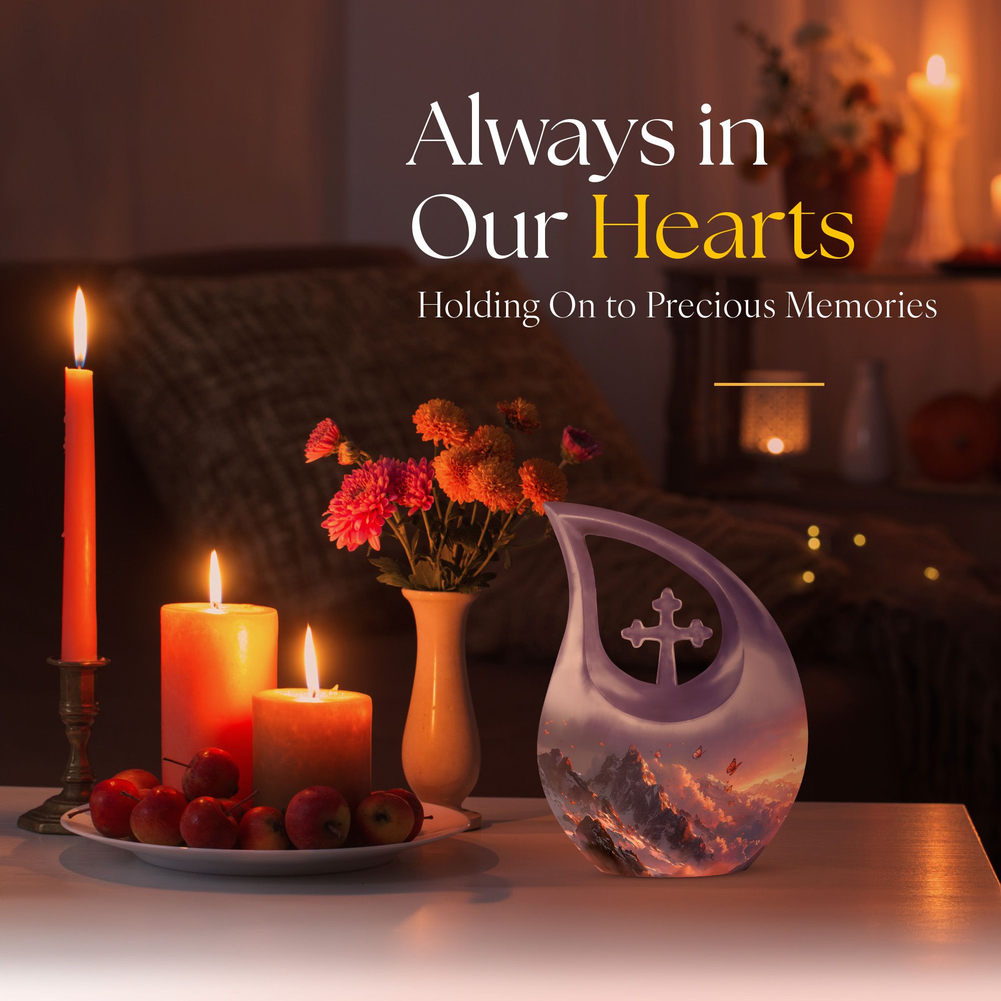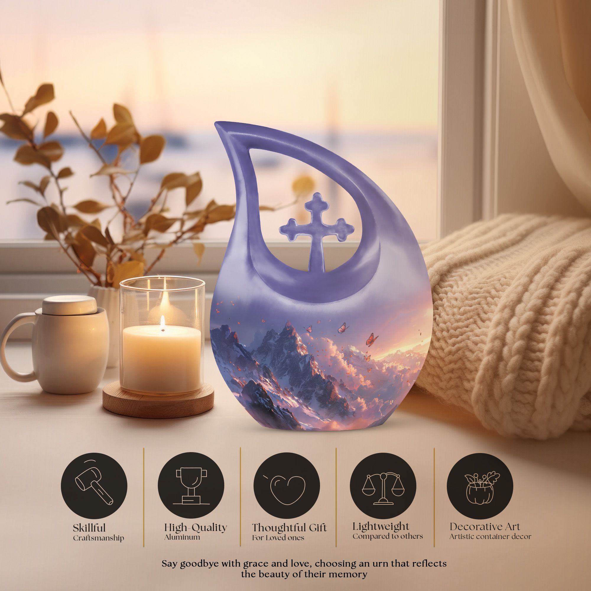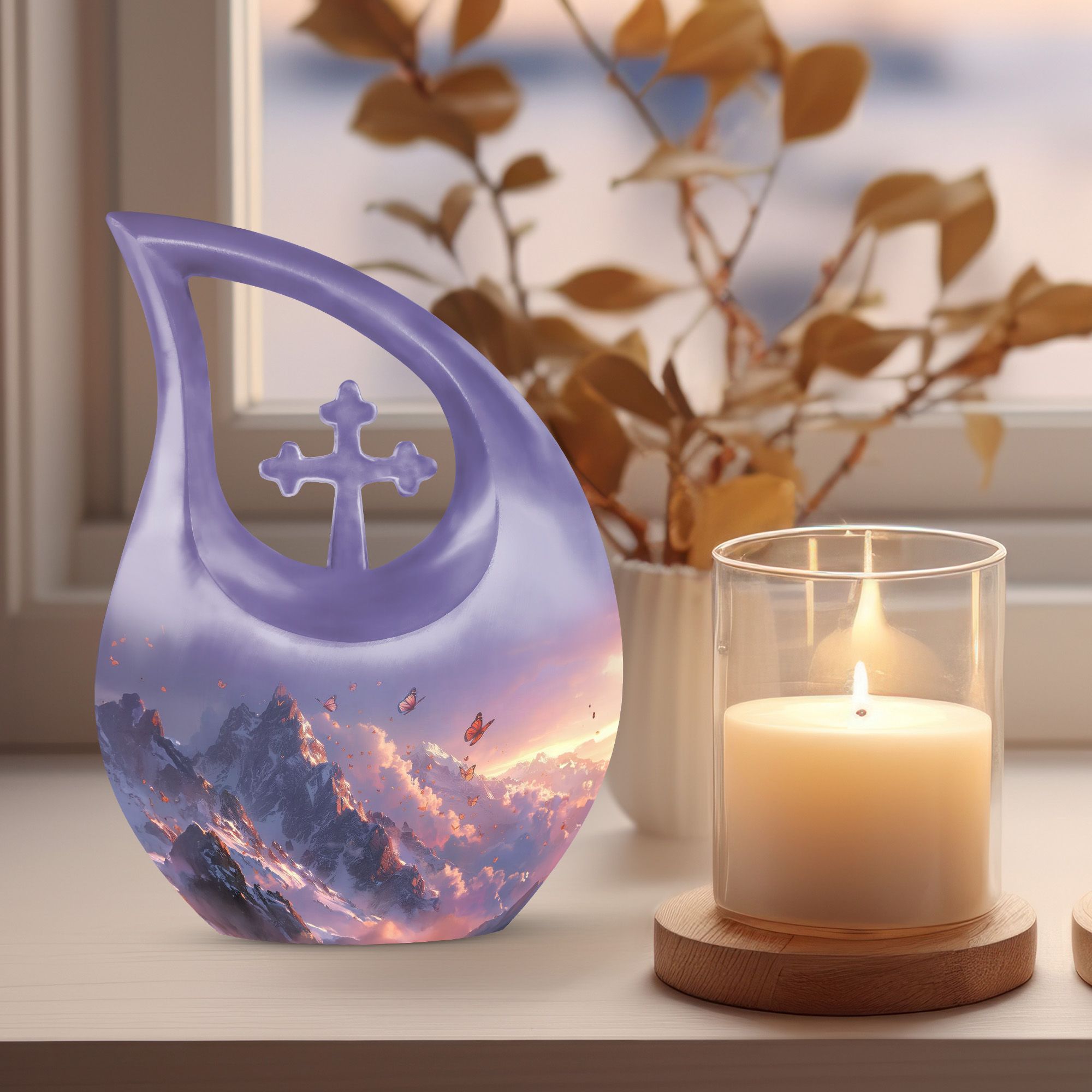 As one of the most meaningful small urns for cremation ashes or full-sized cremation urns adult, the Purple Urn with Mountain Motif stands as a serene expression of love—reminding us that every sunset leads to a new dawn of remembrance and peace.