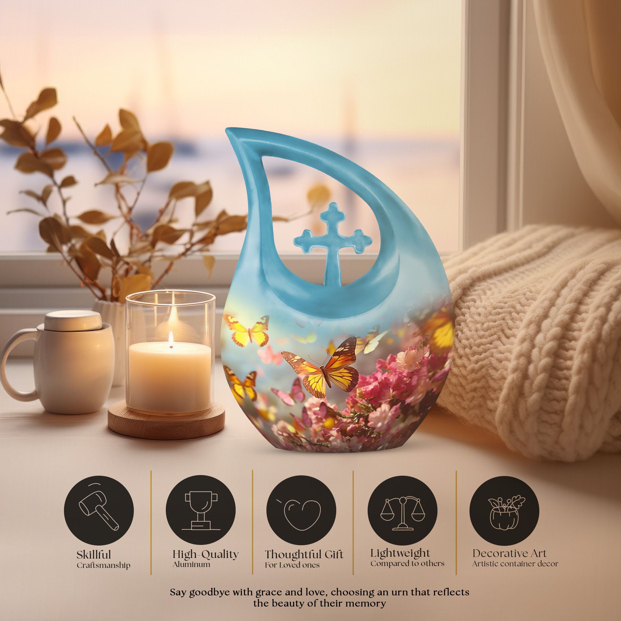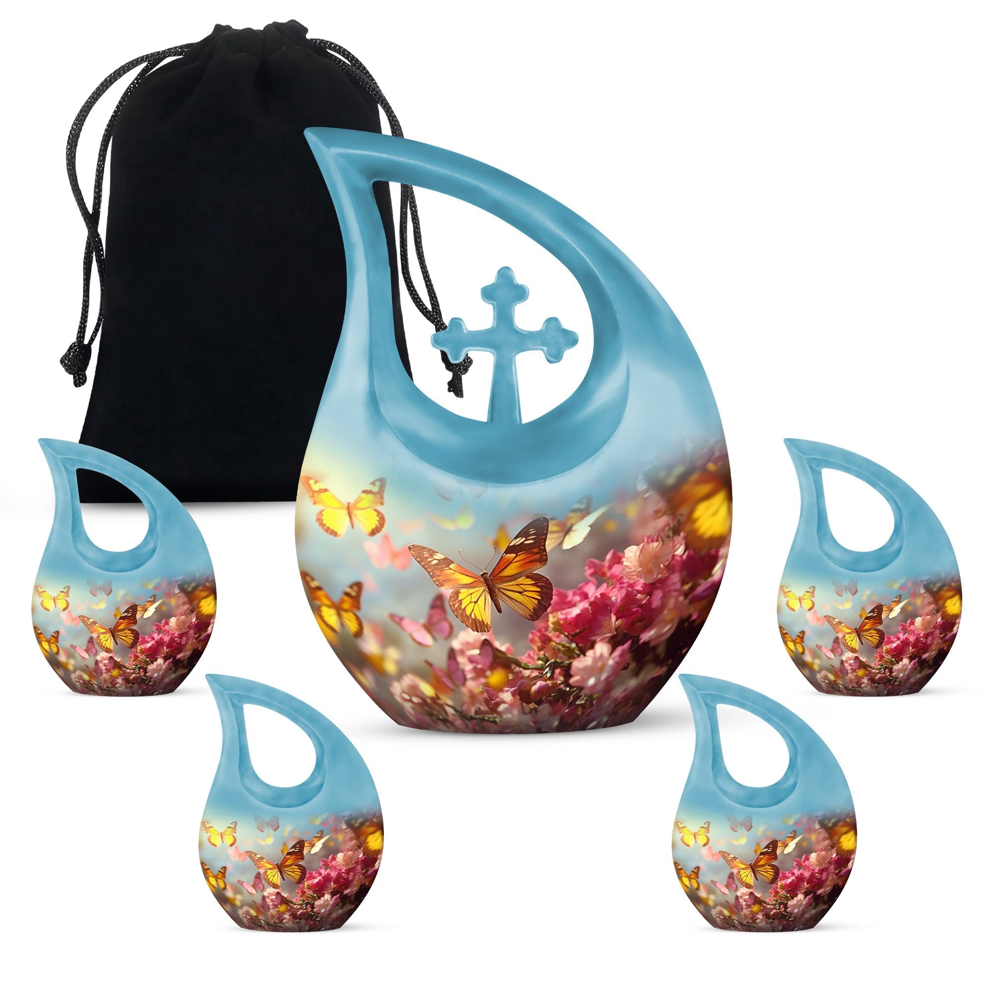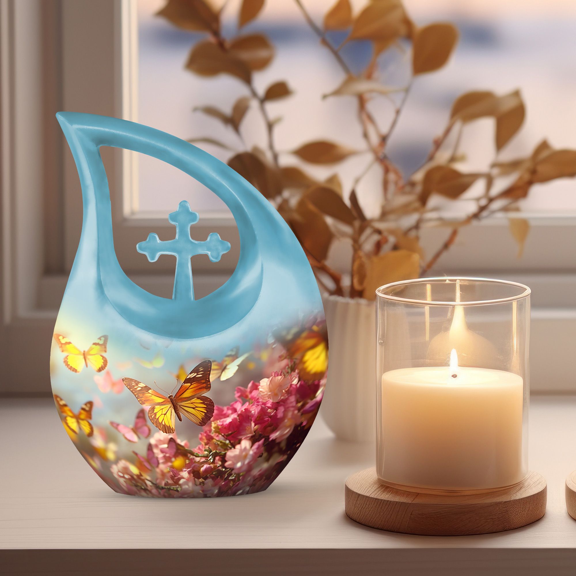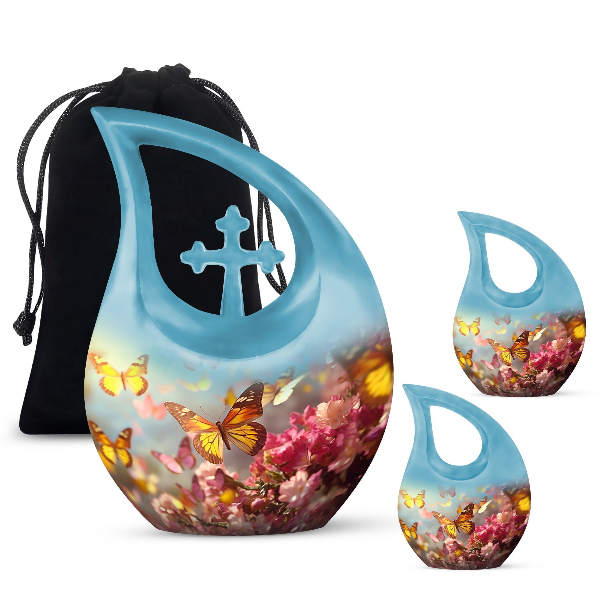Whether used as a cremation urn for human ashes, a pink flower urn, or displayed among blue urns or yellow butterfly urns, this piece provides a meaningful tribute. It can even serve as companion urns for 2 adults when paired with a matching design.