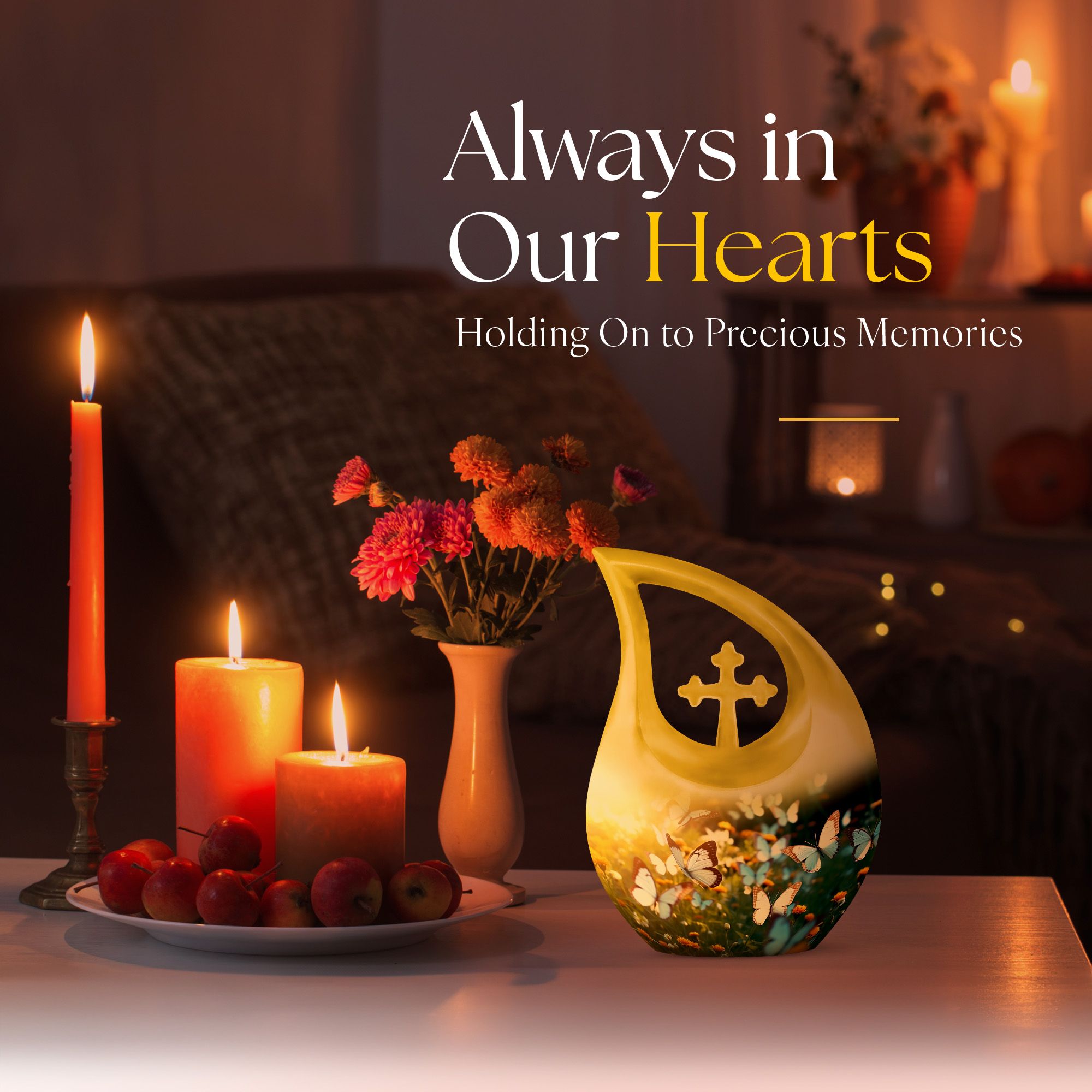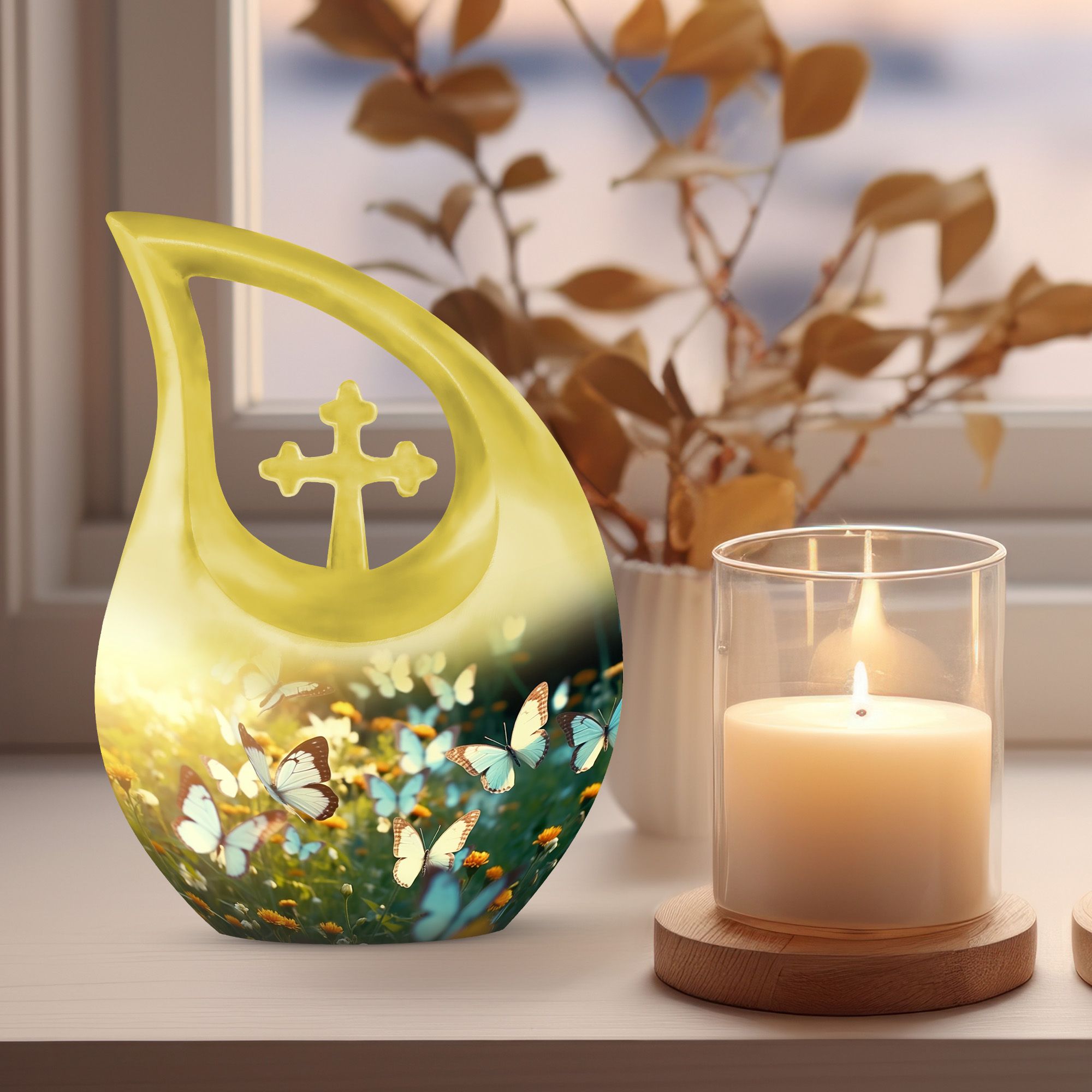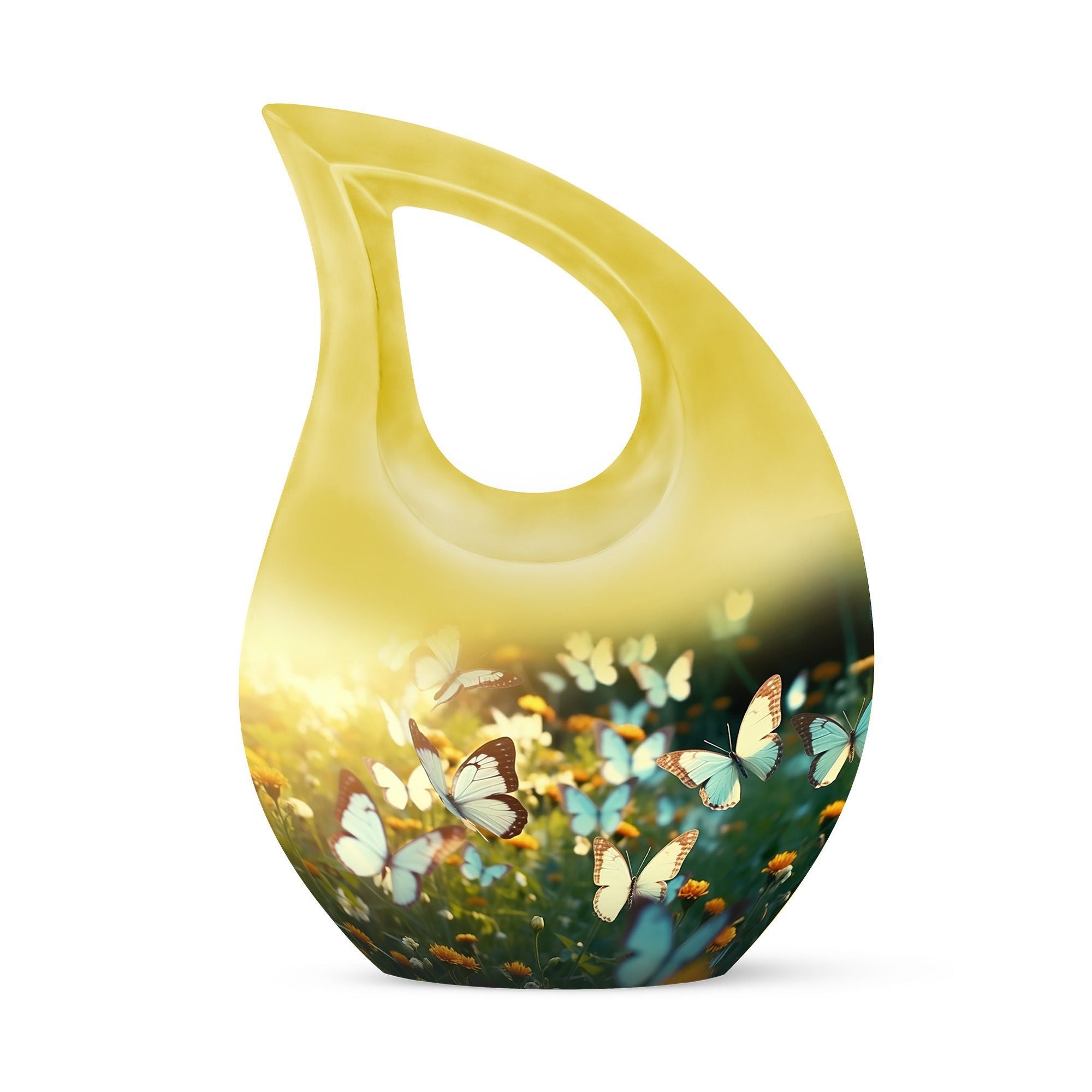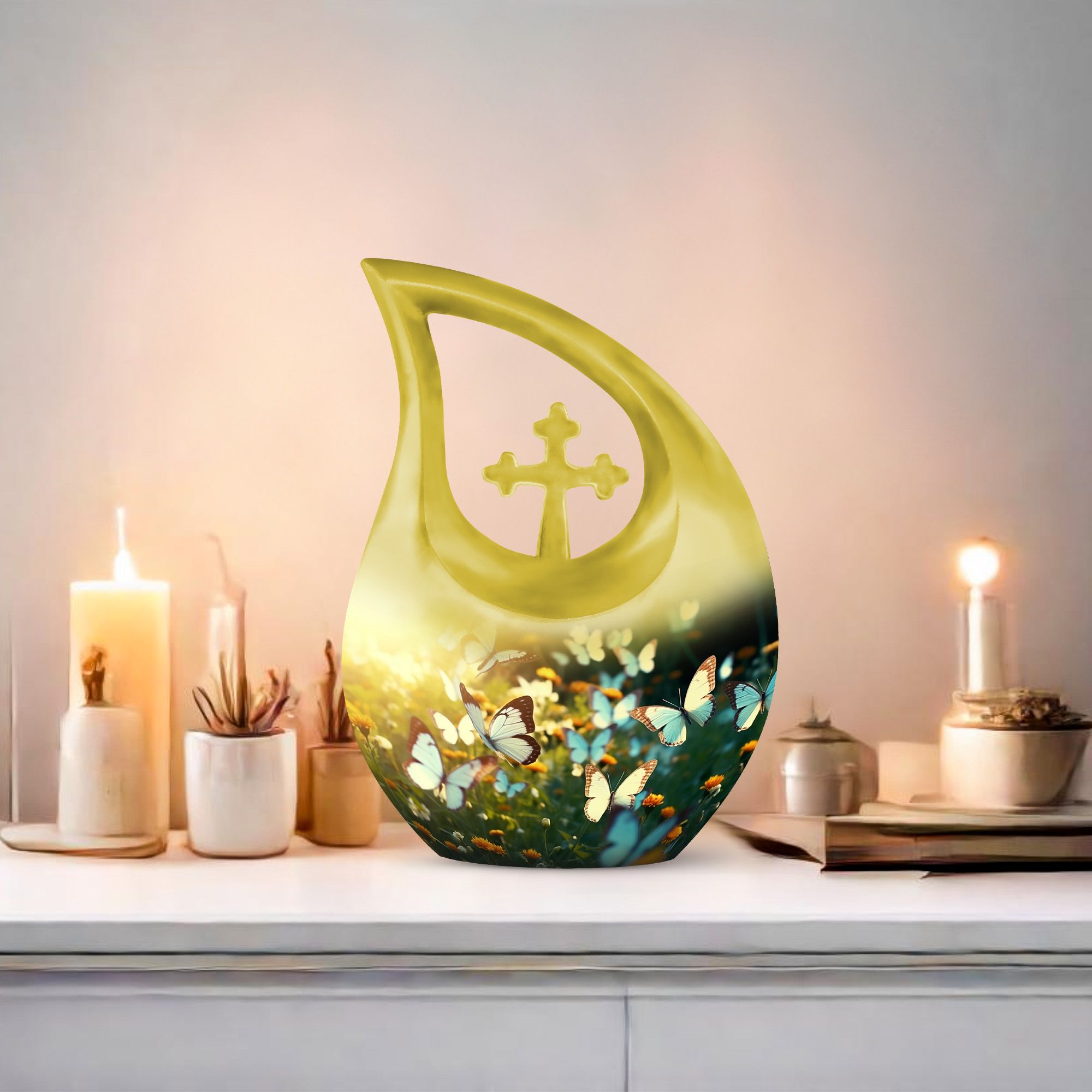 Honor a beloved family member with this Serenity Blue Butterflies memorial urn, a symbol of peace, transformation, and eternal remembrance. Its serene blue butterfly design brings comfort and grace to any memorial.