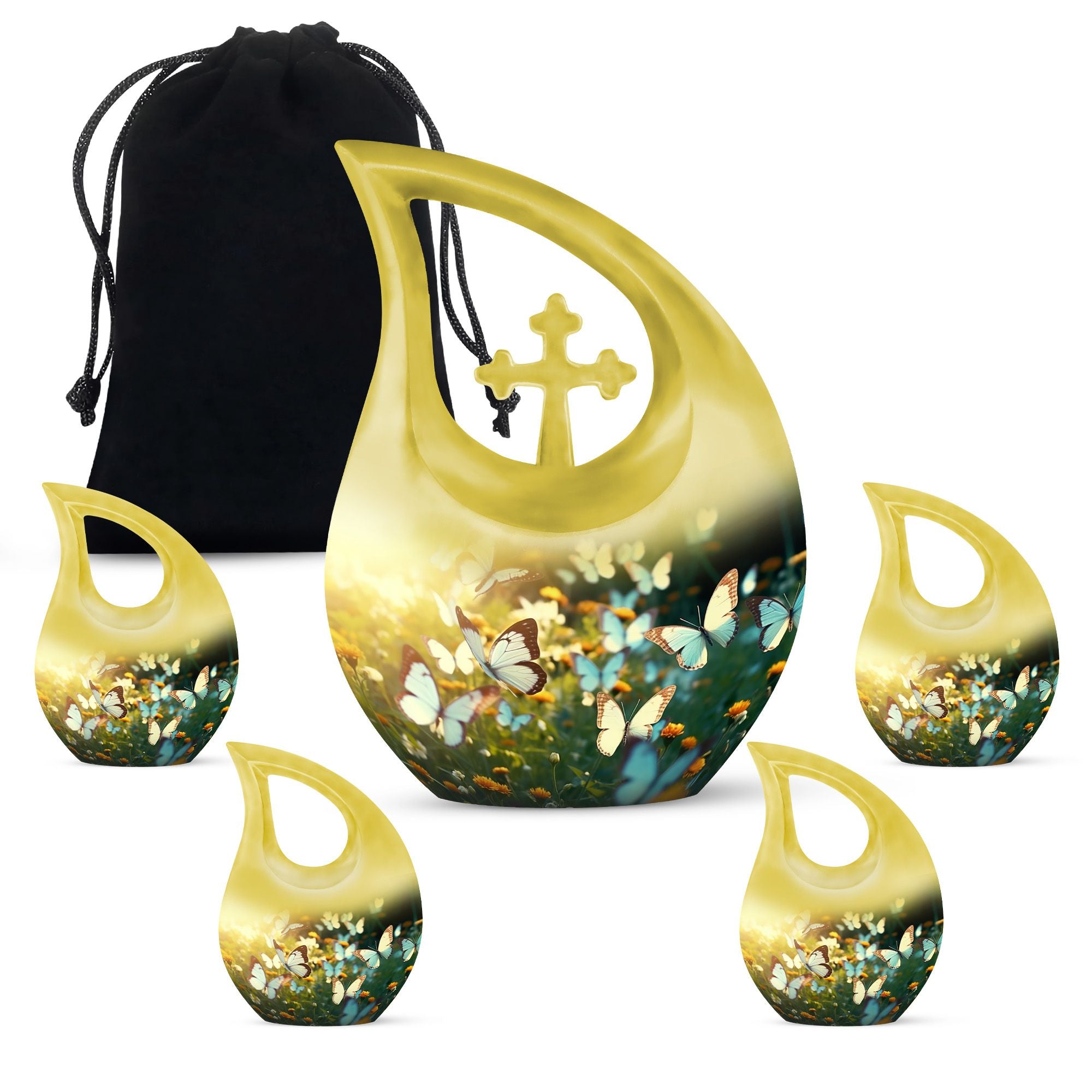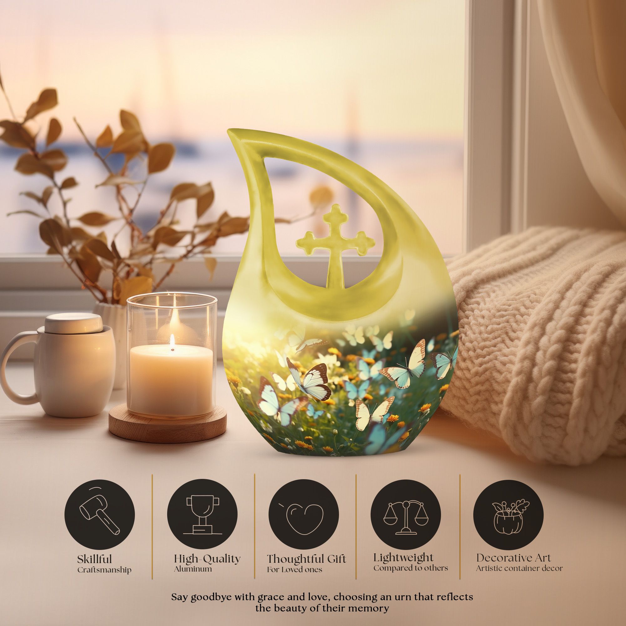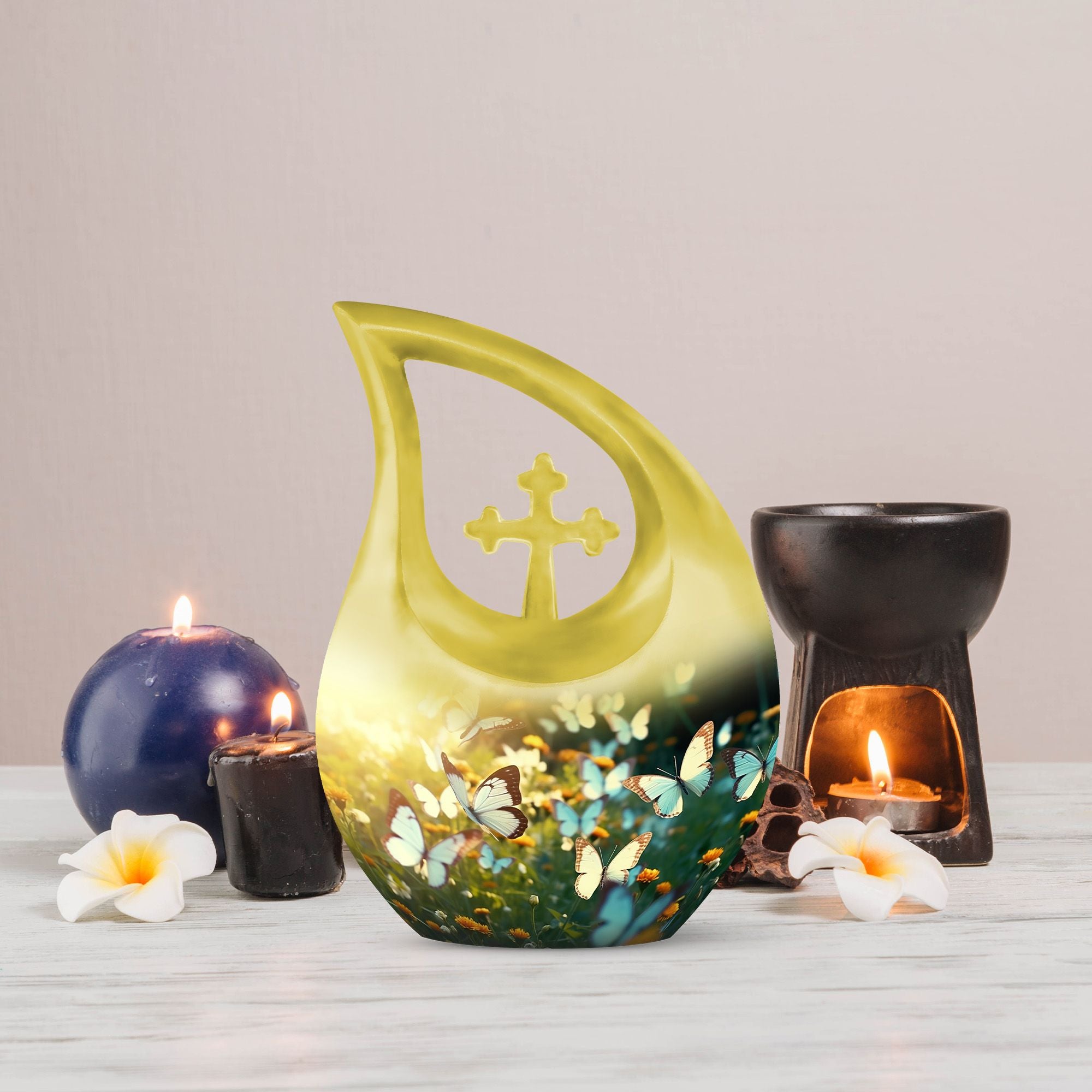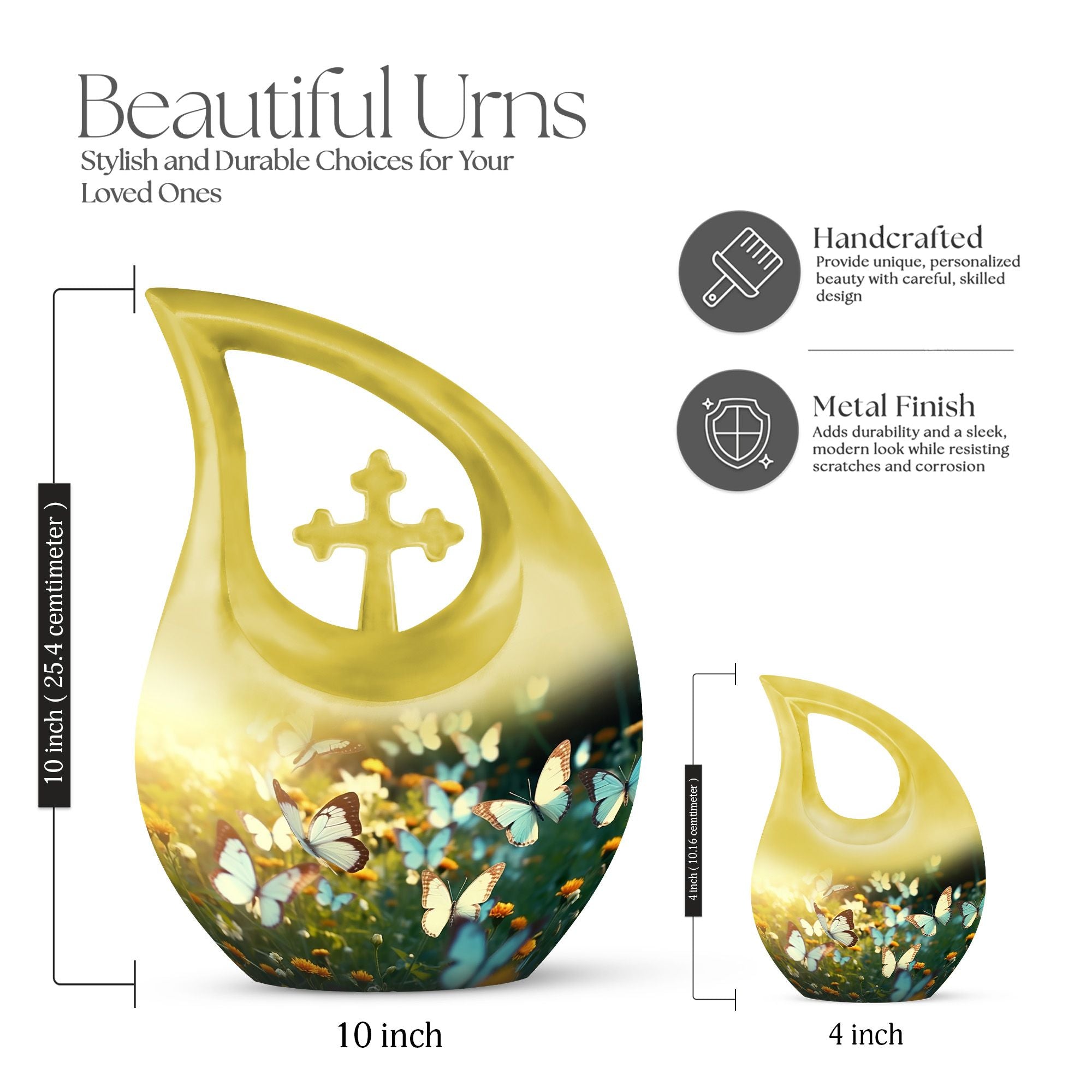 Honor a beloved family member with this Serenity Blue Butterflies memorial urn, a symbol of peace, transformation, and eternal remembrance. Its serene blue butterfly design brings comfort and grace to any memorial.