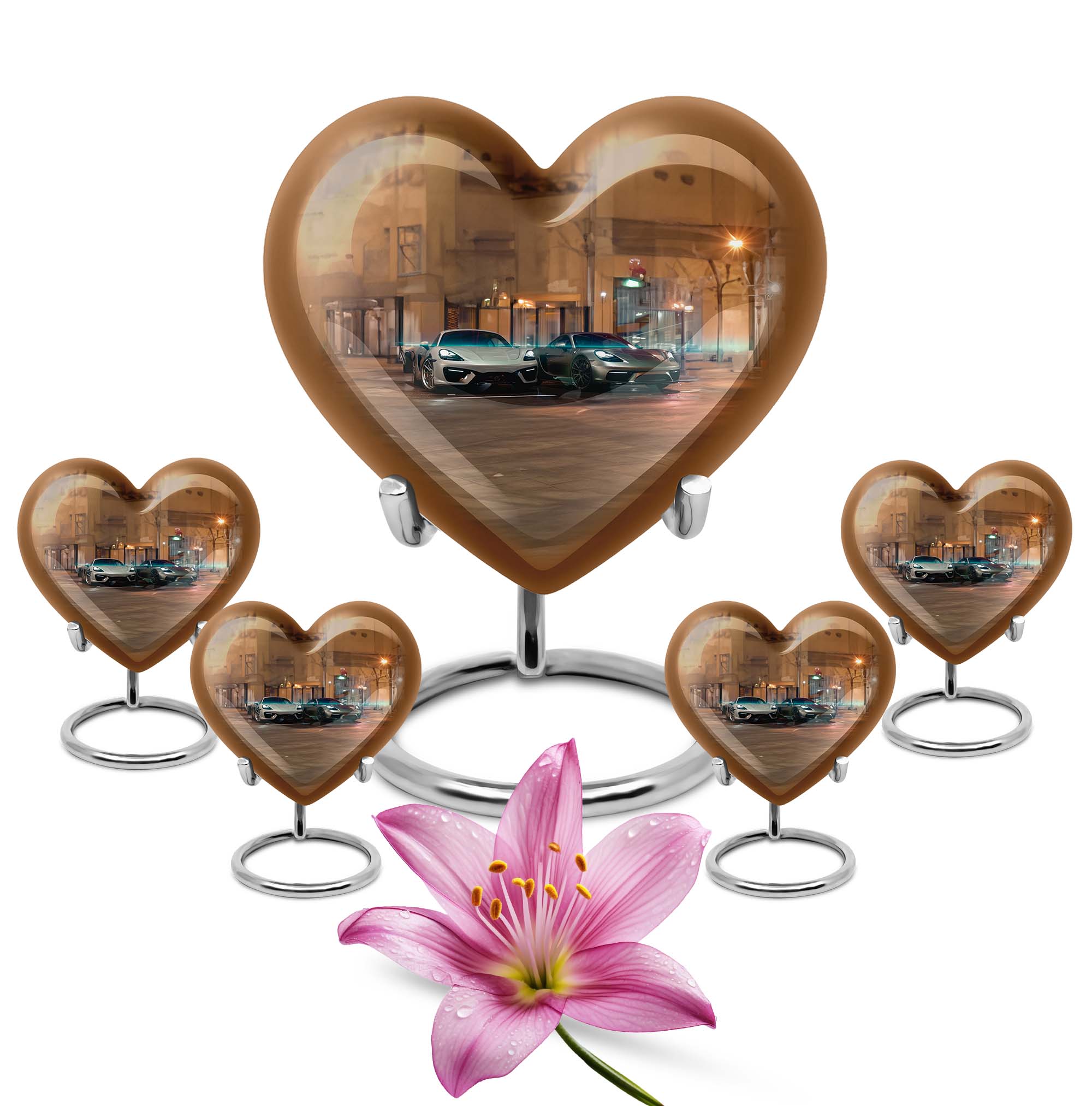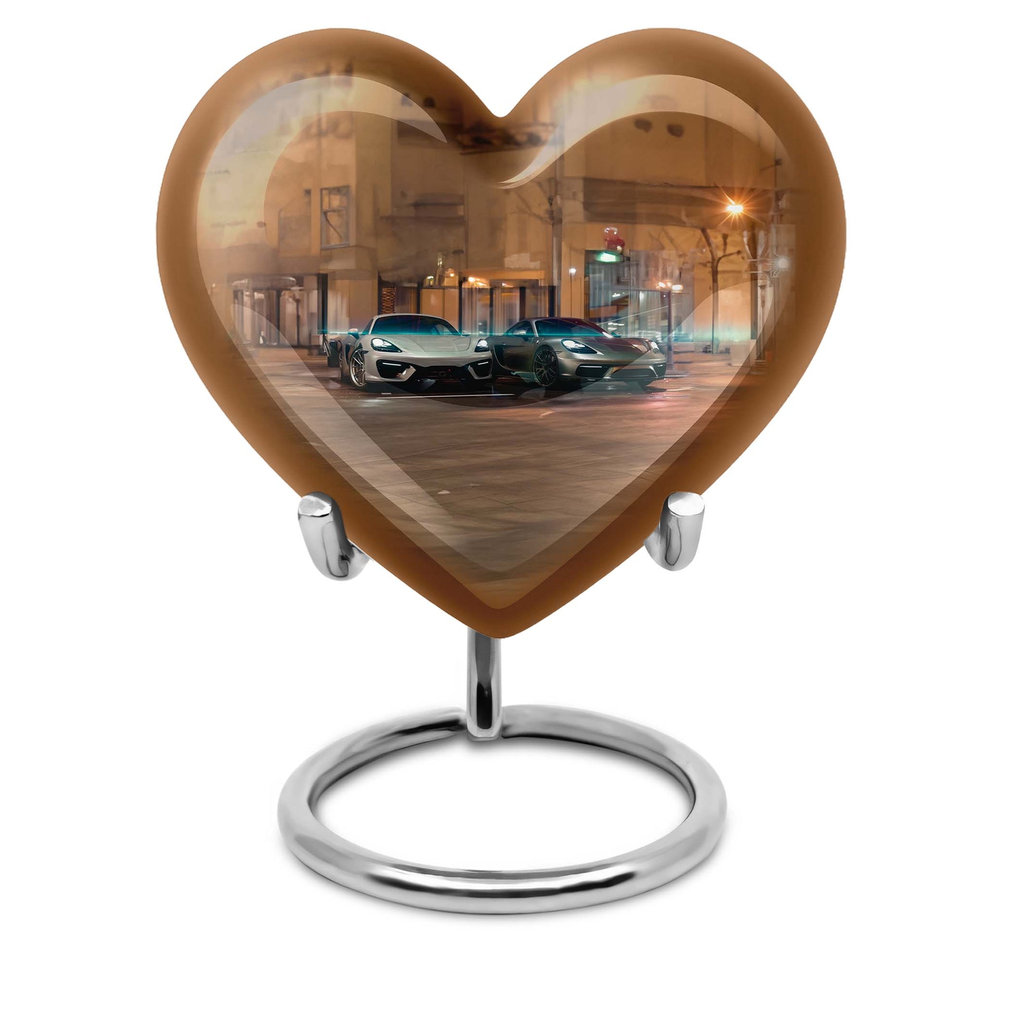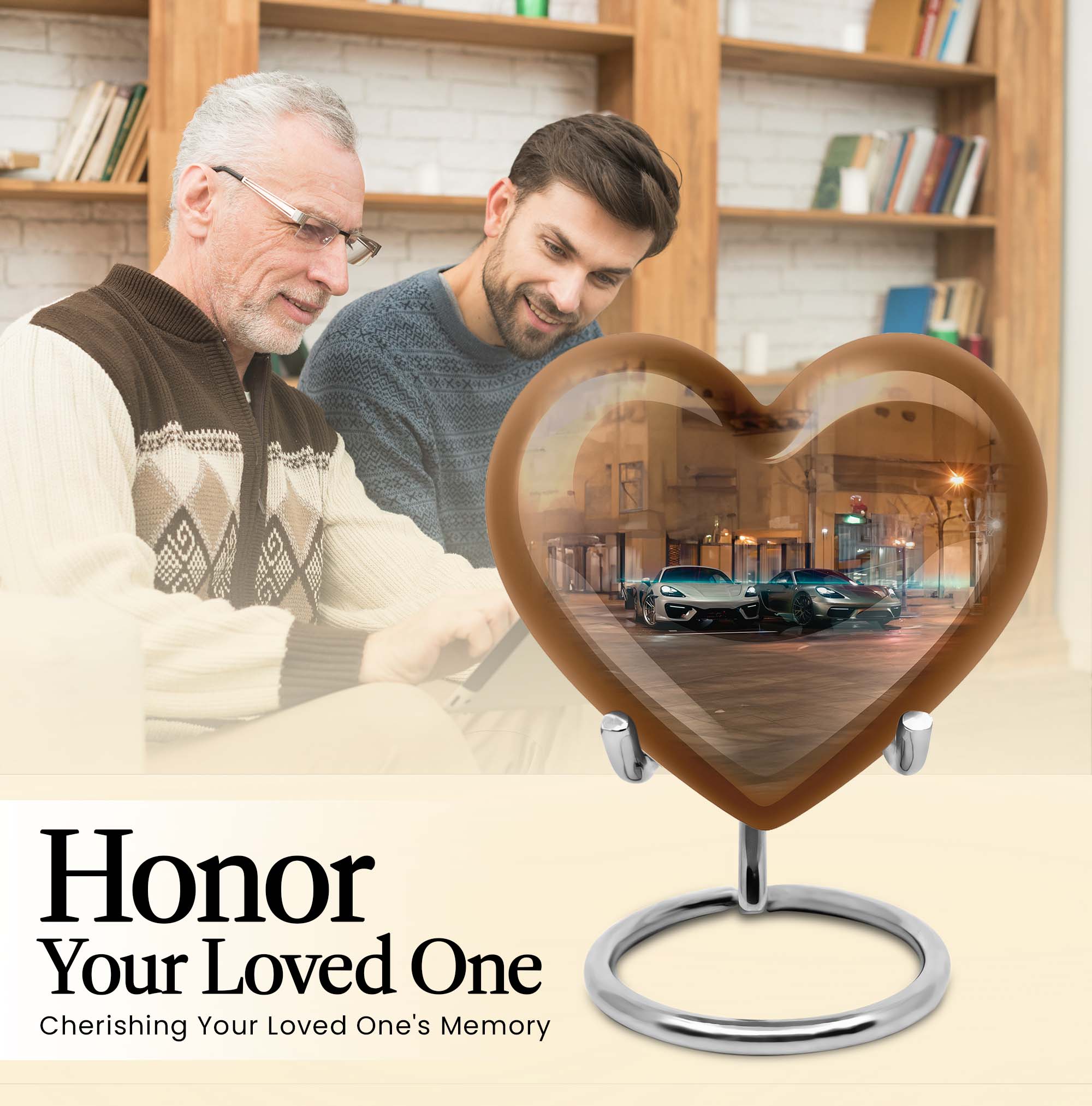Elevate your memorial ceremony with our uniquely made funeral urn, an extraordinary product that combines affection and remembrance. This large urn is crafted with utmost precision from solid aluminium, showcasing durability and longevity. Weighing just 3.3 pounds, its 10-inch height offers a capacity of accommodating 200 cubic inches. The exquisite Heart Urn design resonates with love and respect for the departed soul. Further enhancing its significance is the enchanting Car theme reflecting the transcendent nature of life. The package comes inclusive of a velvet pouch, allowing secure containment of the precious ashes. What's more, our urn provides a personalized touch as we engrave names to make it extra special for you. This well-crafted, memorial adult urn serves as a perfect vessel to preserve the remainings of your loved ones. When you search for terms such as 'memorial urns', 'car urn' or 'urn ash adult', our custom cremation urns stand out as a fitting choice for their quality and craftsmanship. Remember your mom with respect through our bespoke 'funeral urn for mom', a symbol of lasting memory.