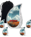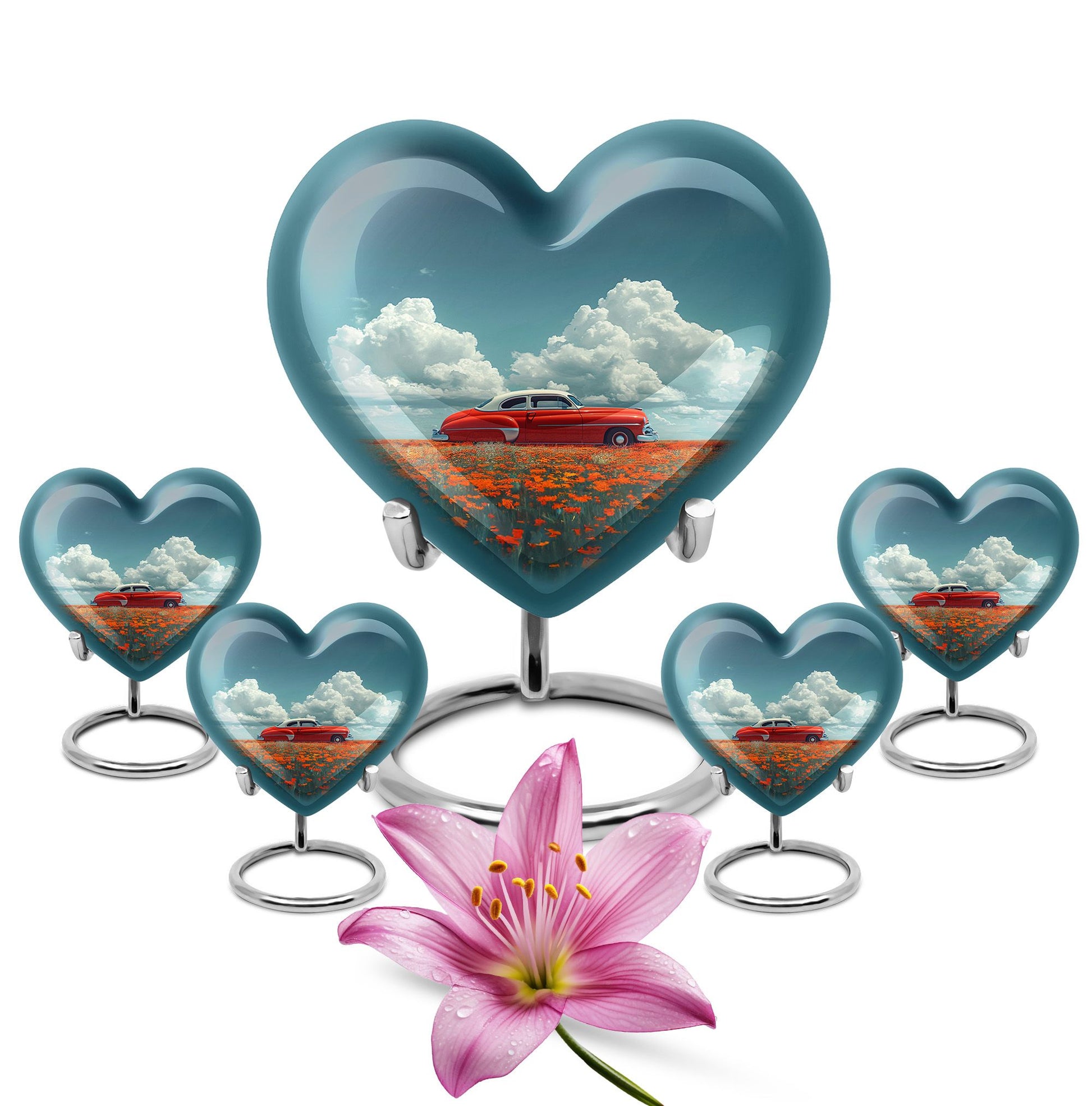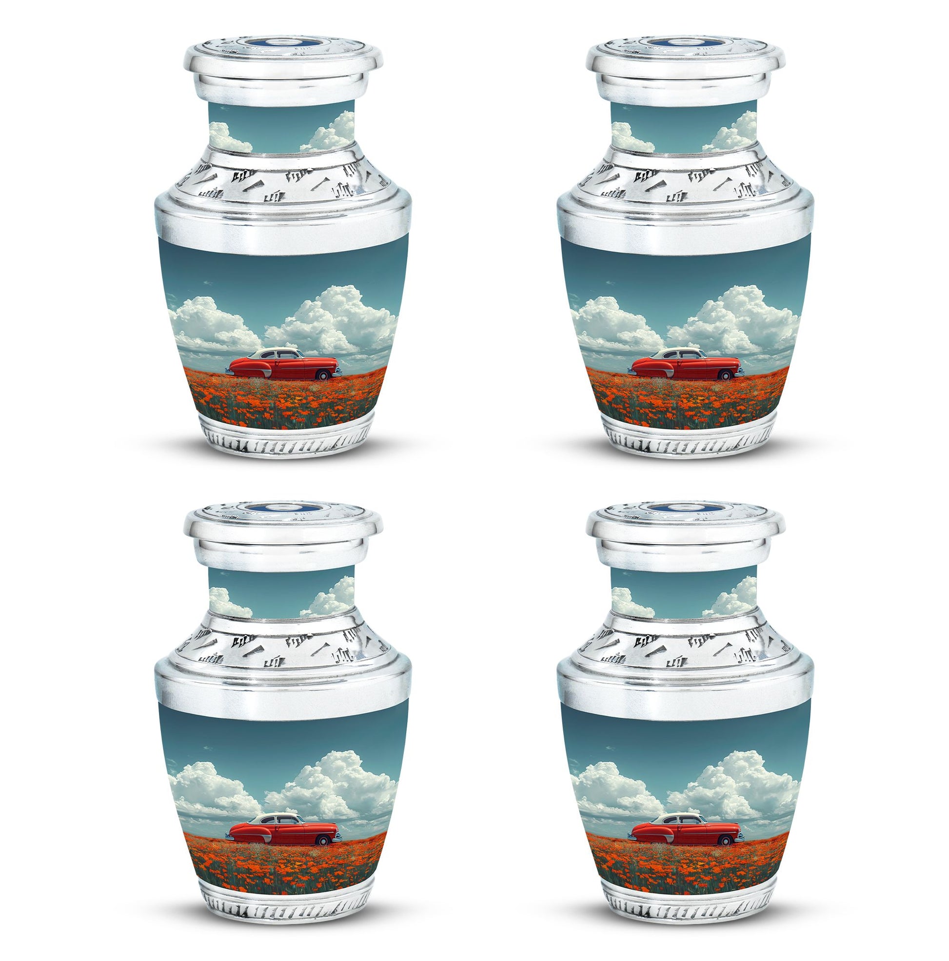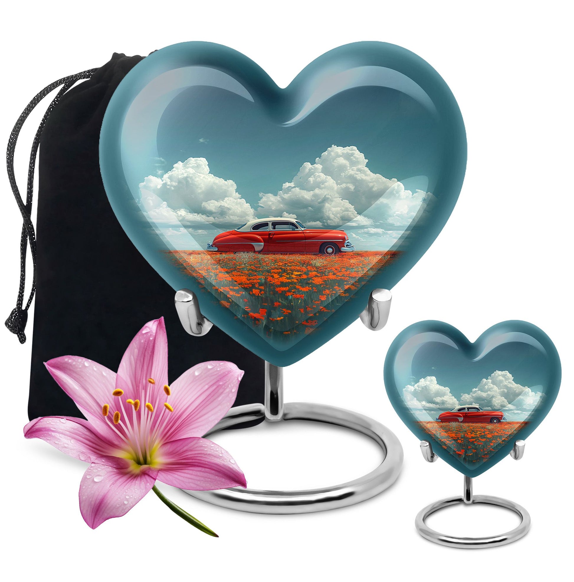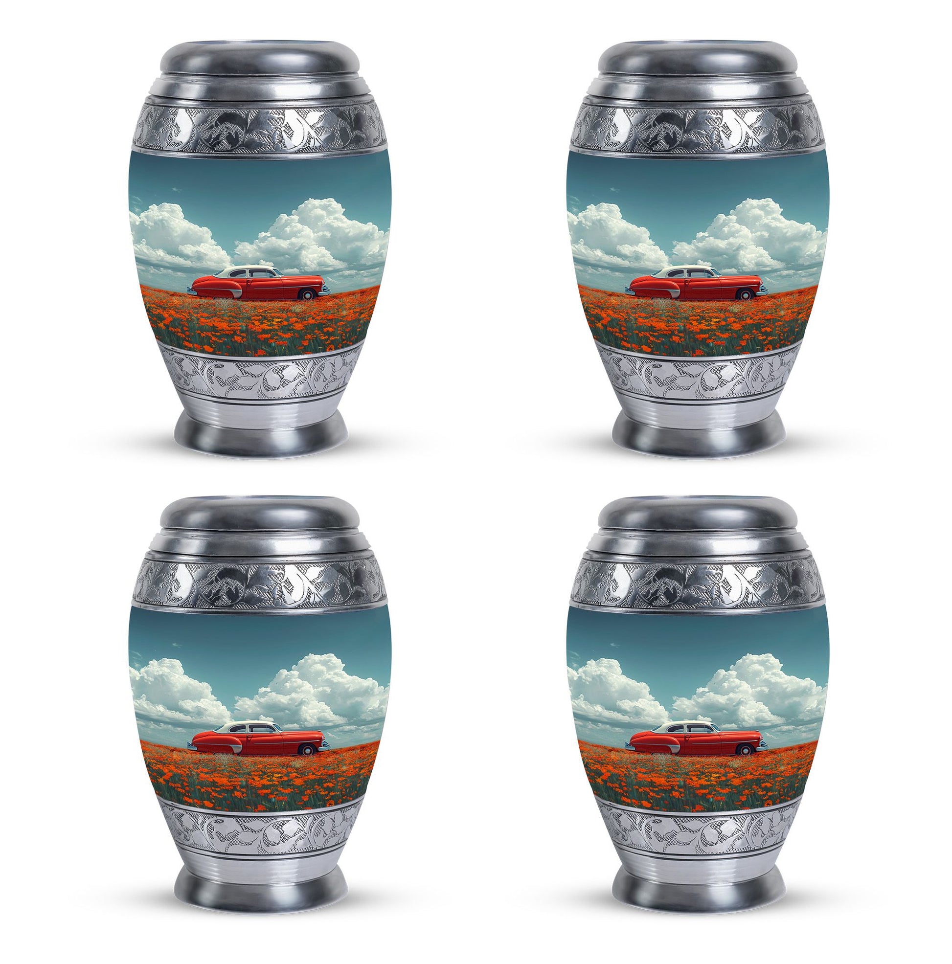 Expertly handcrafted, this large decorative urn for human ashes features a radiant red vintage car design, symbolizing vitality and timeless elegance. Made from durable aluminum, it ensures long-lasting protection and beauty. The secure screw-top lid offers peace of mind, keeping your loved one’s ashes safe. This large adult urn is perfect for home display or burial, blending artistry with heartfelt significance. Each large urn human ashes is finished with care, making it a meaningful keepsake for generations to come.