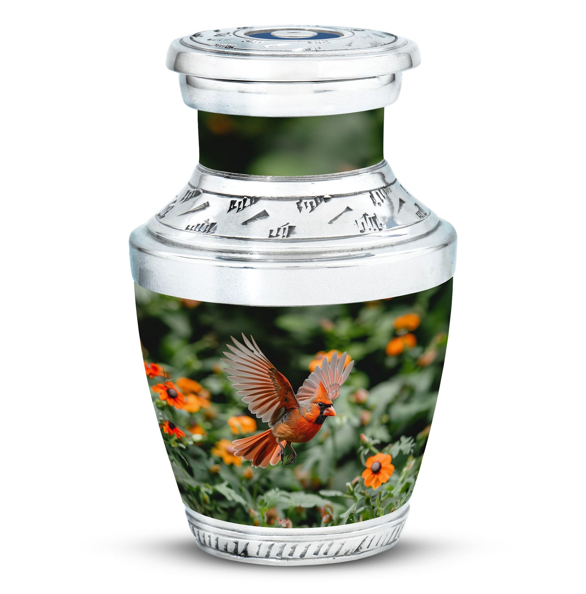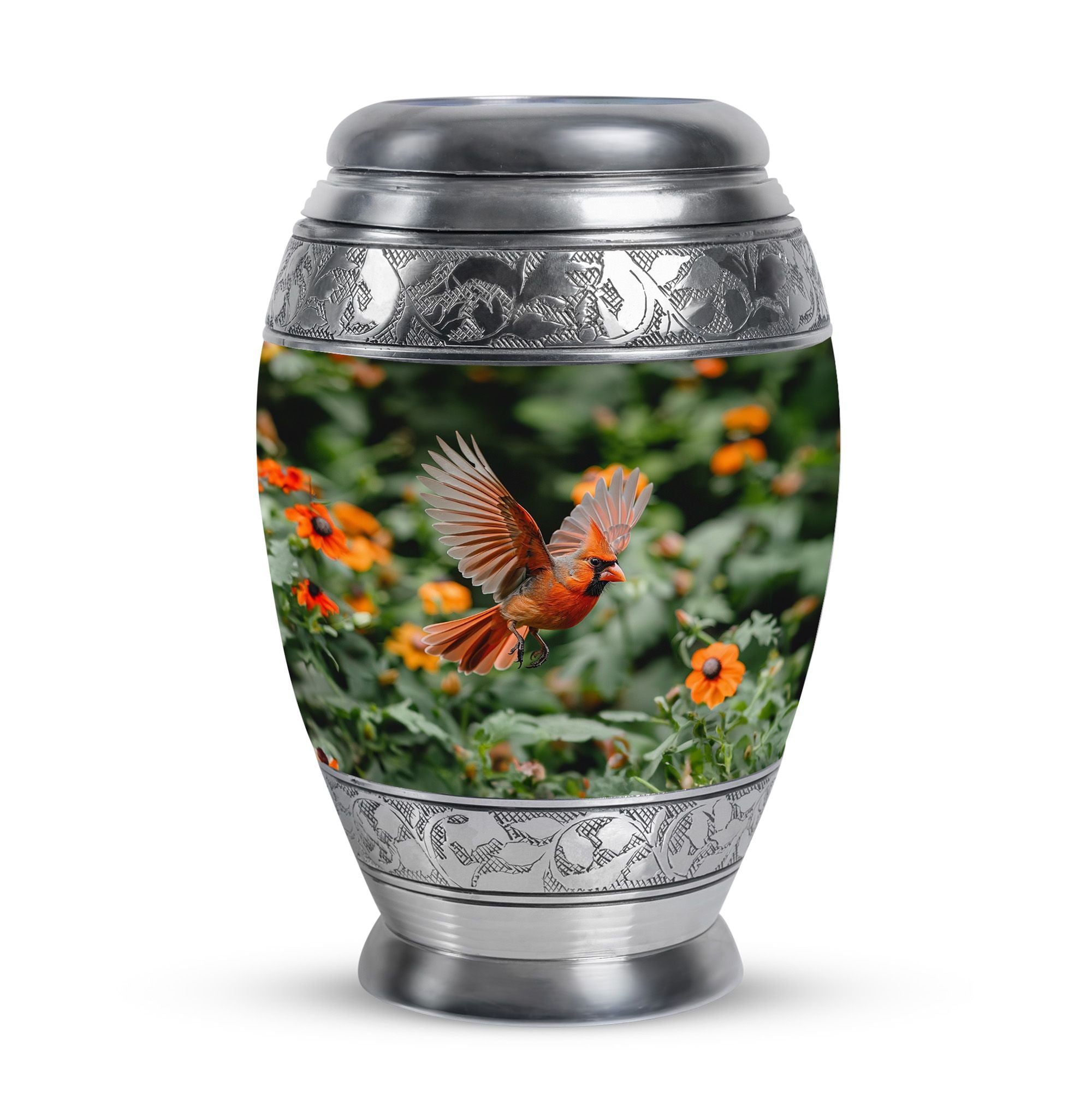 Crafted with care, this urn showcases a symbolic flying cardinal bird design, representing hope, love, and eternal connection. Made from durable aluminium, it combines artistry with strength, making it an ideal urn for ashes adult male dad or an urn for adult female. Whether used as small urns for adult male or as urns for human ashes adult female small size, the craftsmanship ensures dignity, security, and elegance.
