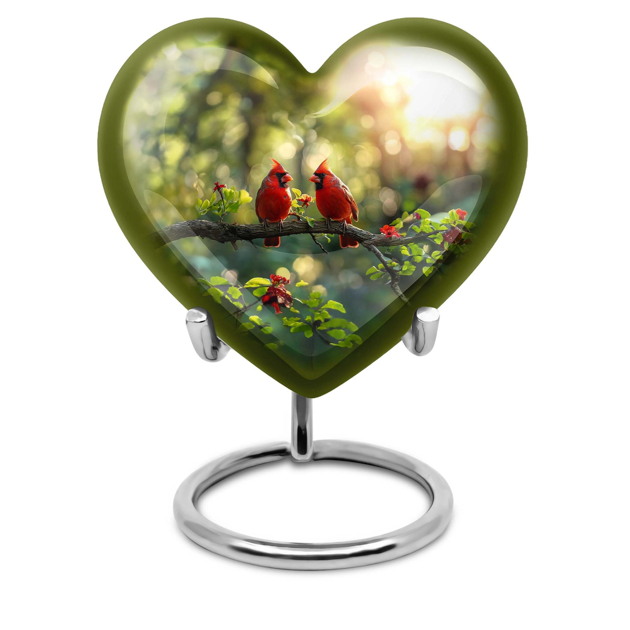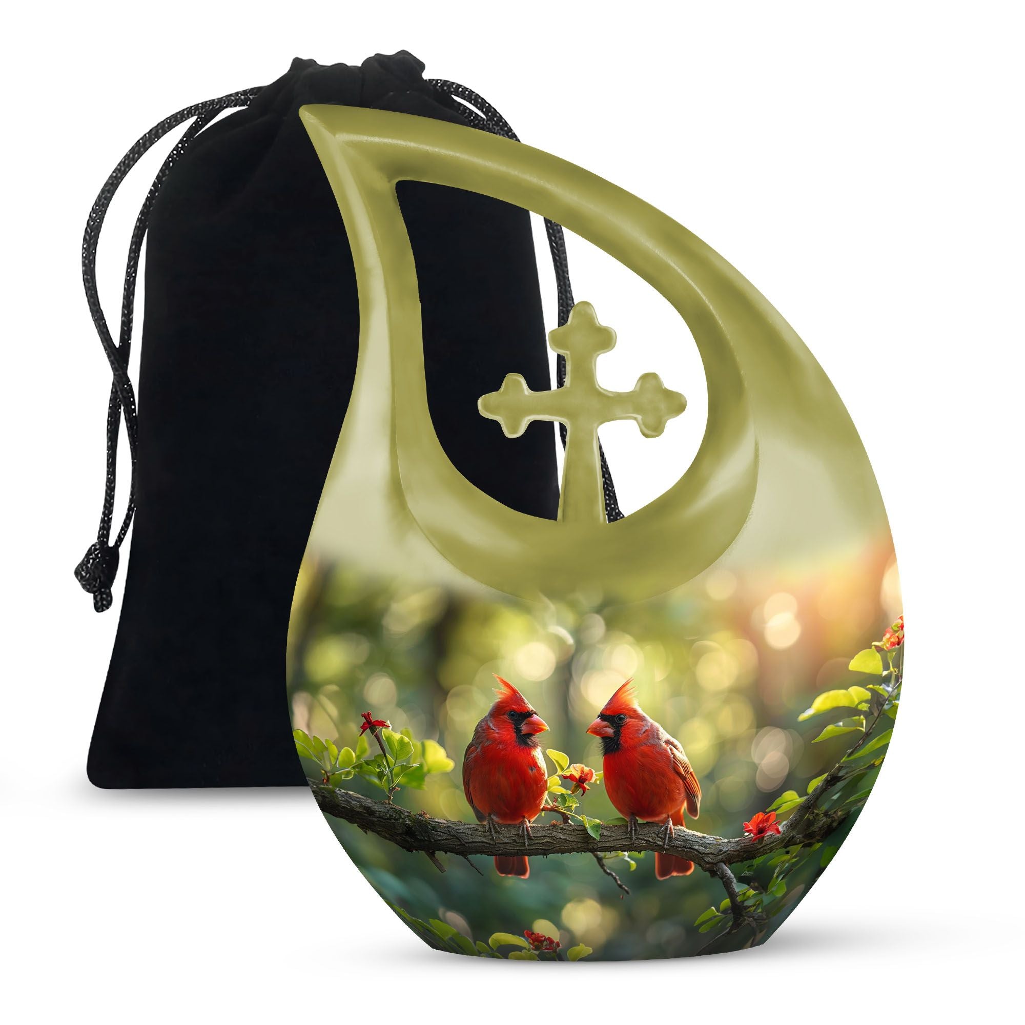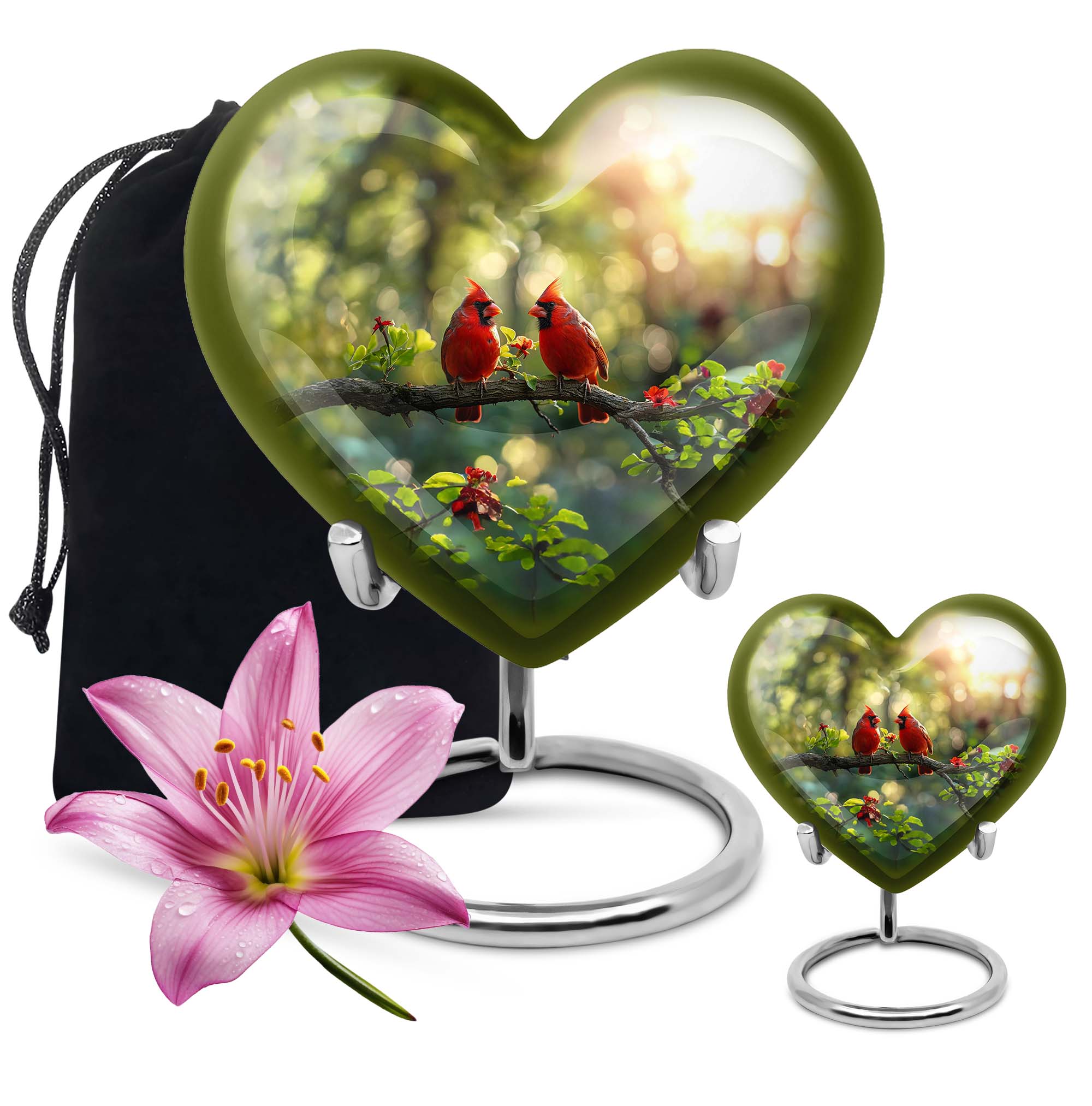 Honoring the memories of a loved one requires something as timeless as their spirit. This Green Cardinal Bird Couple design embodies peace, love, and eternal connection, making it a heartfelt choice for a funeral urn ashes memorial. Its symbolic design ensures your cherished memories are preserved with dignity and grace.