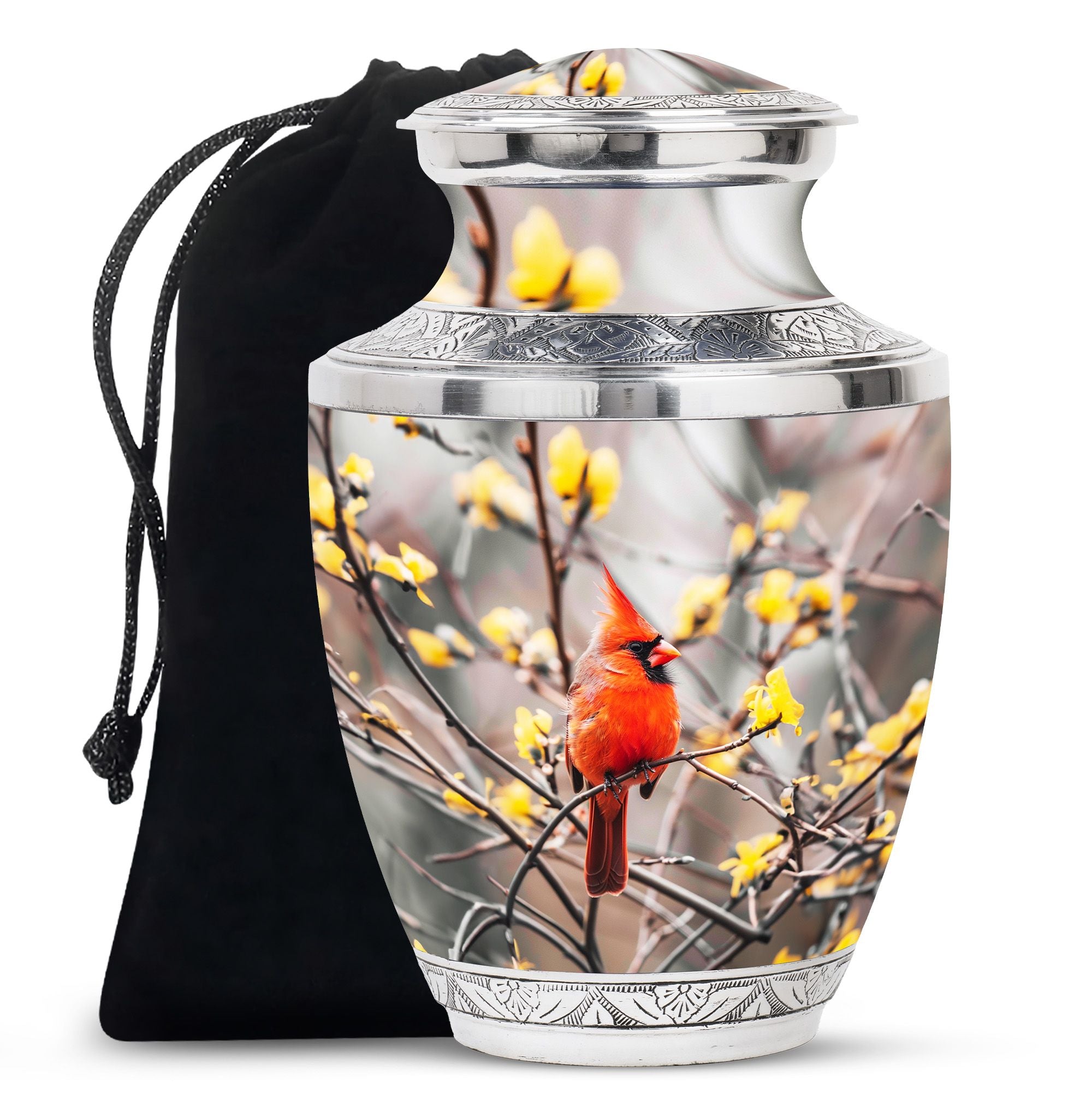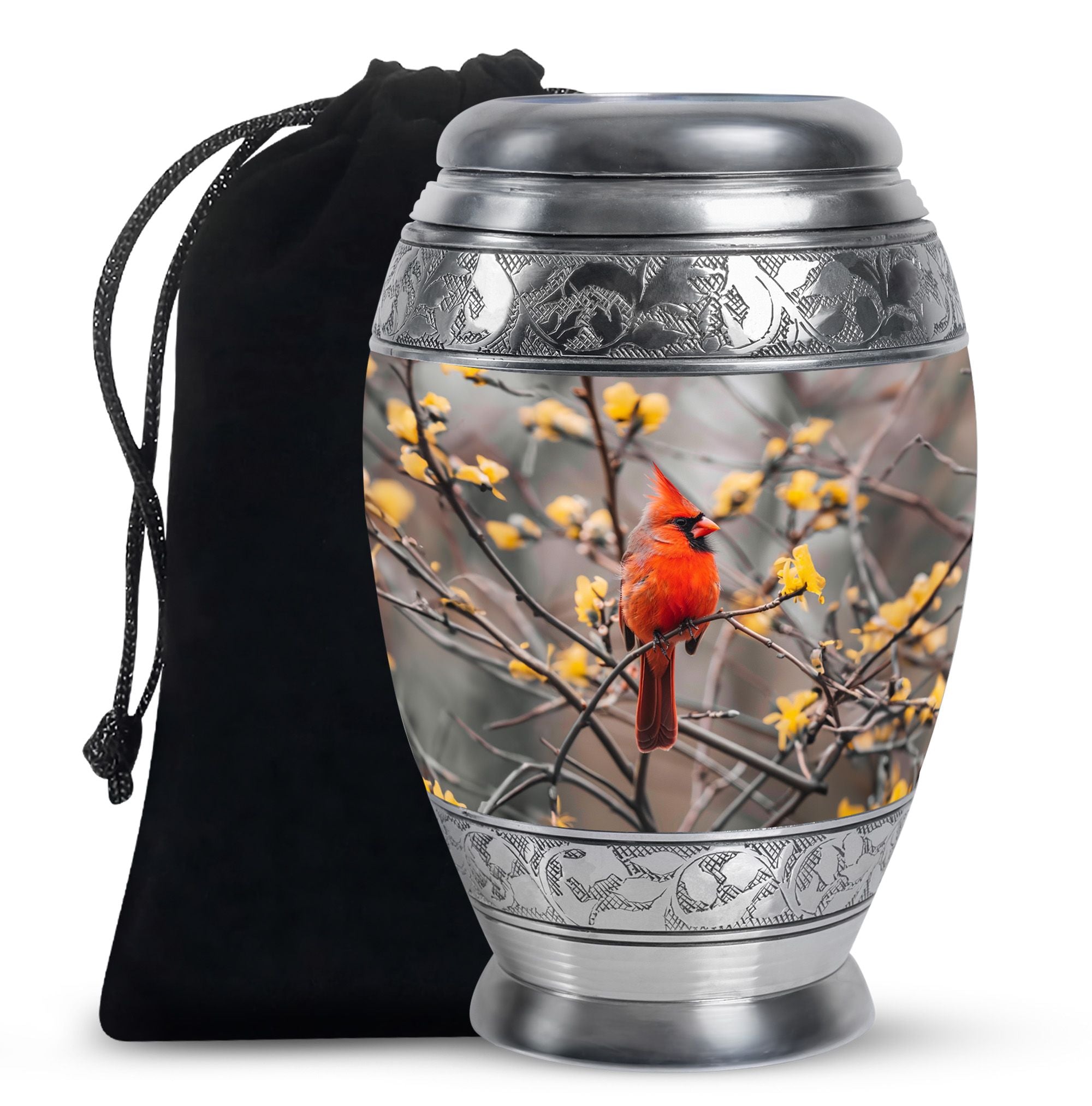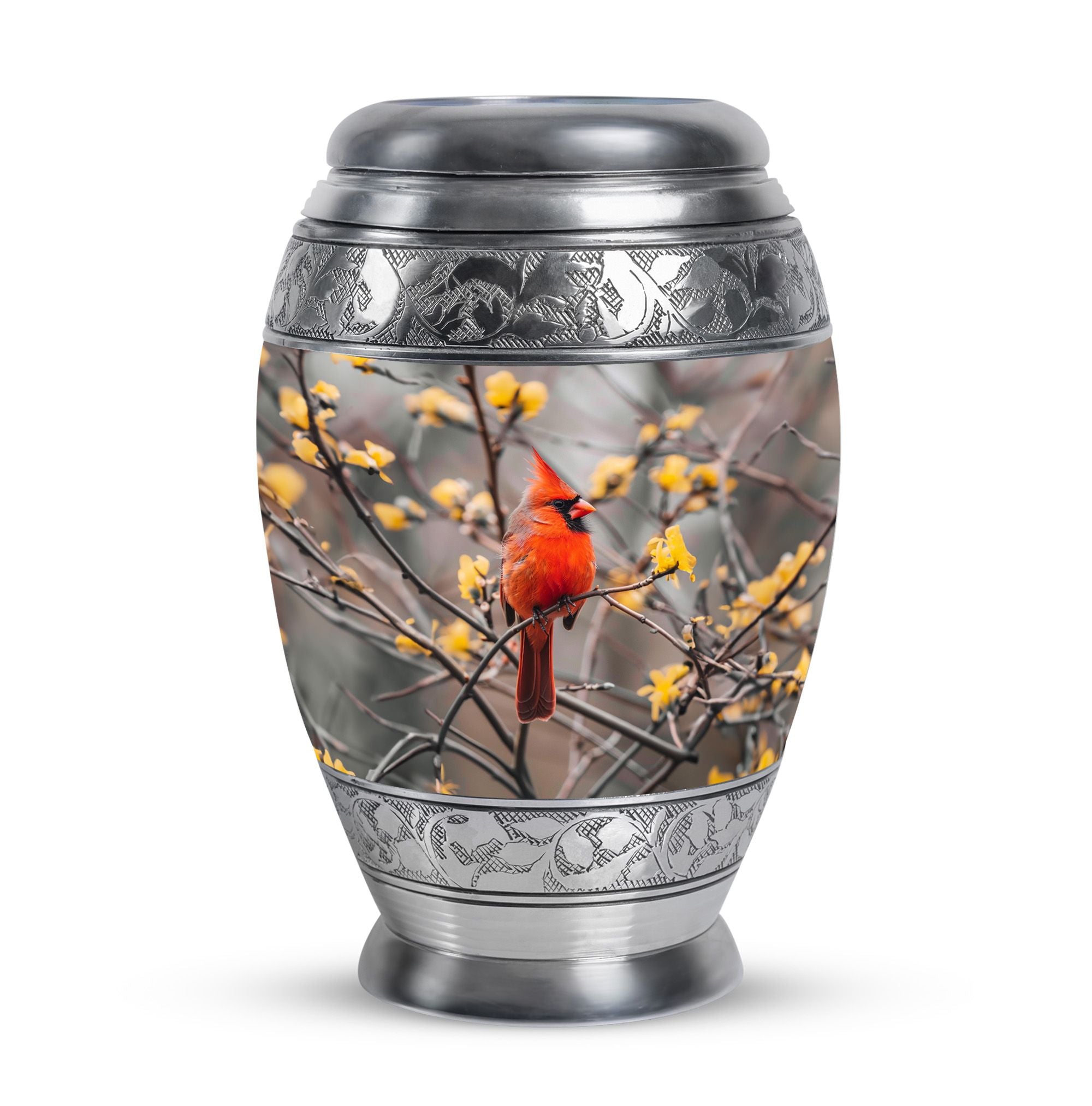Expertly crafted, this urn is made from durable aluminum to ensure lasting quality. The vibrant cardinal artwork adds a touch of warmth and symbolism, making it one of the most cherished adult urns women. With a secure screw-top lid and generous capacity, it is suitable for holding the remains of your loved one. Designed with care, this urn ashes women also complements any setting, whether displayed at home or placed in a memorial space. For families looking for versatility, it can also serve as urn ashes men or men urns for human ashes, offering the same strength and elegance.