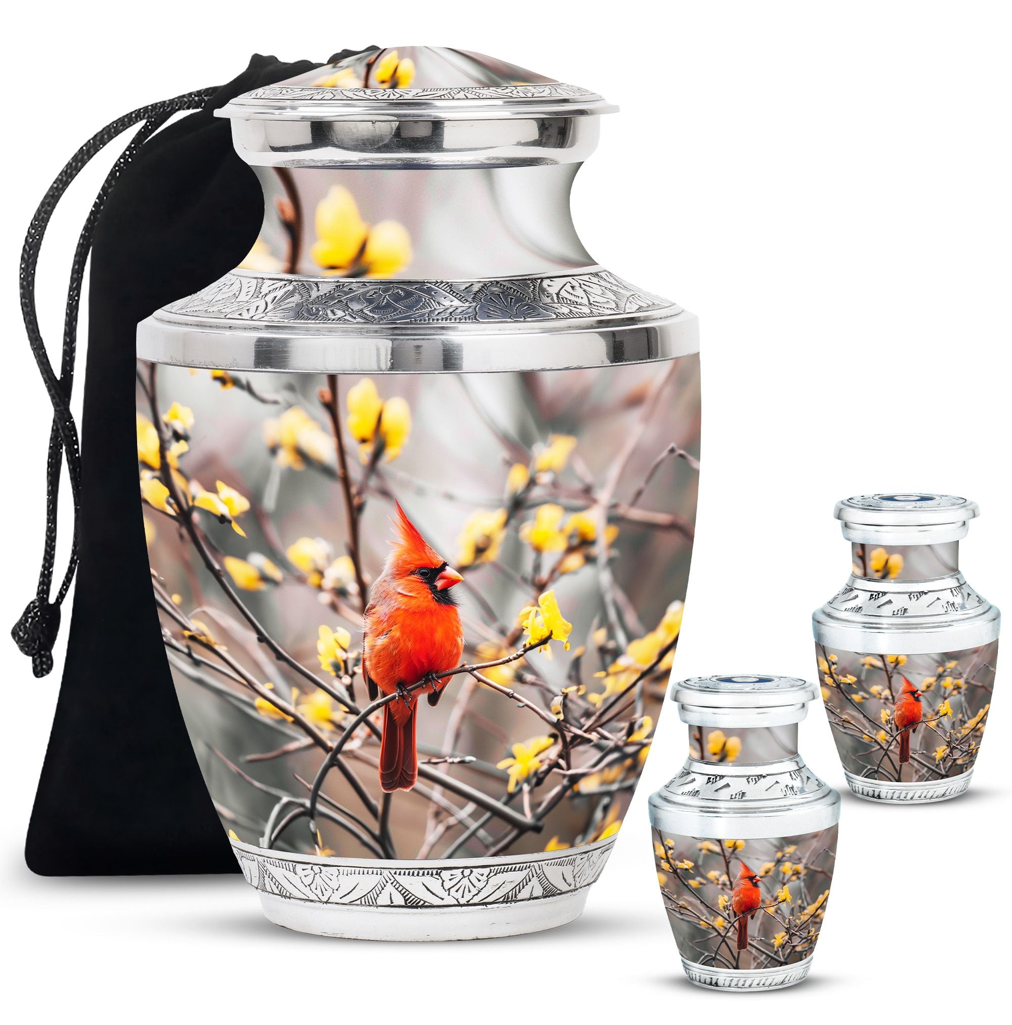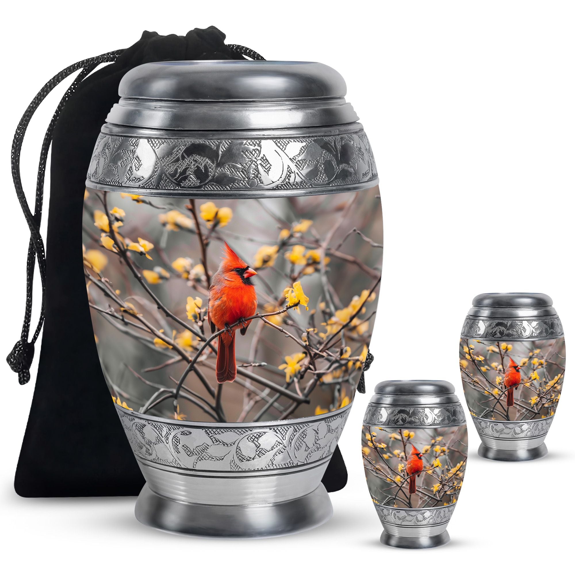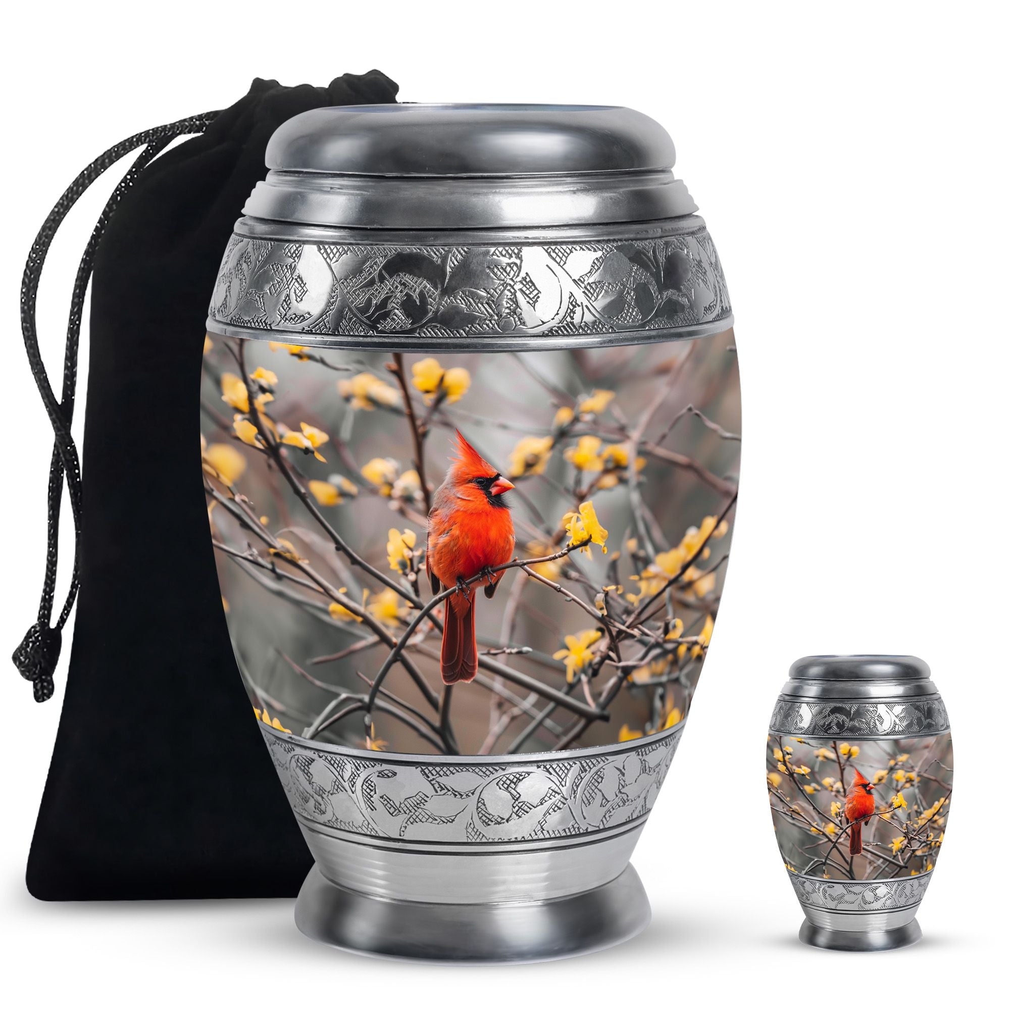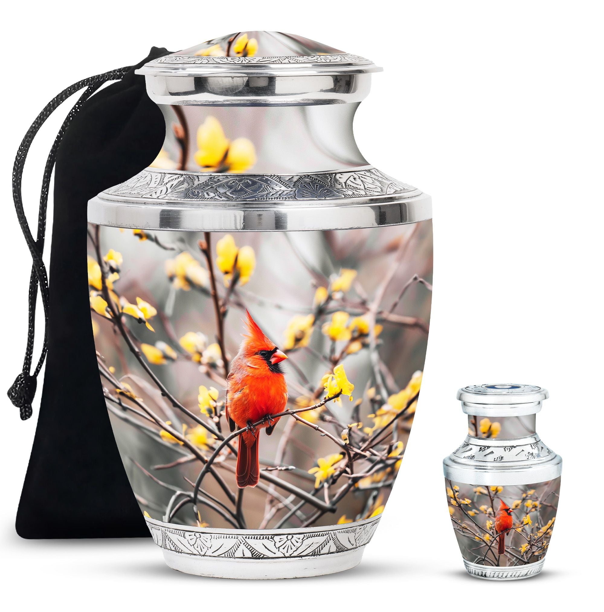 Expertly crafted, this urn is made from durable aluminum to ensure lasting quality. The vibrant cardinal artwork adds a touch of warmth and symbolism, making it one of the most cherished adult urns women. With a secure screw-top lid and generous capacity, it is suitable for holding the remains of your loved one. Designed with care, this urn ashes women also complements any setting, whether displayed at home or placed in a memorial space. For families looking for versatility, it can also serve as urn ashes men or men urns for human ashes, offering the same strength and elegance.