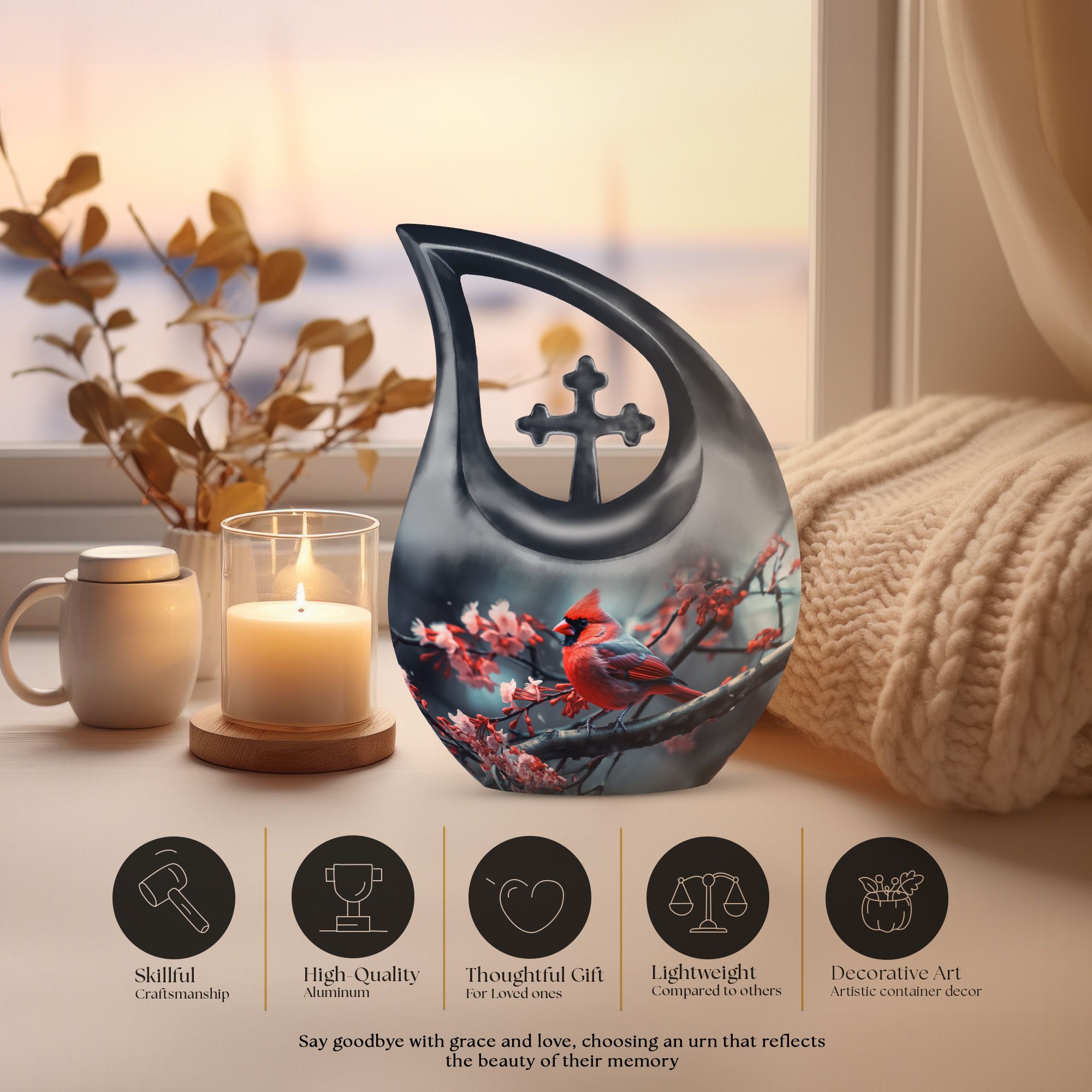 The Cardinal Bird Memorial Urn for Women offers a peaceful and comforting way to honor a cherished life. Designed with thoughtful symbolism and a gentle cardinal motif, it provides a meaningful tribute for families seeking cremation urns for women or a dignified container for ashes after cremation.