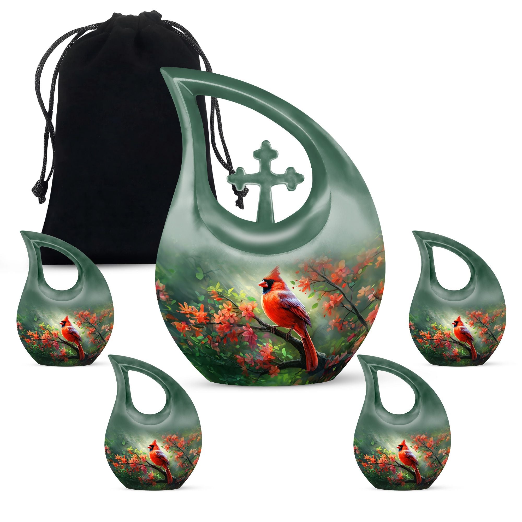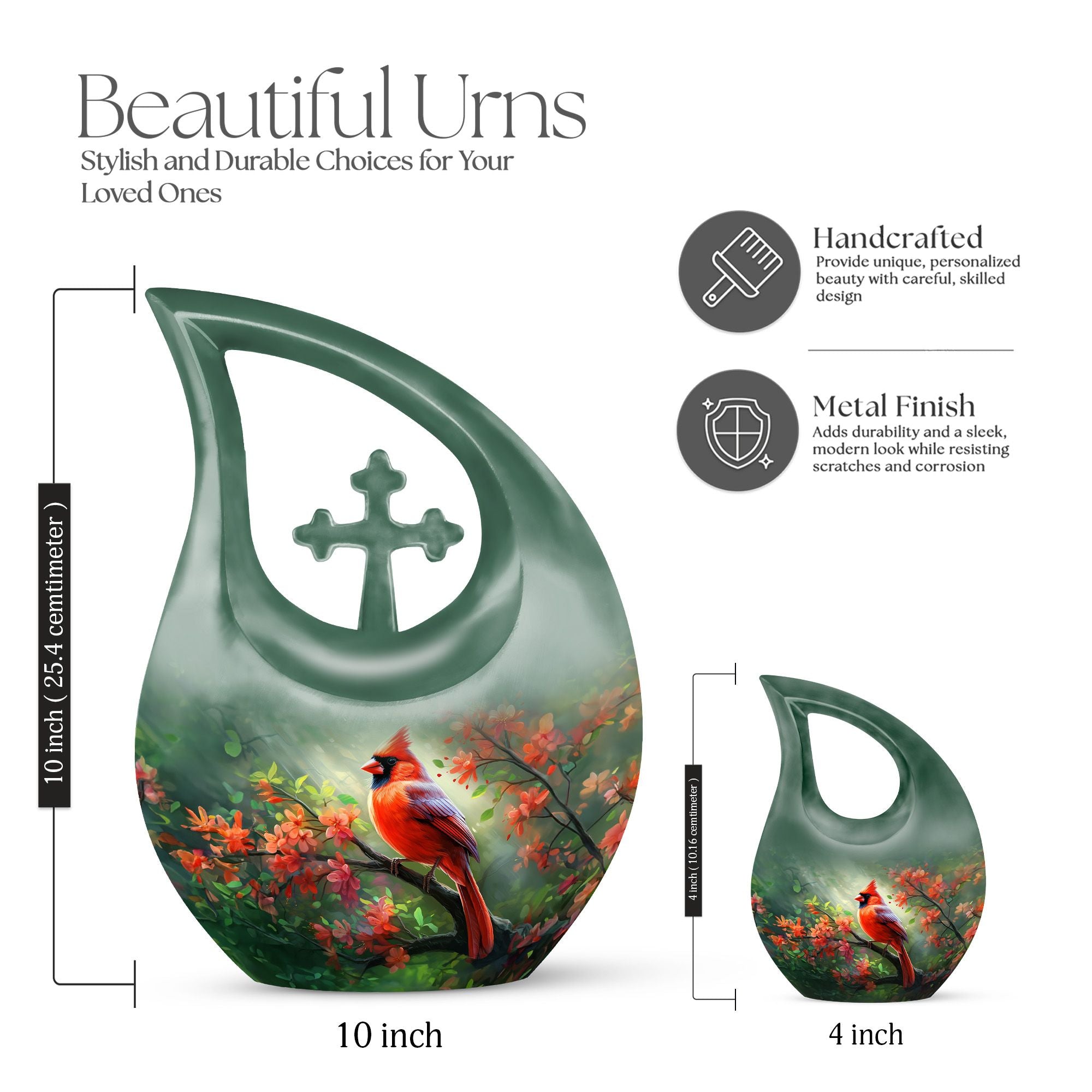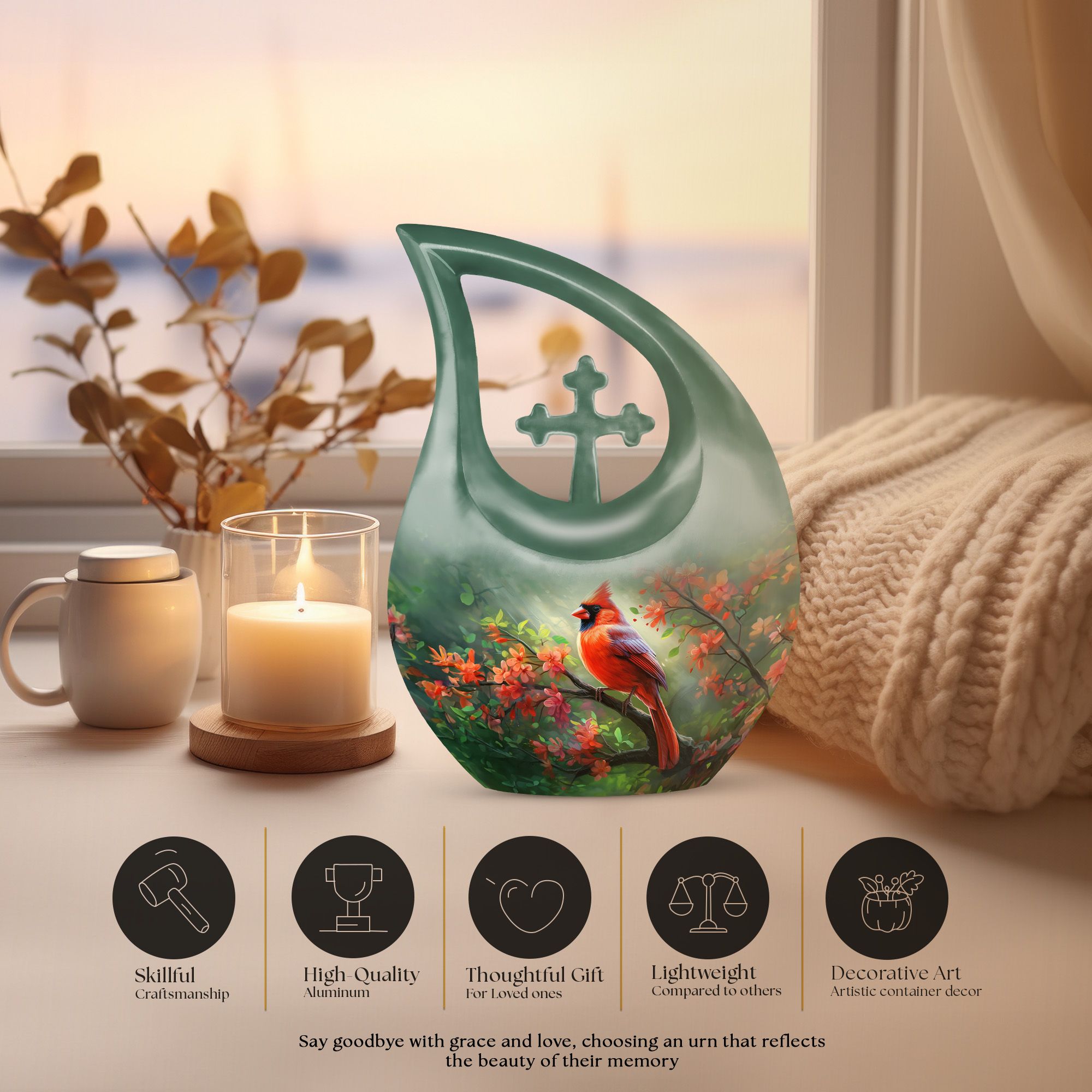 Red Cardinal Memorial Urn – Christian Cross Keepsake for Human Ashes