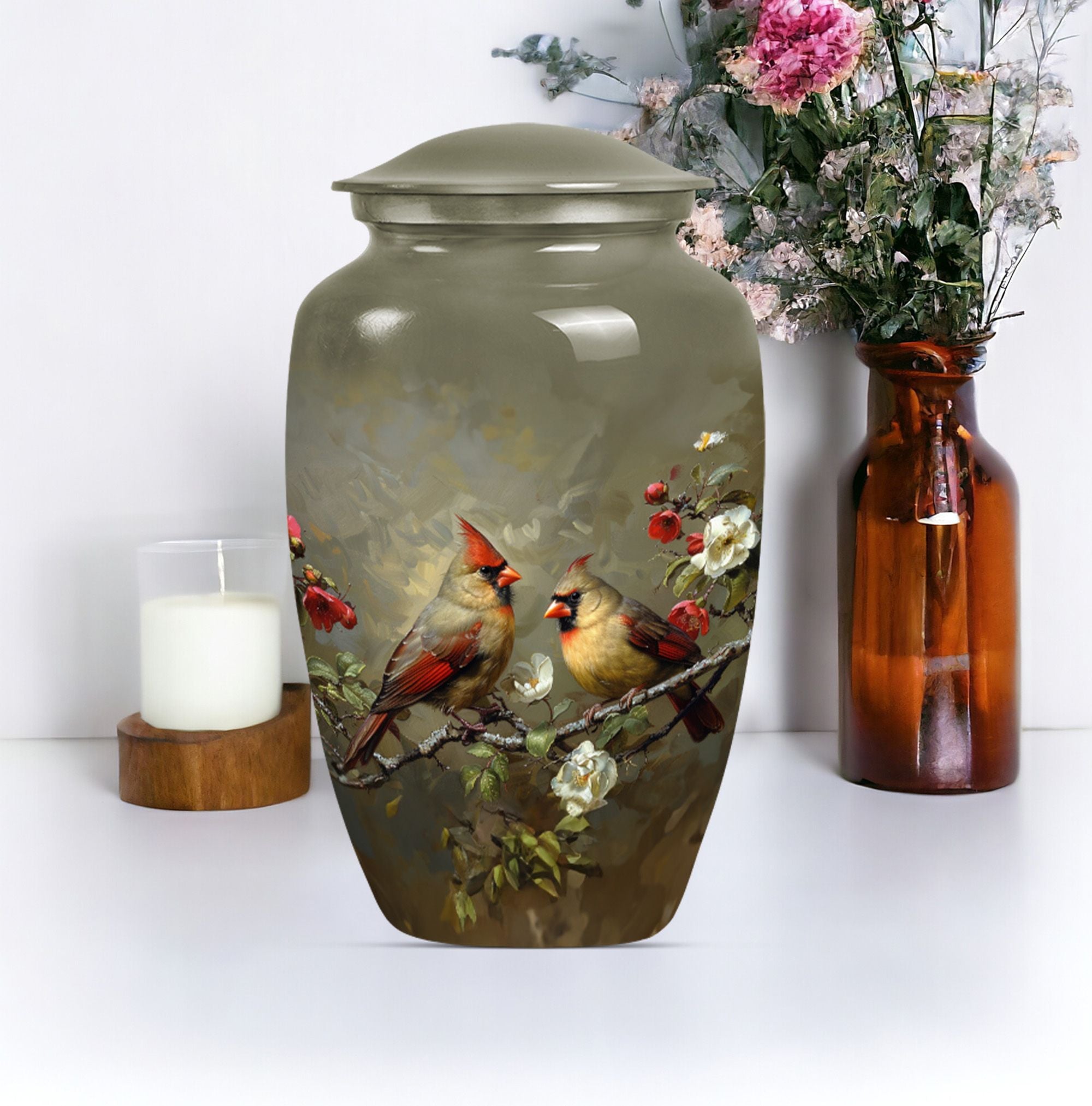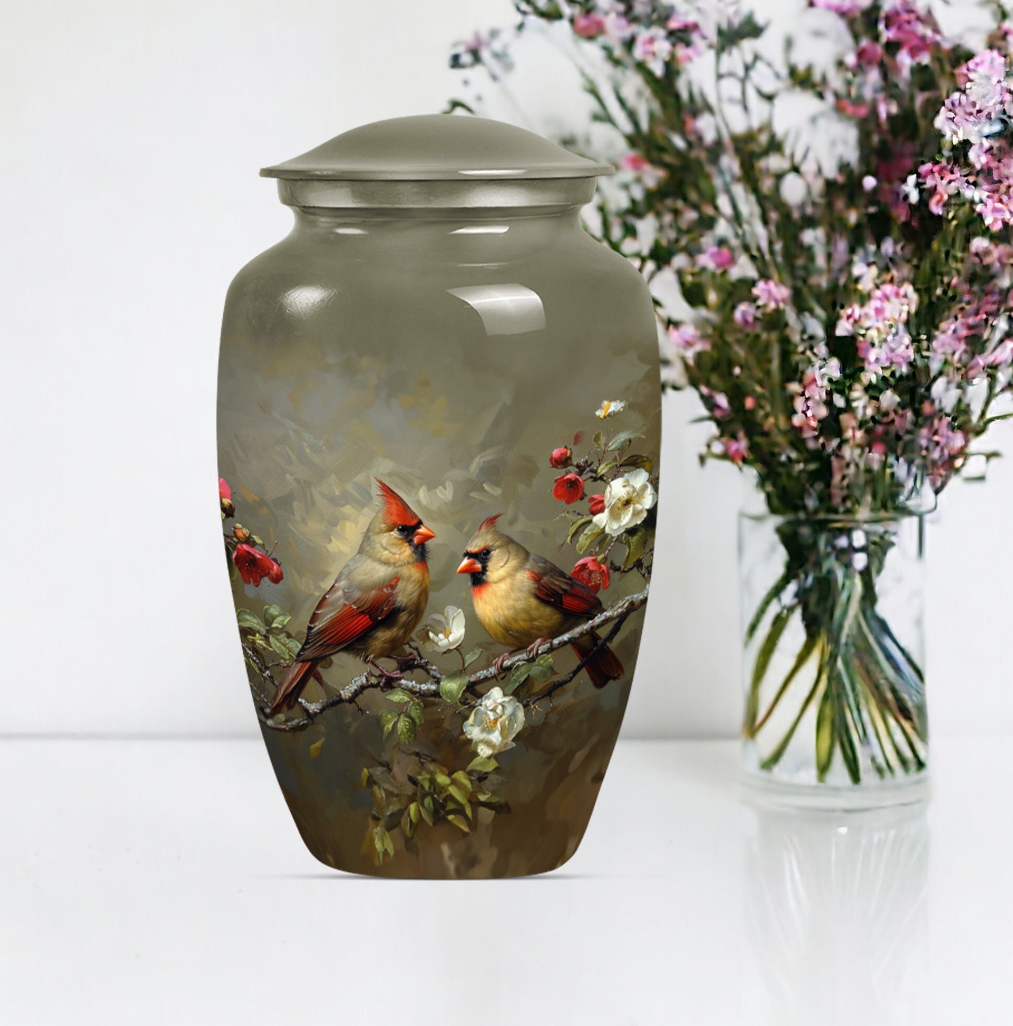 Cardinal Bird Tribute: Cremation Urn with Classic Design