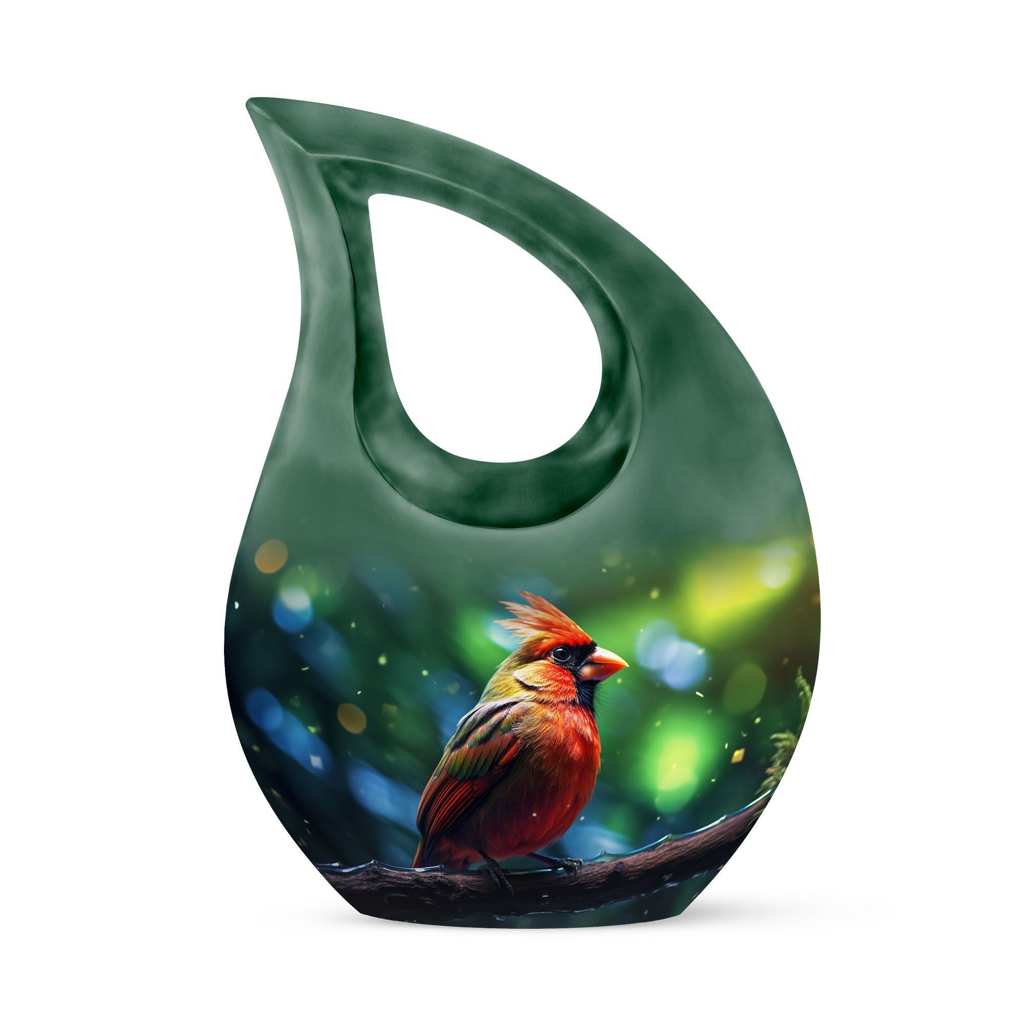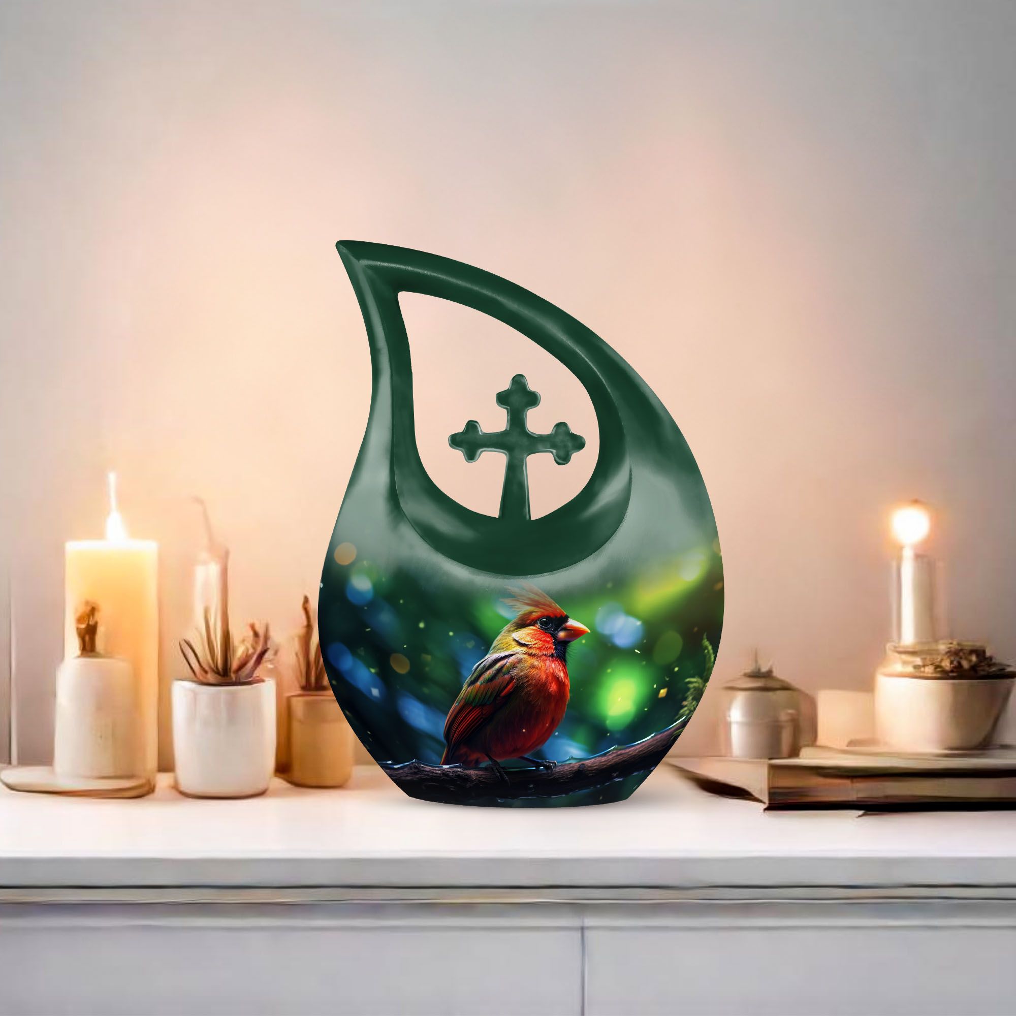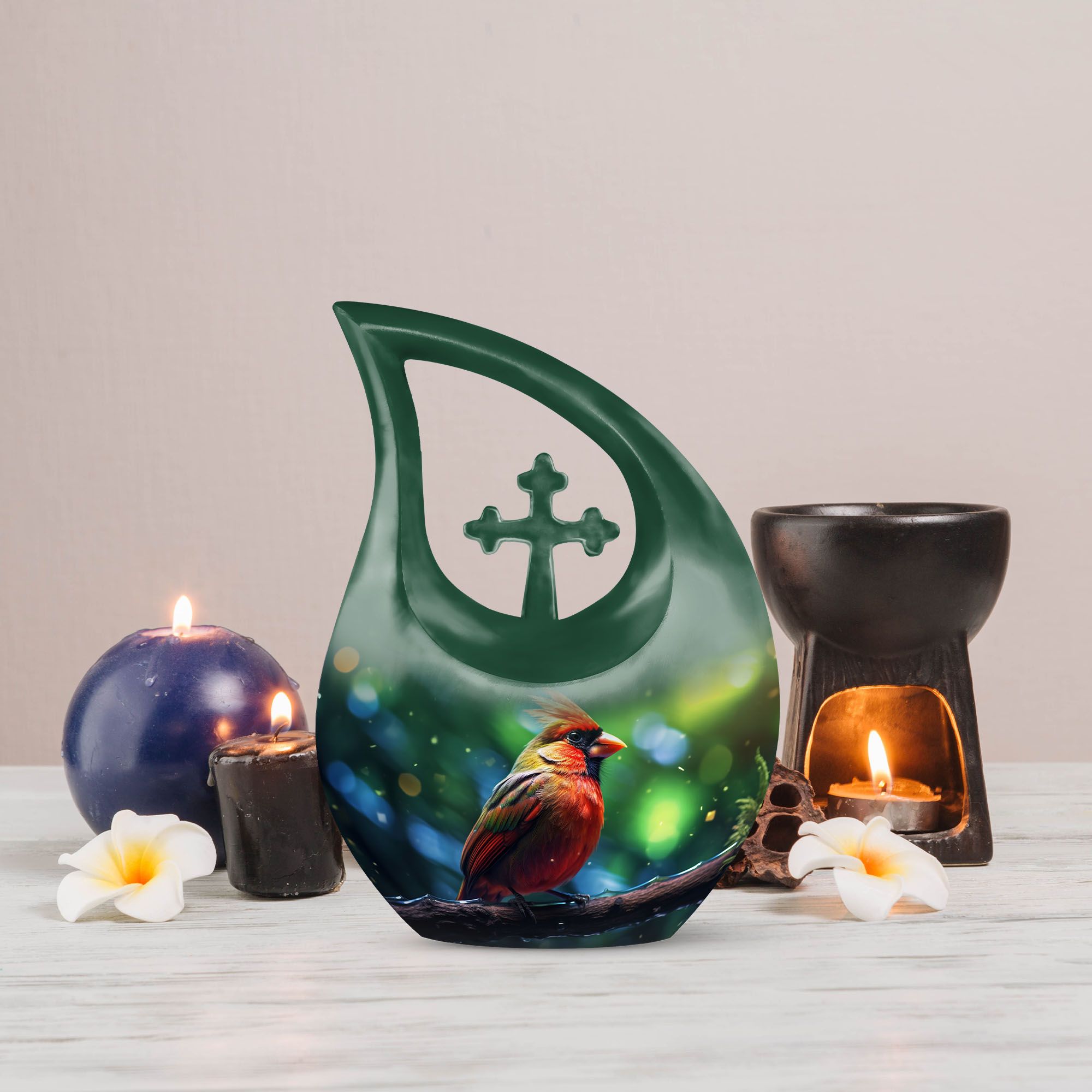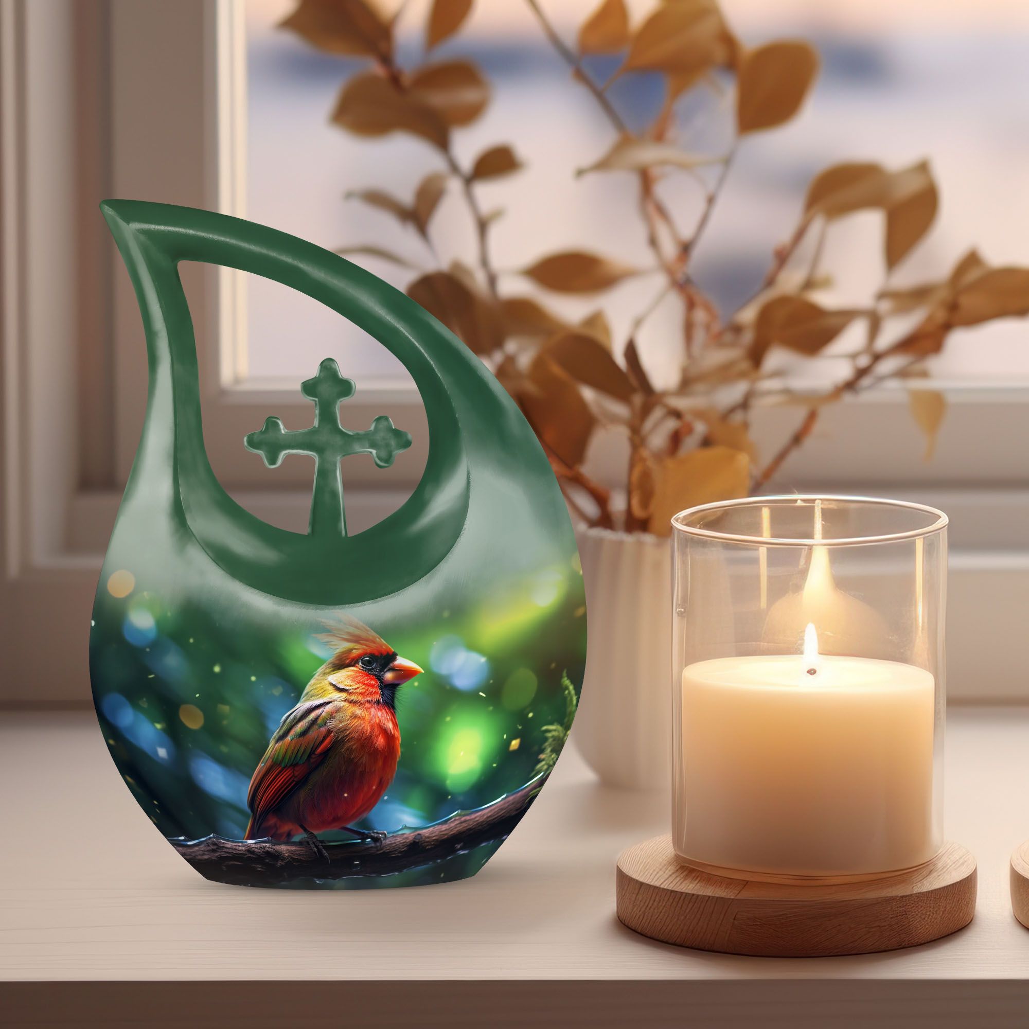 The Red Cardinal Bird Memorial Urn – Green Forest Cremation Urn for Ashes is a heartfelt tribute to a life that continues to bring peace and love even after passing. Inspired by the spiritual symbolism of the red cardinal — a messenger of hope and eternal connection — this funeral ashes urn brings comfort to those cherishing memories of someone special.