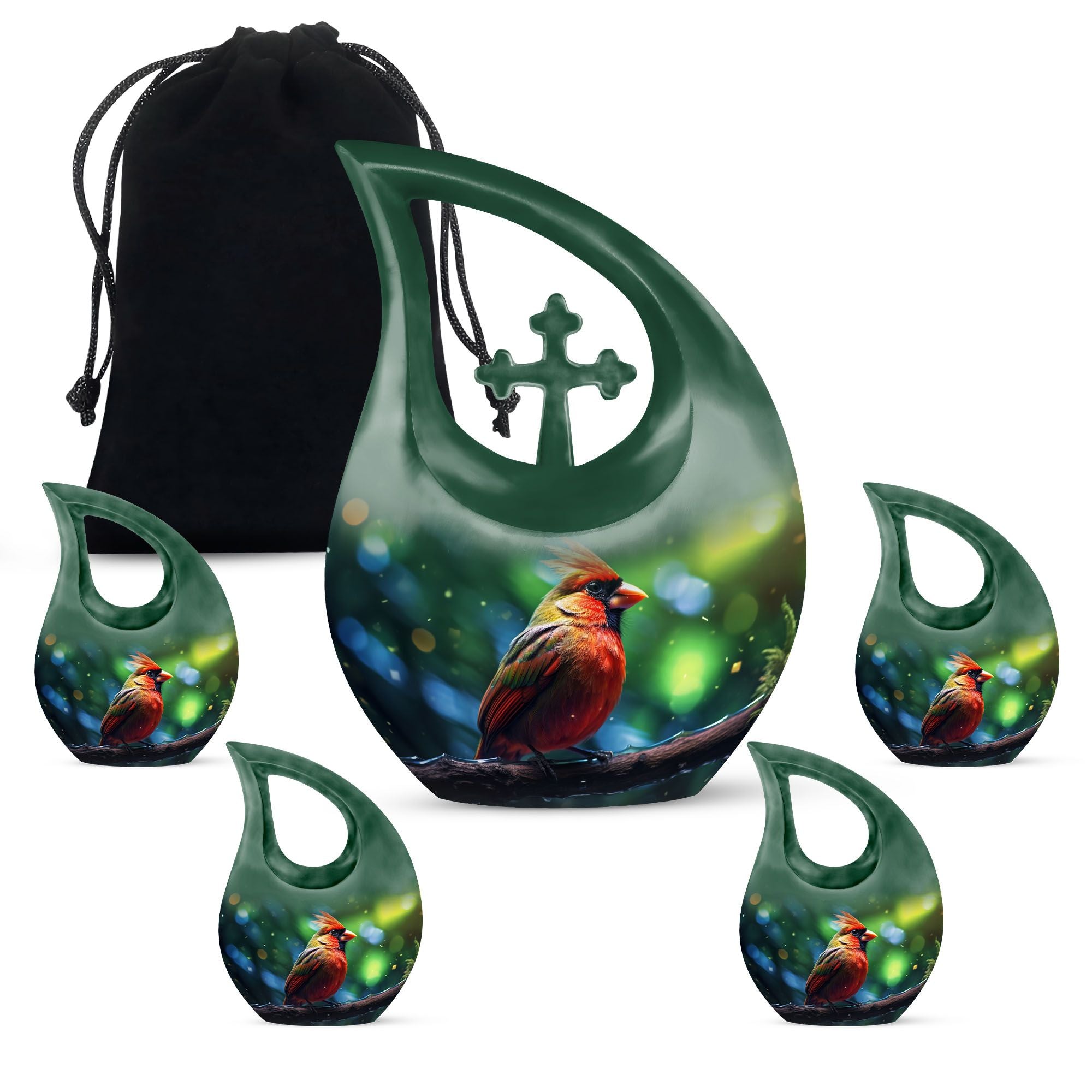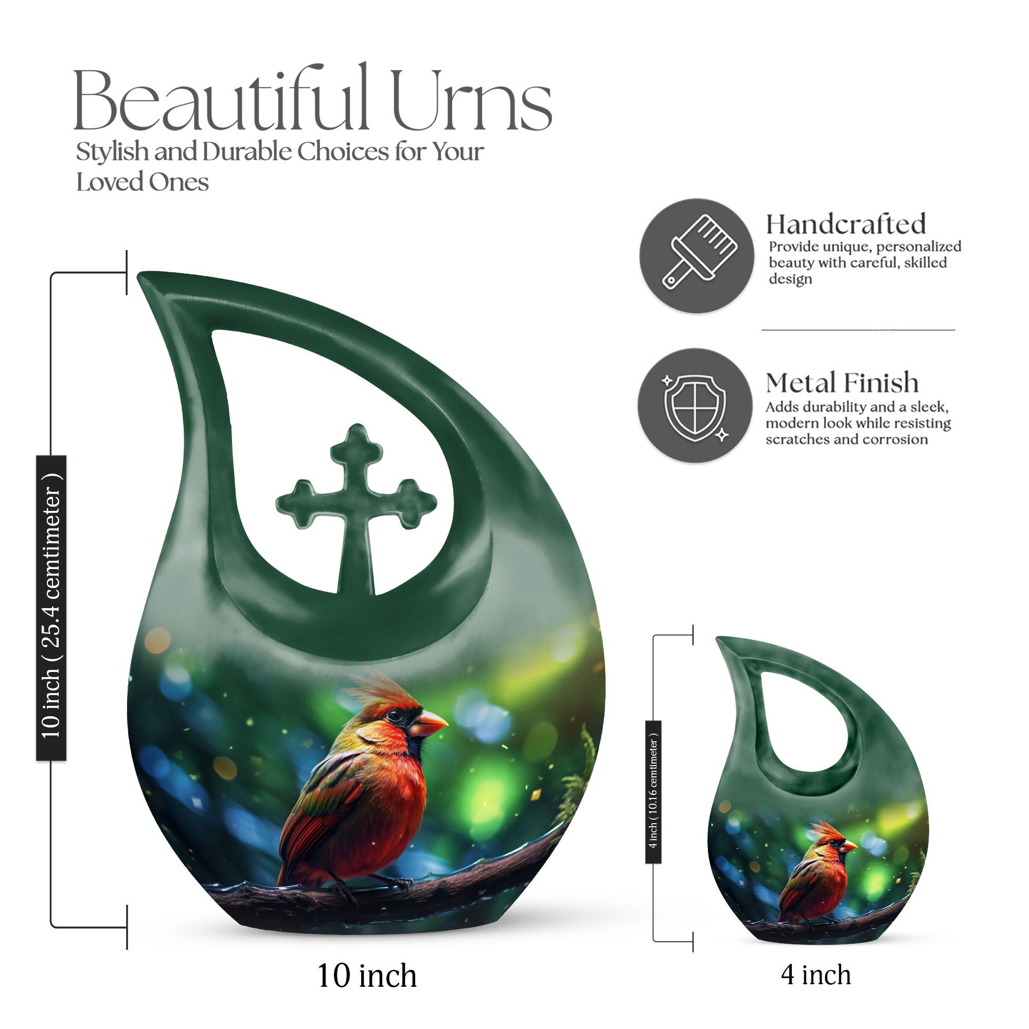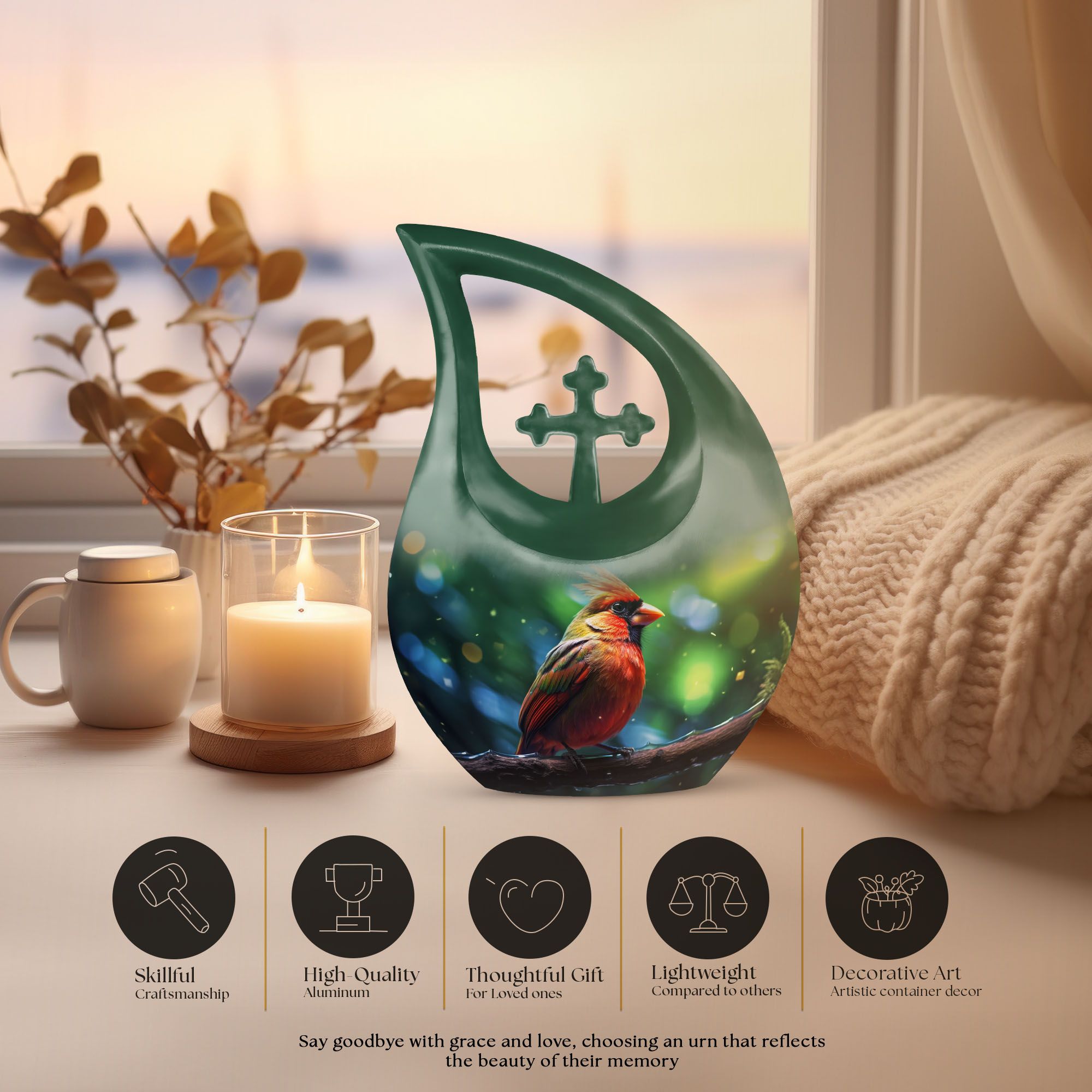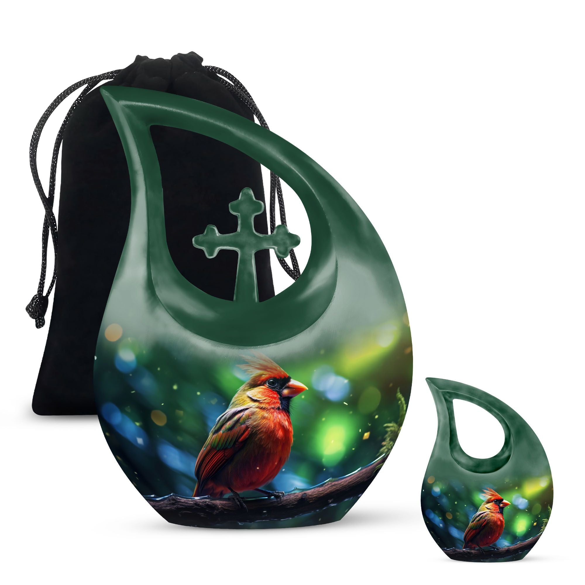 The Red Cardinal Bird Memorial Urn – Green Forest Cremation Urn for Ashes is a heartfelt tribute to a life that continues to bring peace and love even after passing. Inspired by the spiritual symbolism of the red cardinal — a messenger of hope and eternal connection — this funeral ashes urn brings comfort to those cherishing memories of someone special.