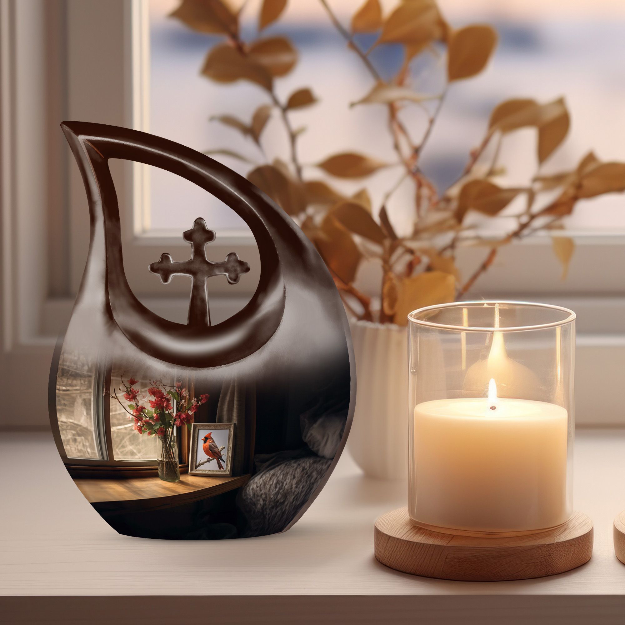 The cardinal symbol beautifully expresses hope, presence, and love—making this urn a comforting reminder for families looking for both small urns for human ashes adult male and urns for cremation ashes female. It stands as a gentle tribute, honoring a life that will always be remembered.