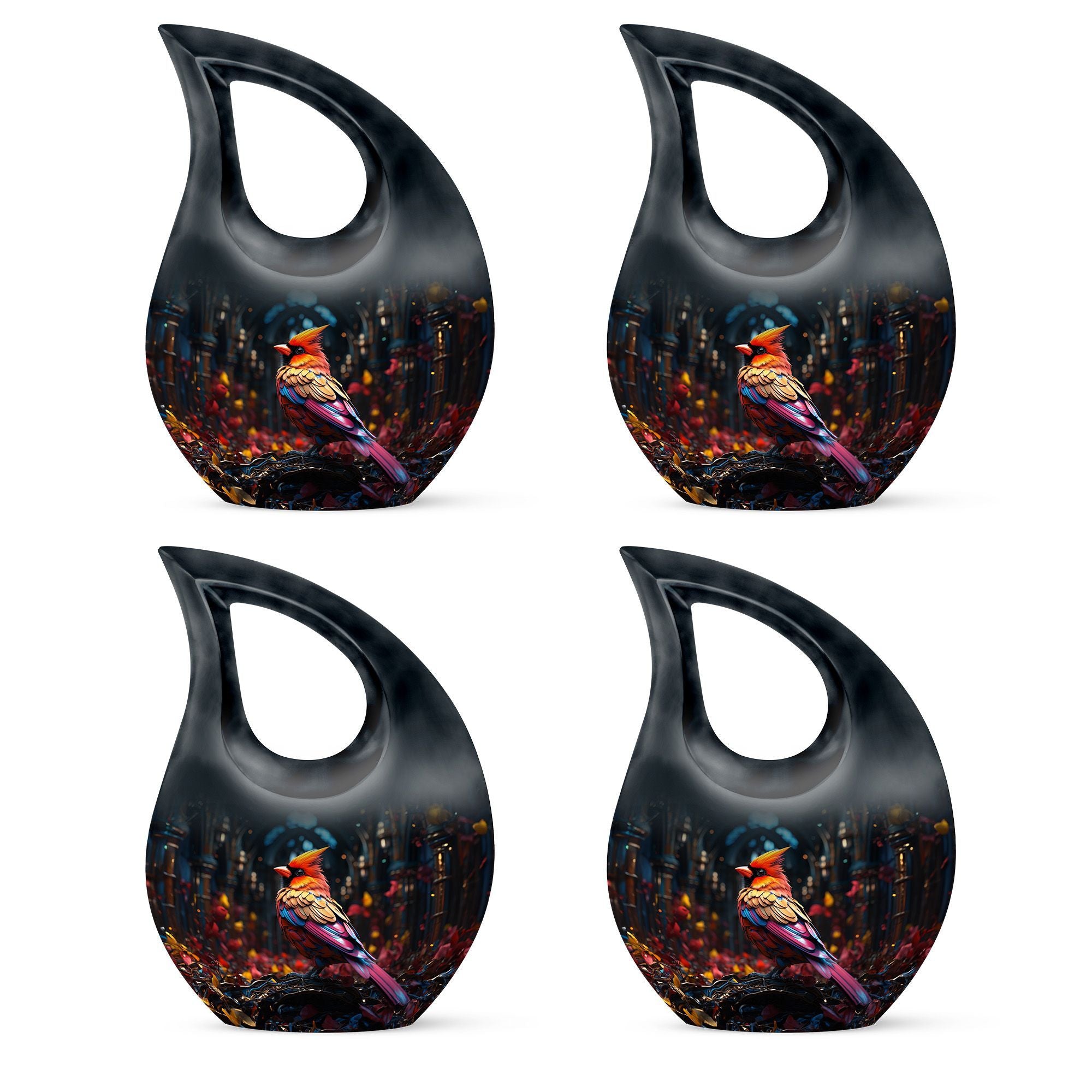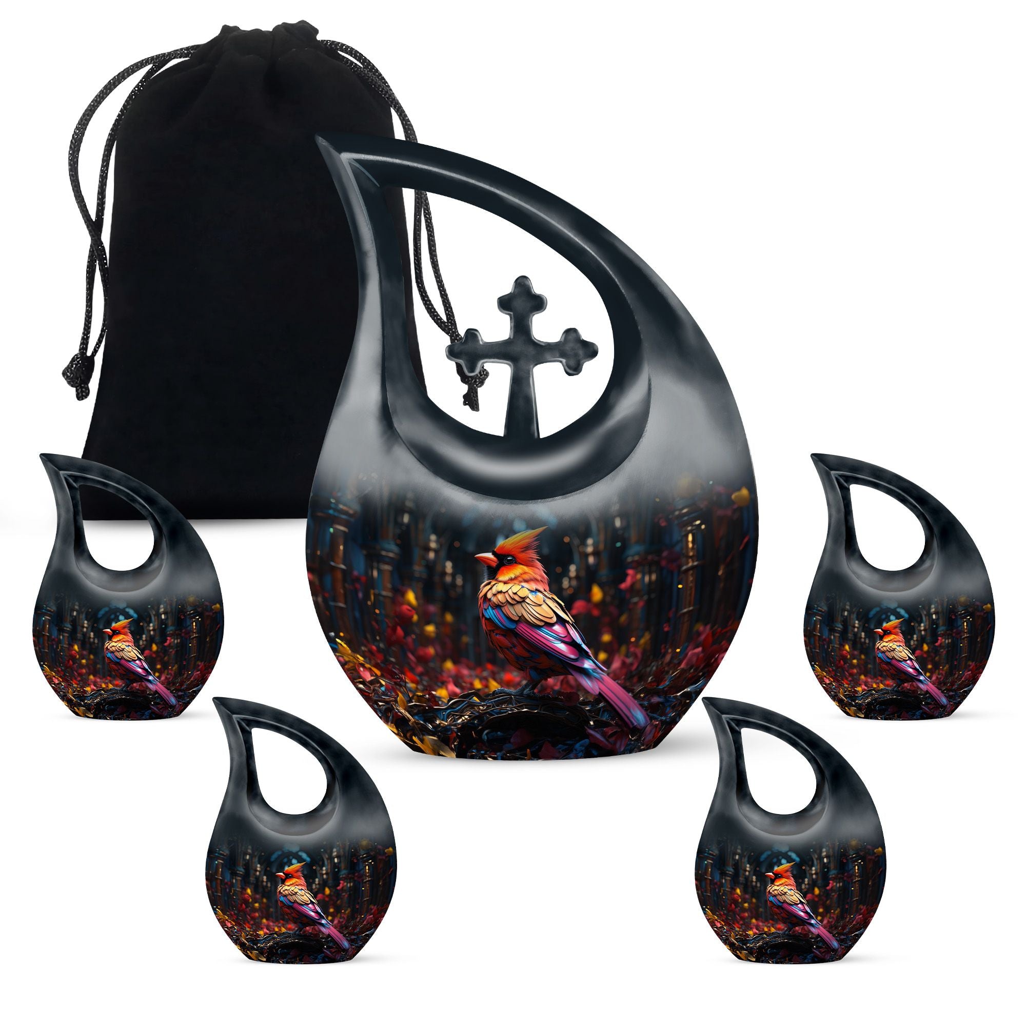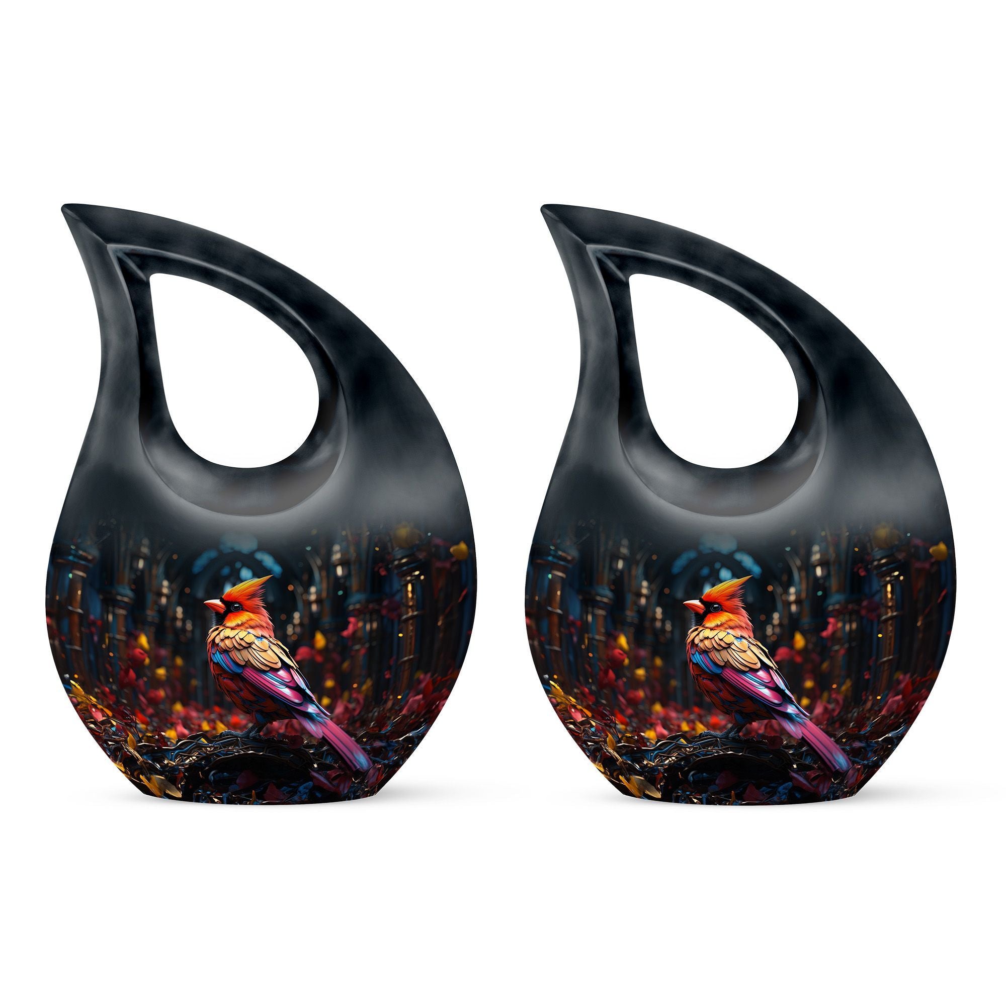 Honor your loved one's memory with our uniquely crafted Cardinal Bird Urn, an epitome of elegance and grace. Made from high-quality aluminium, this Large Urn, measuring at a height of 10 inches, ensures strong durability. This cremation box carries an impressive weight of 3.3 pounds, attesting its robust structure. It features a serene Cardinal Bird theme, making it not just another grey box, but a divine piece of art. Our urn is functional and aesthetically soothing, with a capacity to contain 200 cubic inches of ashes. Along with this sturdy urn, we include a velvet pouch, ensuring a sacred containment of the ashes. For a more personal touch, you have the option to customize this beautiful piece with engraved names. Let this Cardinal Bird Urn be a profound, yet peaceful way for the burial service. (*Please note, the Cross Drop design is not part of this item specifications). Key phrases for search: memorial urns, Purple Urns, Small Urns For Ashes, Urns For Ashes, Mini Urns For Ashes.