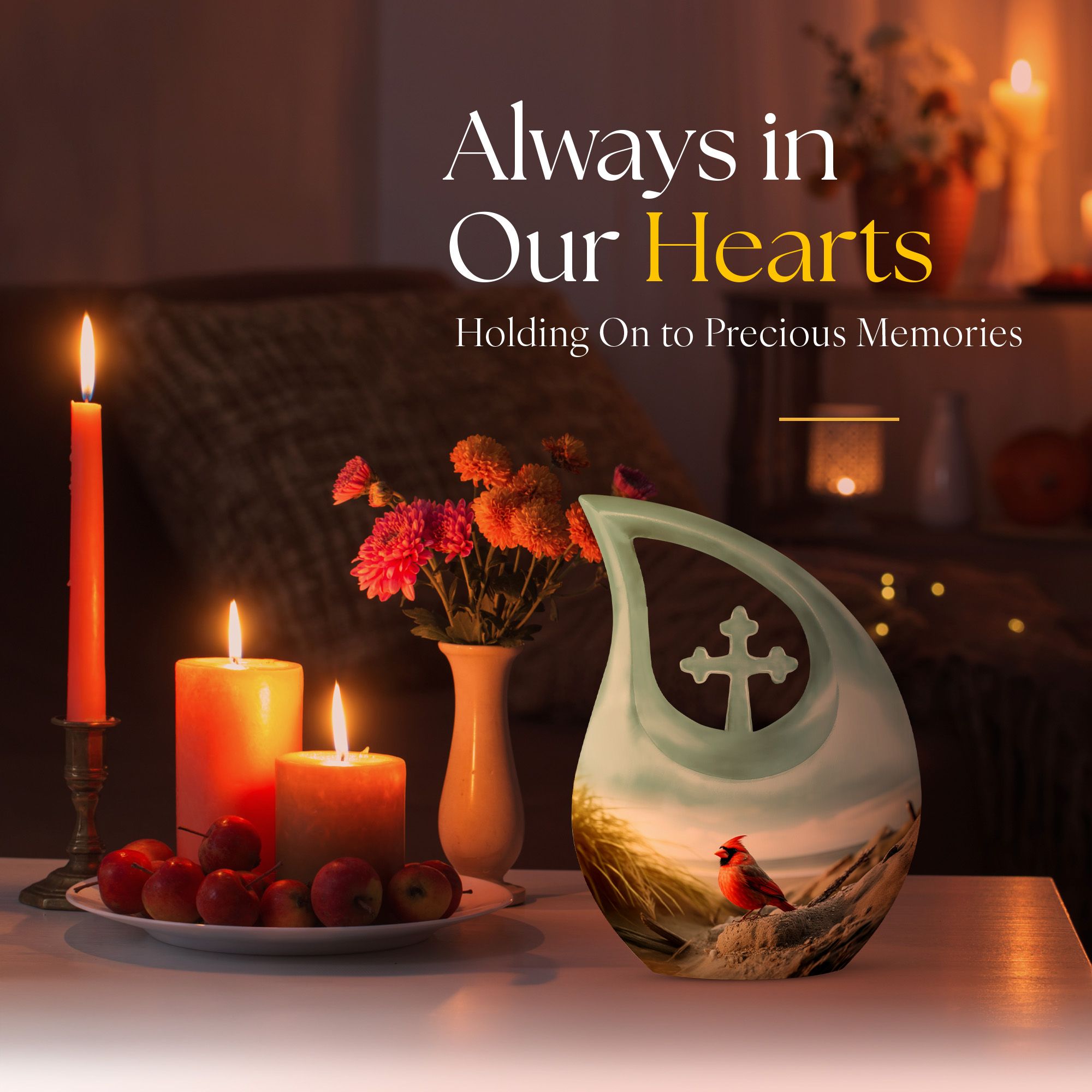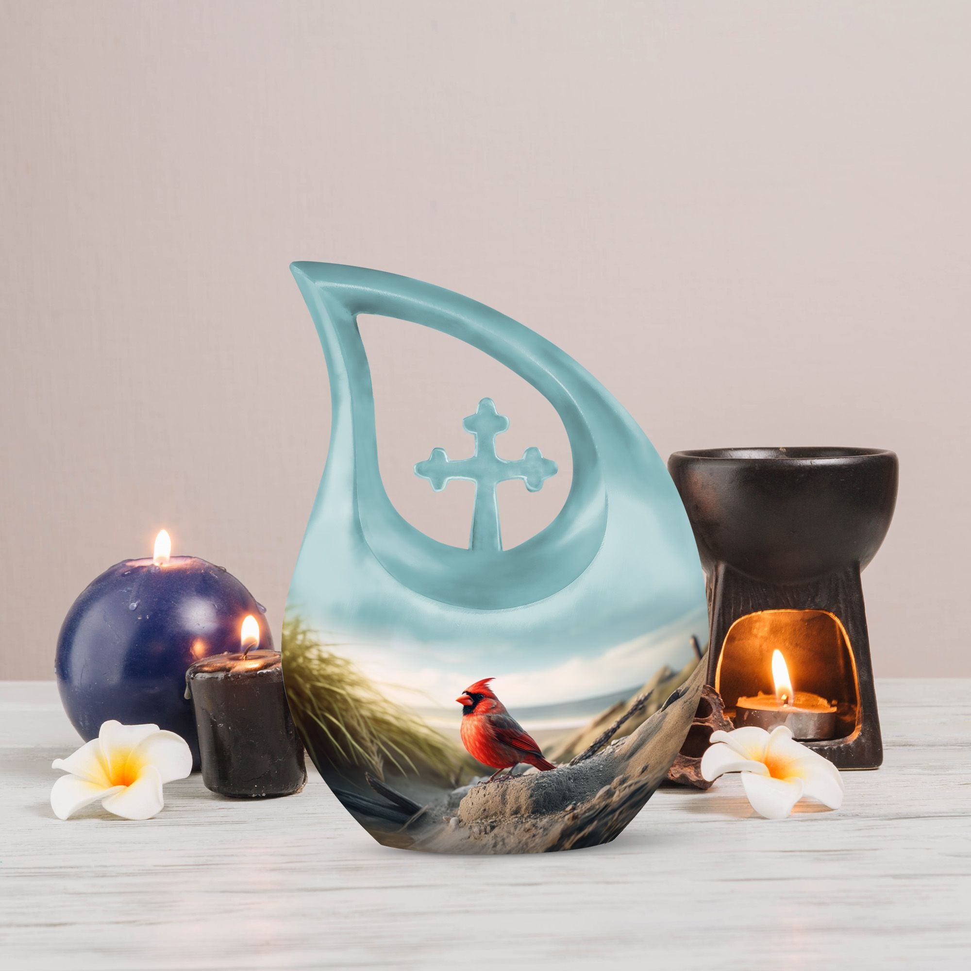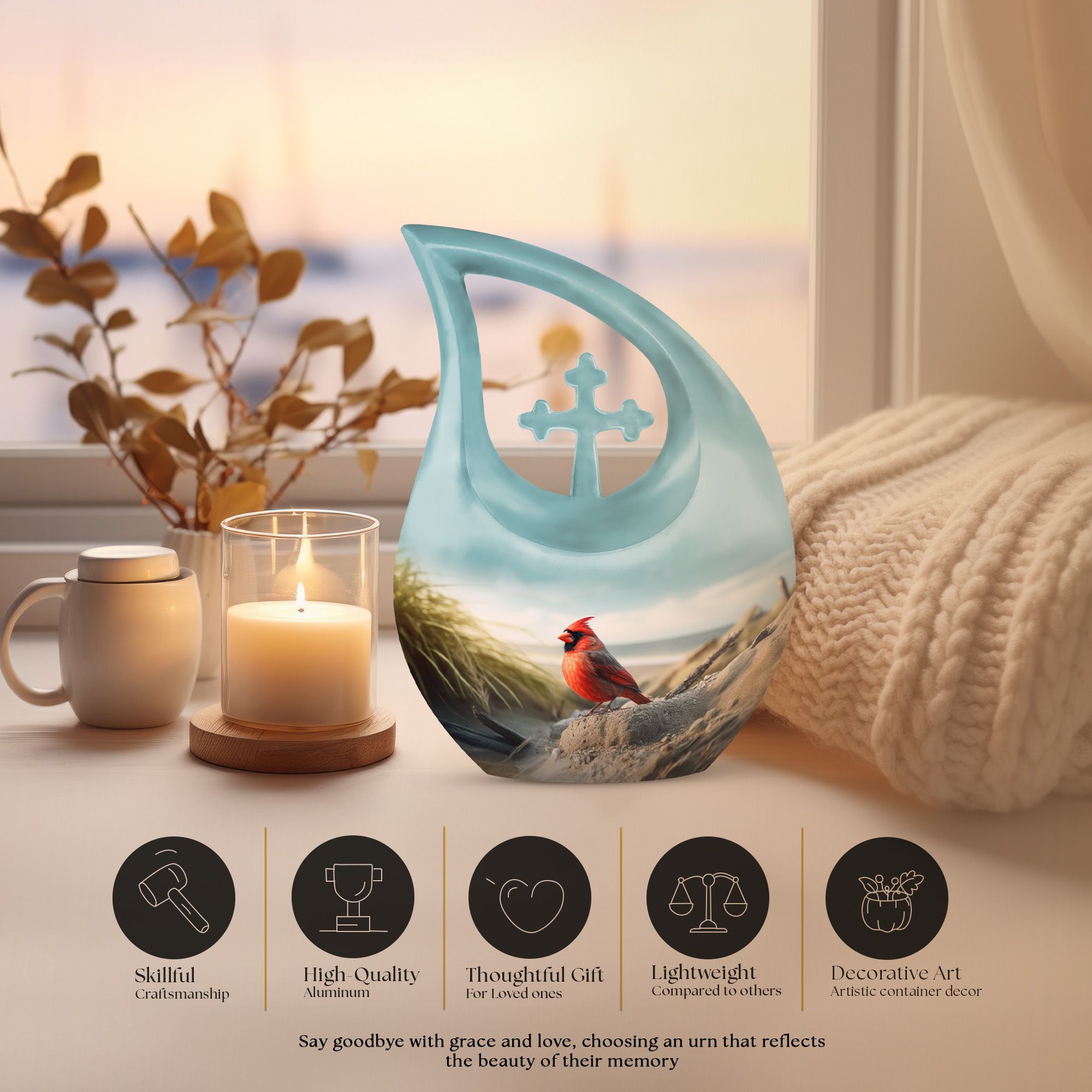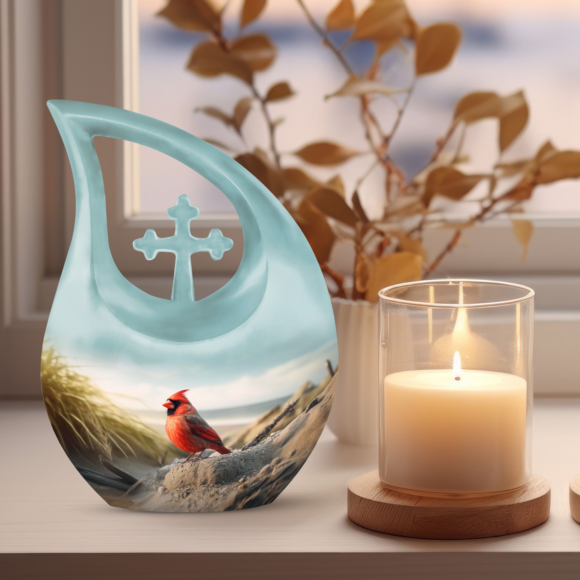 The Red Cardinal Bird Urn offers a peaceful and dignified way to honor a cherished life. Designed with a calming beach-inspired aesthetic and symbolic red cardinal artwork, it brings comfort to families seeking an urn female adult or a meaningful tribute for men and women alike. Its gentle theme represents hope, guidance, and eternal presence.