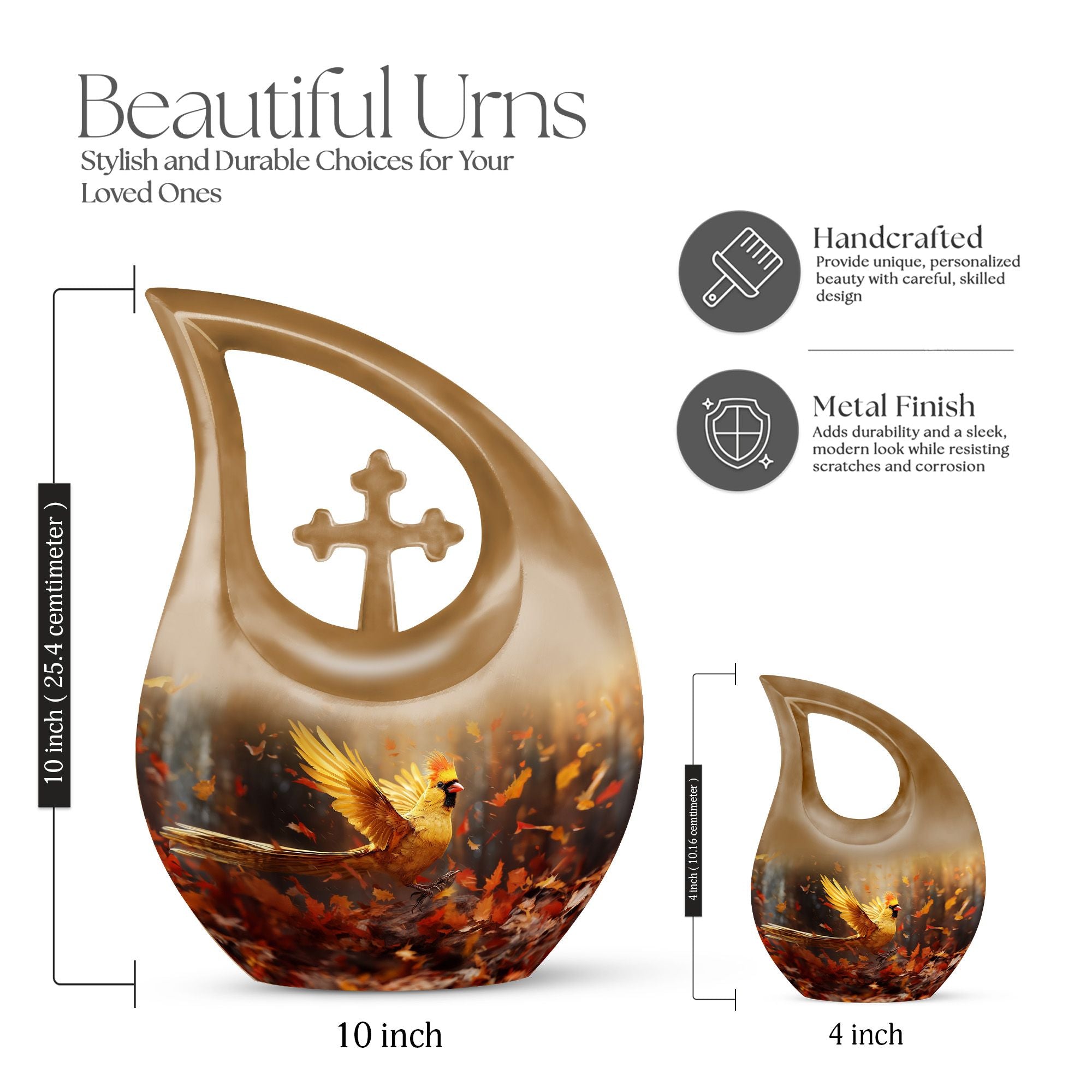 Crafted with exceptional detail, this urn blends artistry and durability, making it ideal for those seeking large human urns or elegant urns for human ashes adult large. The aluminum body ensures long-lasting strength, while the serene cardinal design adds a touch of natural beauty. Its smooth finish, secure structure, and generous size make it a reliable large adult urn for dignified remembrance.