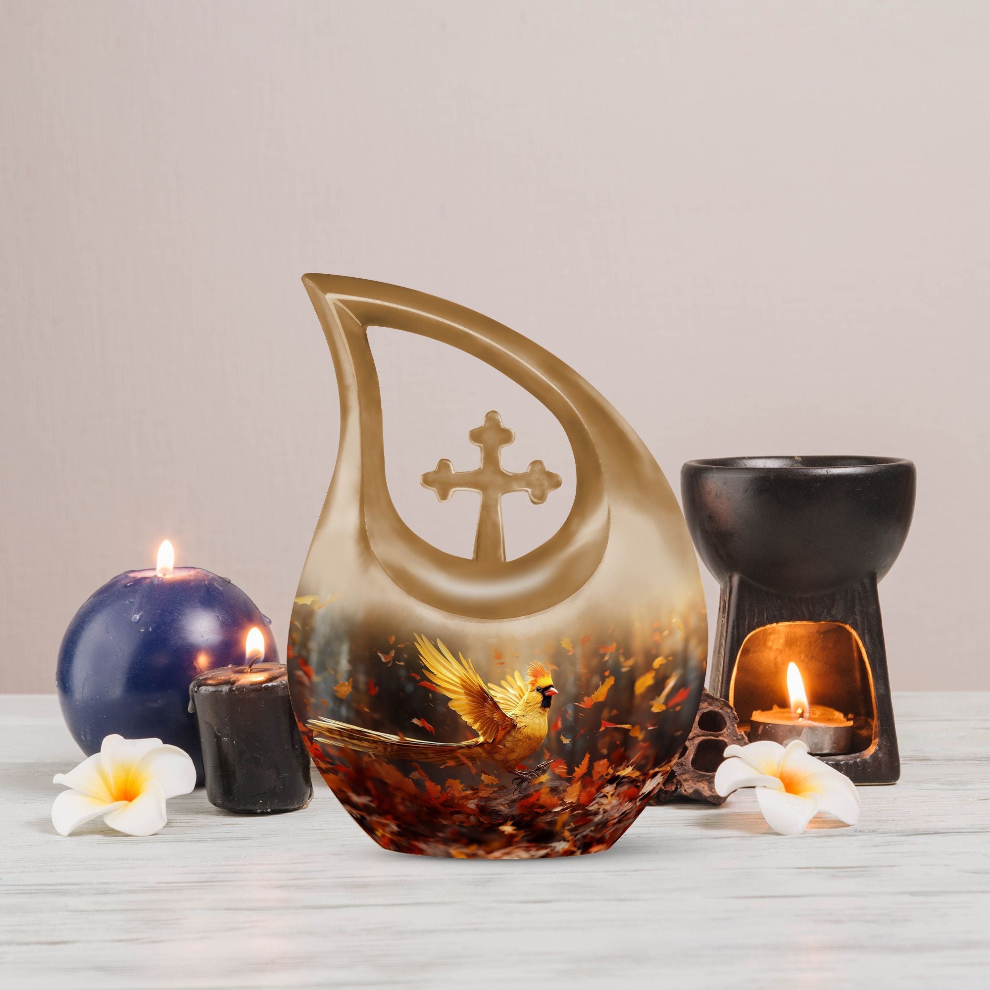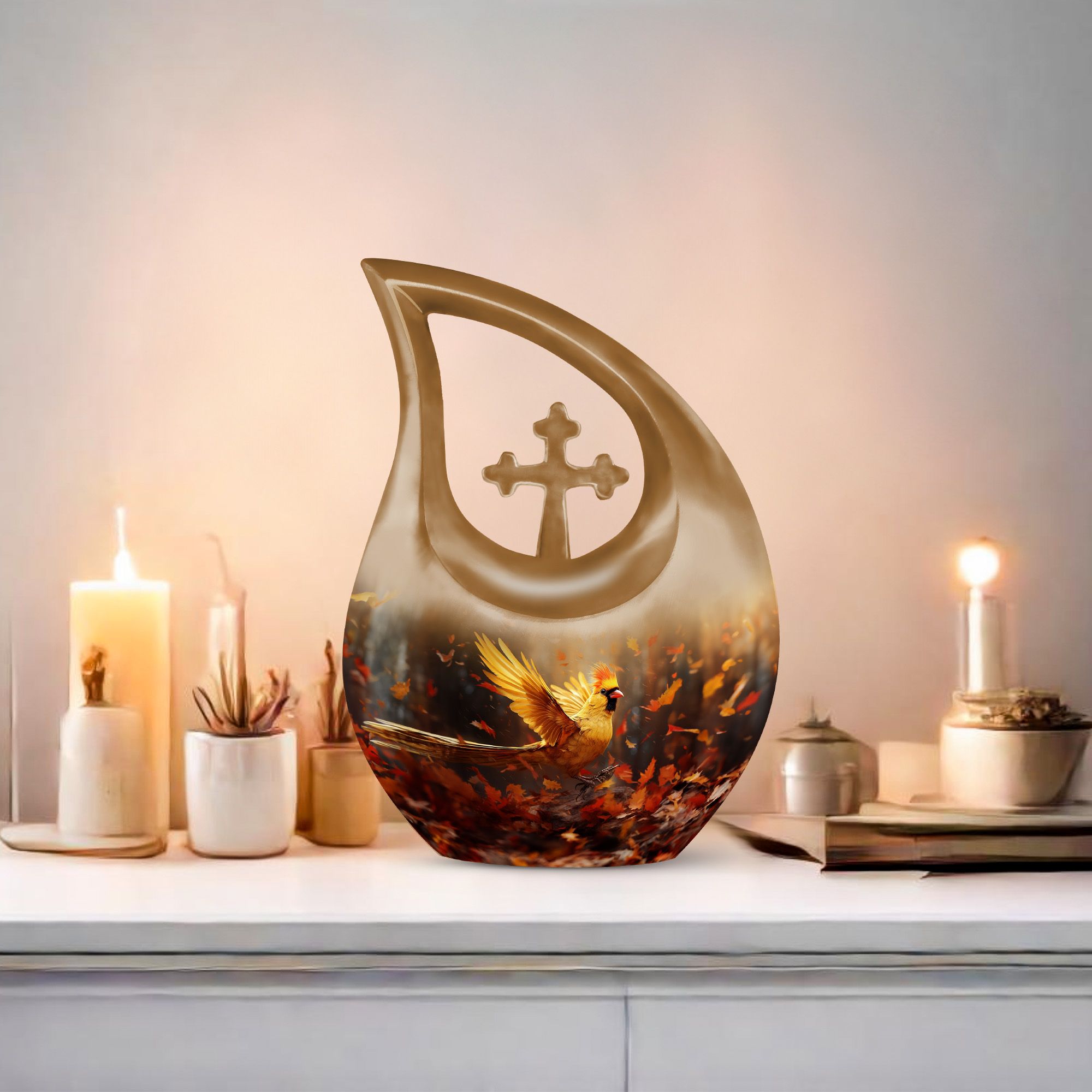 The cardinal, a timeless symbol of love and spiritual presence, brings emotional comfort, making this a beautiful large human urn choice for honoring a parent or cherished companion. Its design serves as a lasting reminder that love remains close, offering peace with every glance at this exquisite urn large adult.