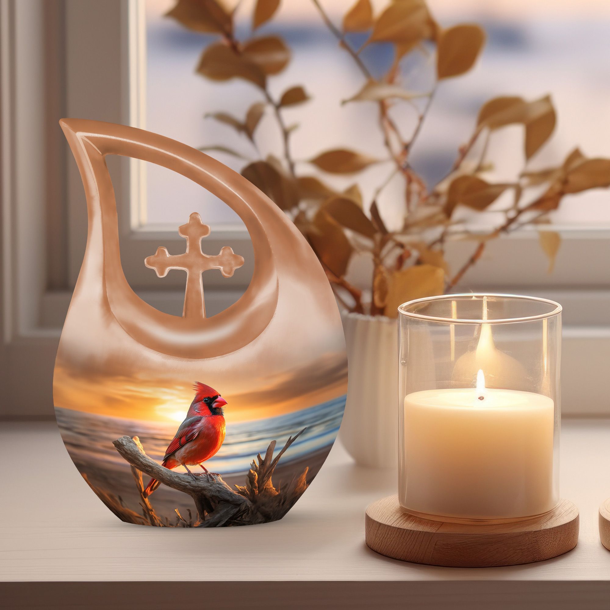 A symbol of peace and undying love, the Red Cardinal Bird Urn serves as more than just a resting place—it is a meaningful expression of remembrance. Keep their light shining through this elegant urn for ashes adult male small or urns for adult female, a timeless tribute to your most precious memories.