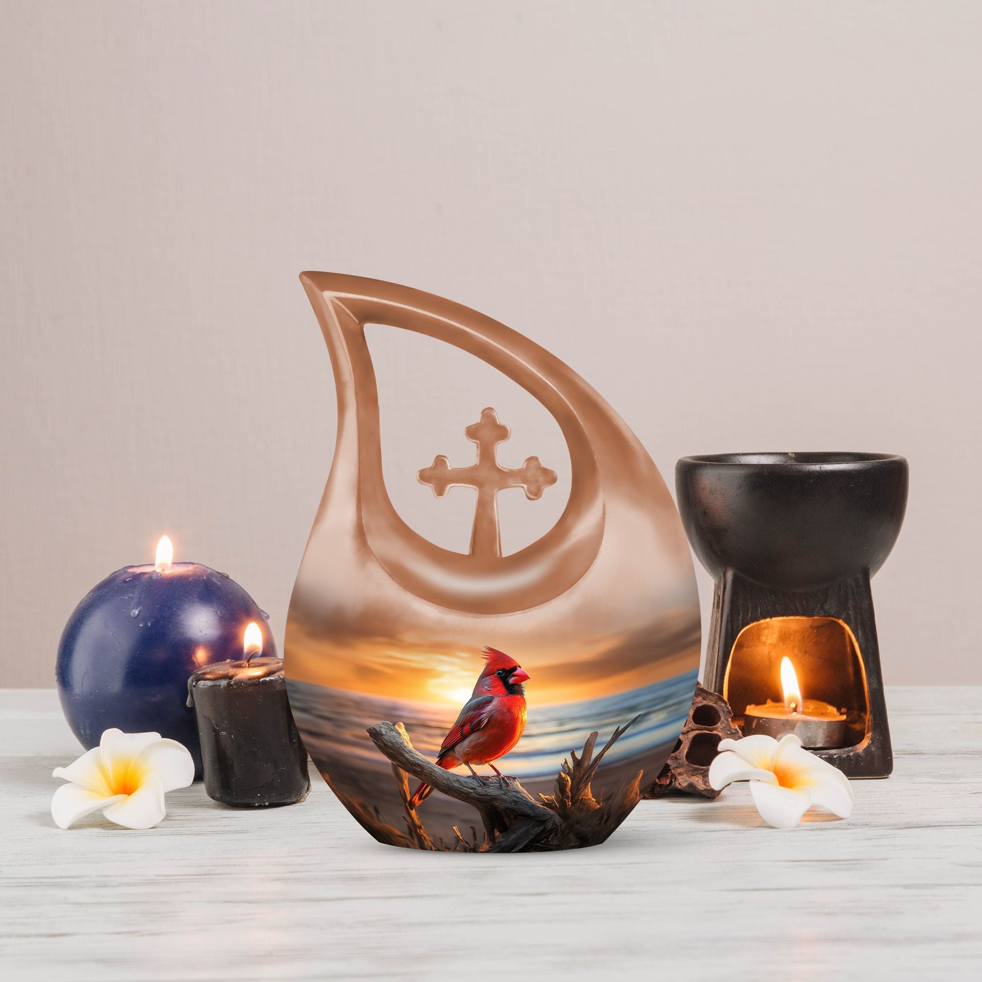 Crafted with precision and care, this urn for adult male and small urn for human ashes adult female features a smooth, durable aluminum body adorned with a stunning red cardinal bird motif—representing hope, devotion, and eternal connection. Ideal for both men and women, these urns for ashes adult female or urns for human ashes adult male are designed for durability and beauty, offering both strength and grace in every detail. The fine craftsmanship ensures a lasting keepsake worthy of your loved one’s legacy.