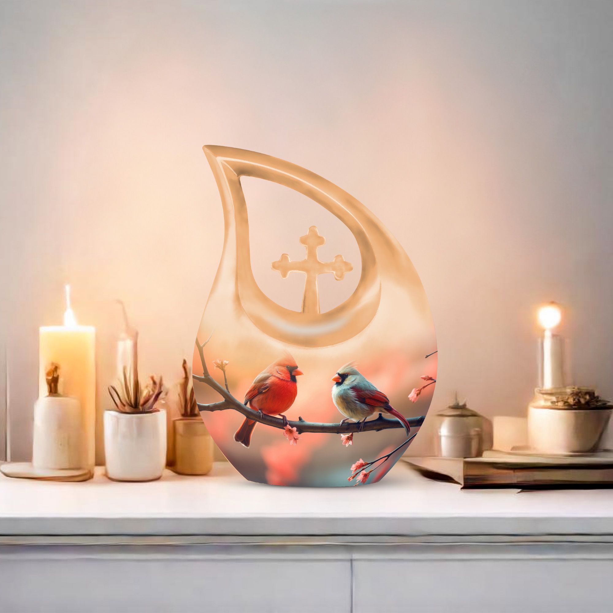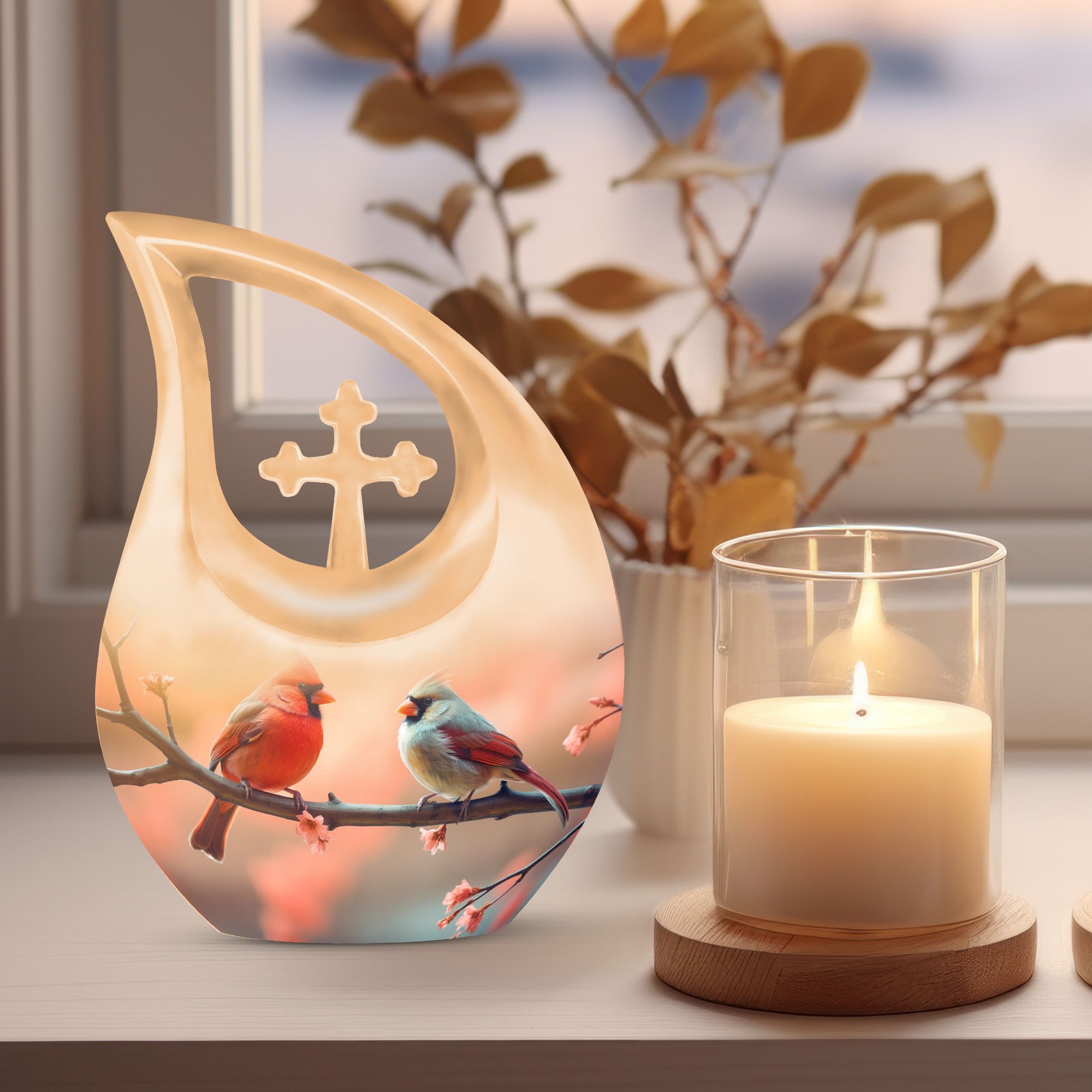 A symbol of hope and spiritual presence, the cardinal design brings comfort during difficult times. This large urn for human ashes serves as a touching reminder of eternal love, keeping memories close in a dignified and meaningful way.
