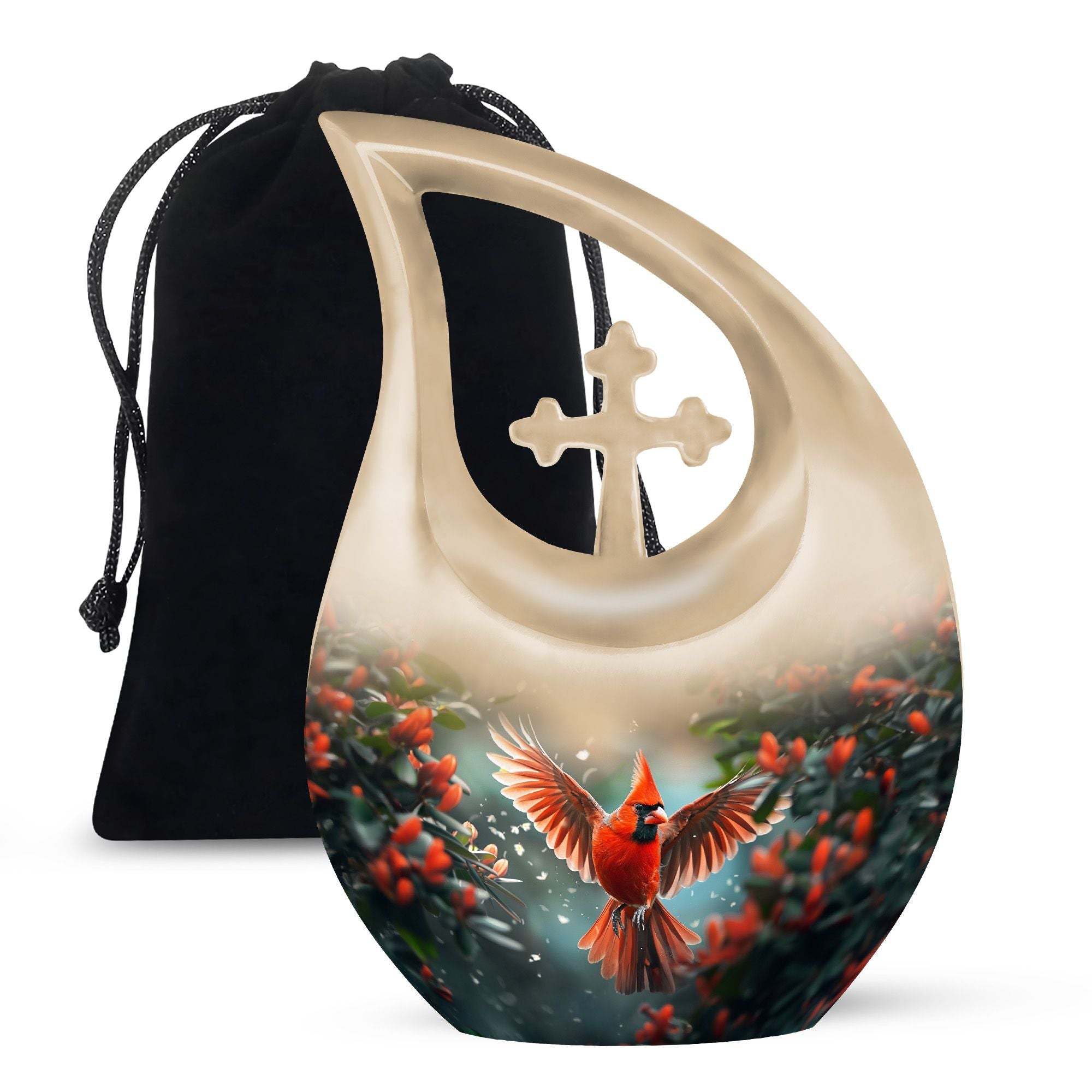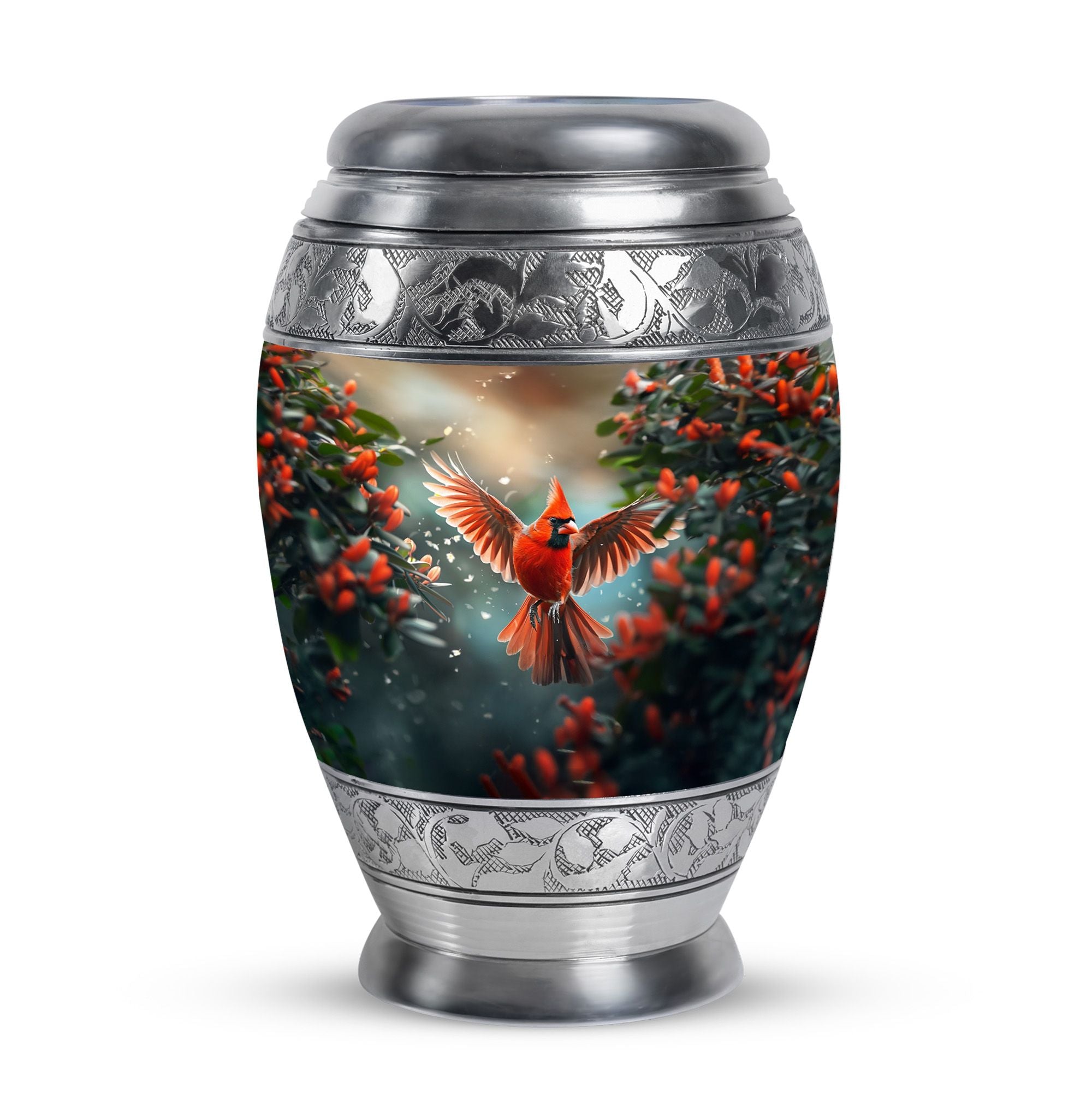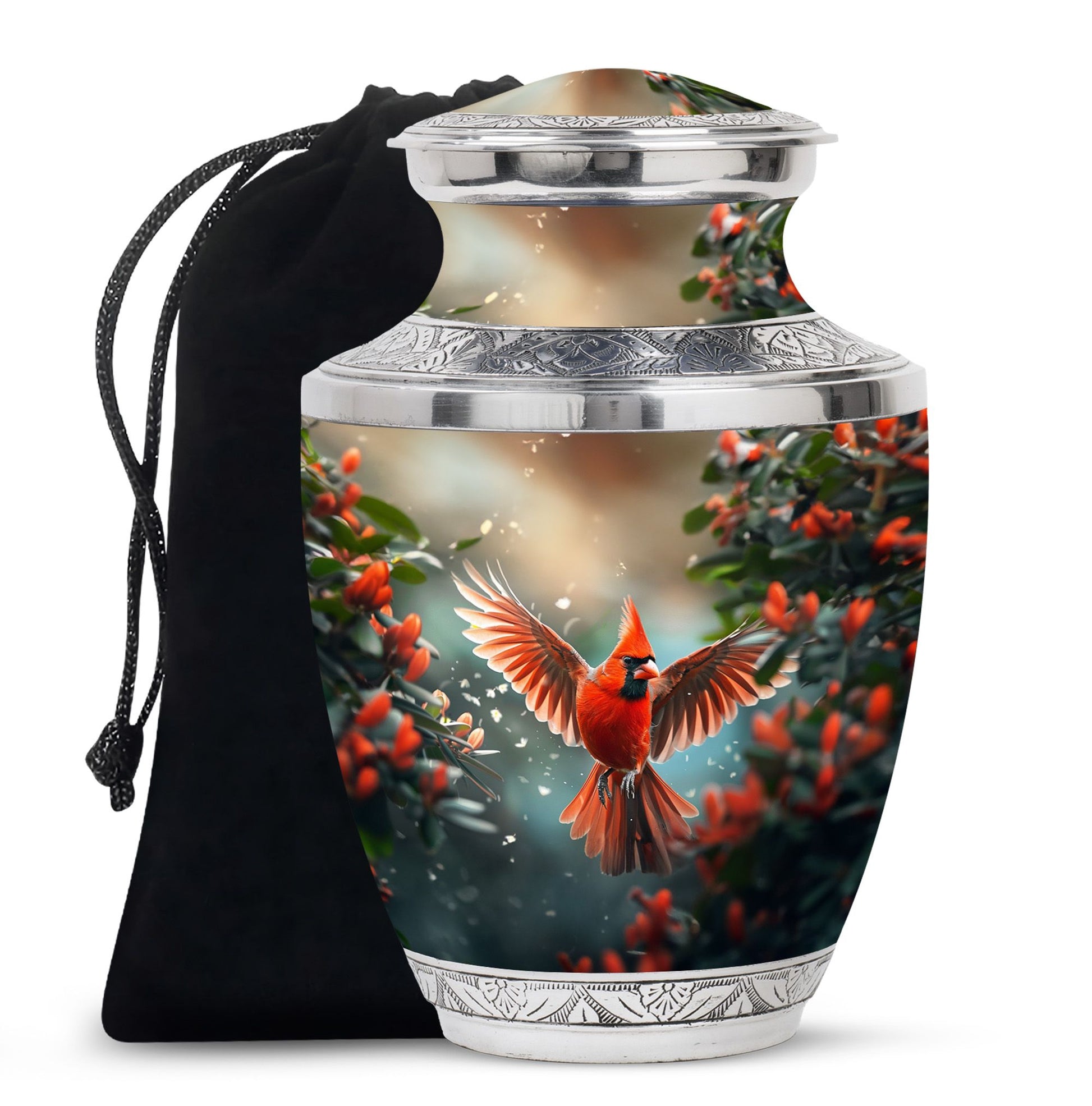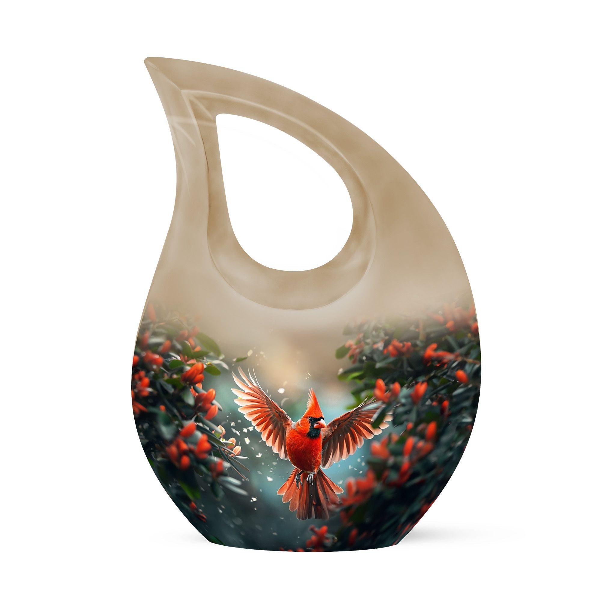With its vibrant cardinal design, this urn symbolizes hope, love, and remembrance, creating a lasting memorial that brings comfort and peace.