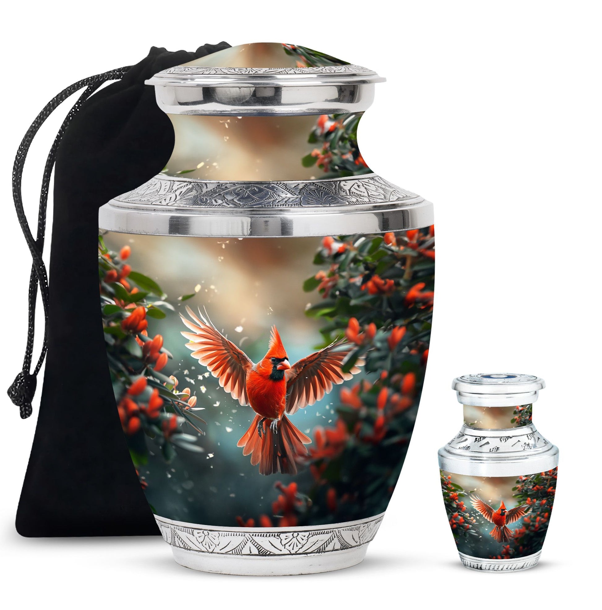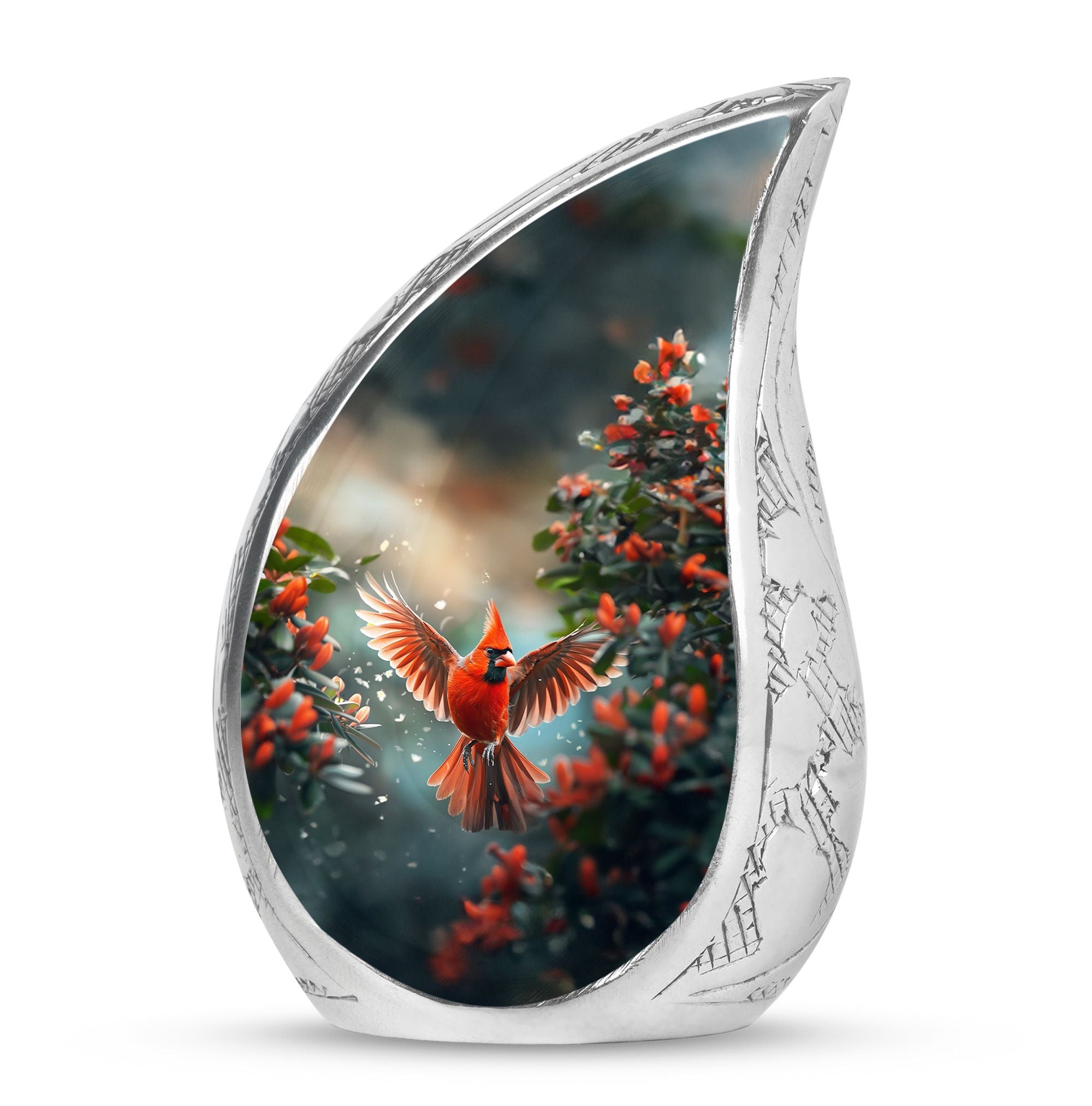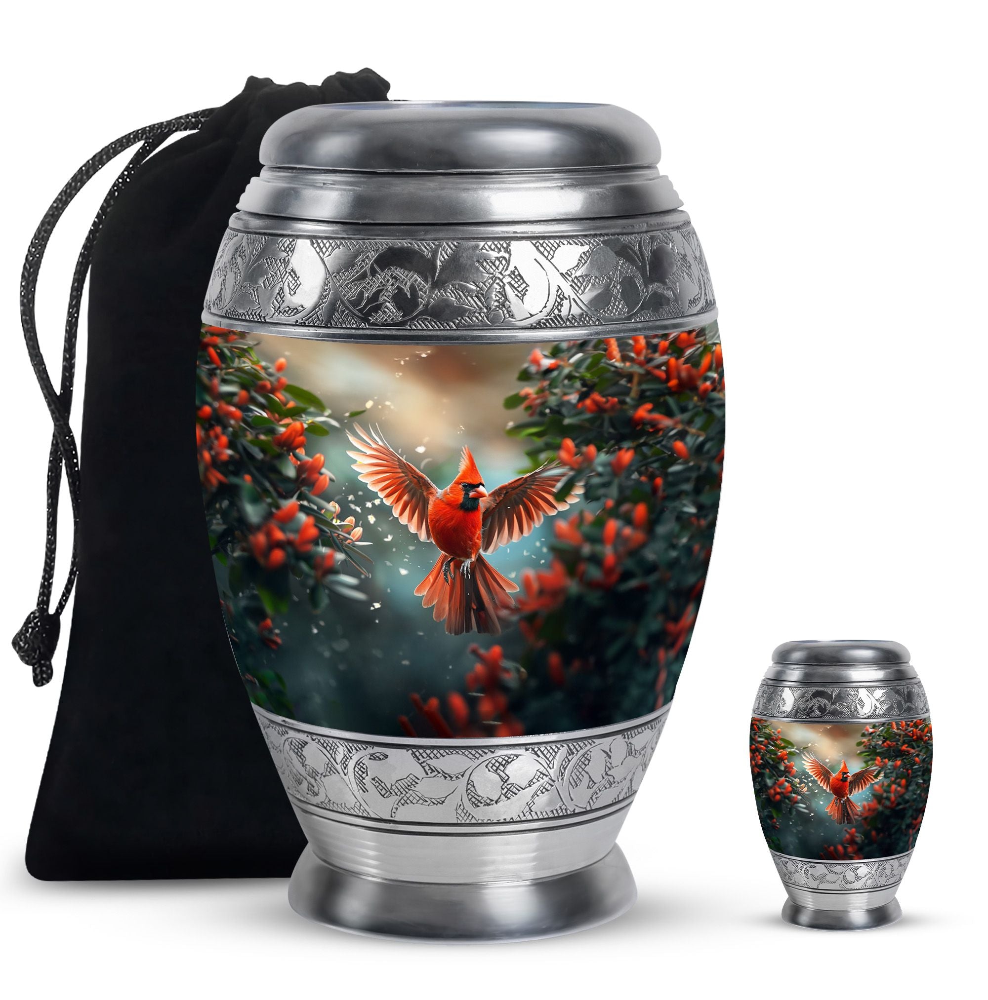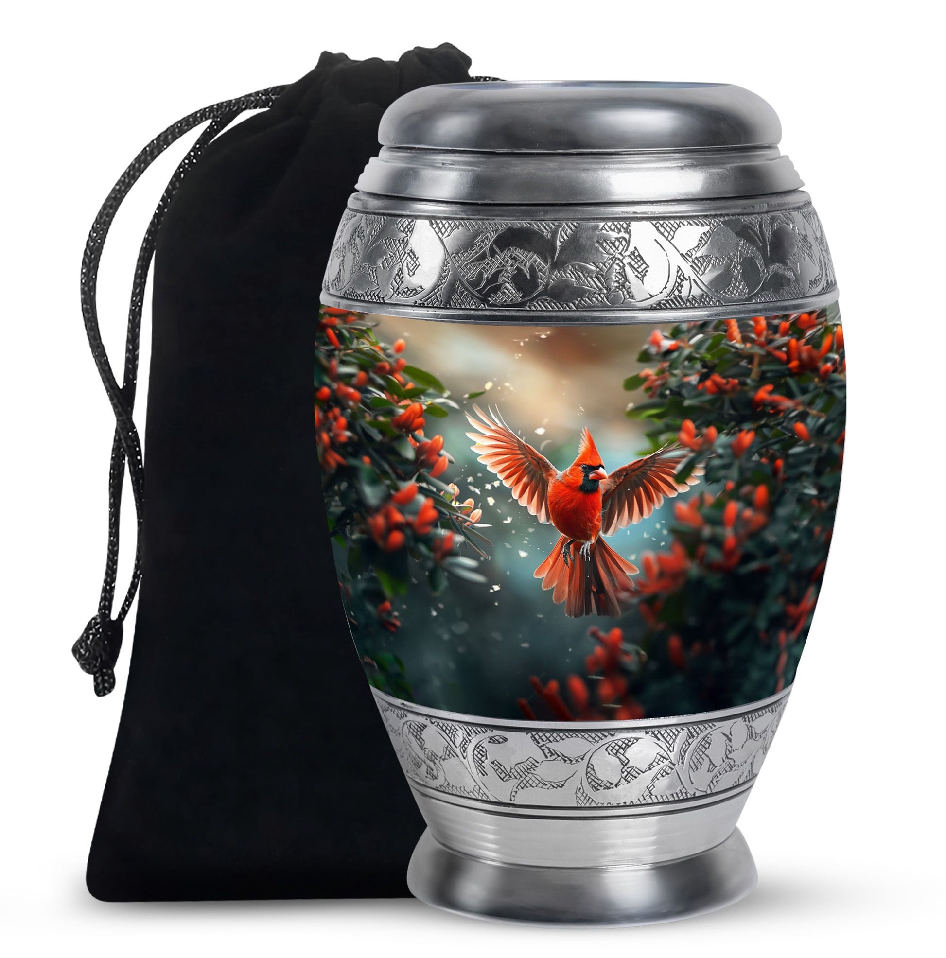 With its vibrant cardinal design, this urn symbolizes hope, love, and remembrance, creating a lasting memorial that brings comfort and peace.