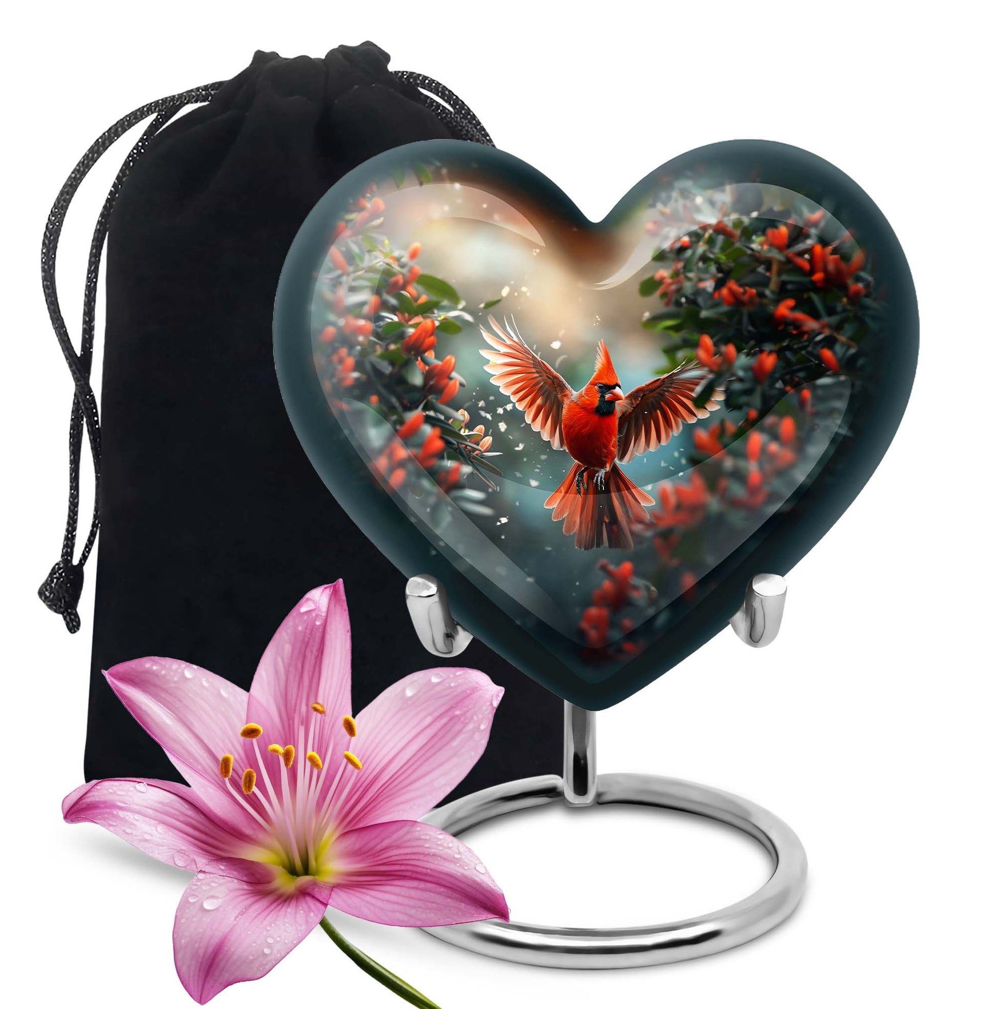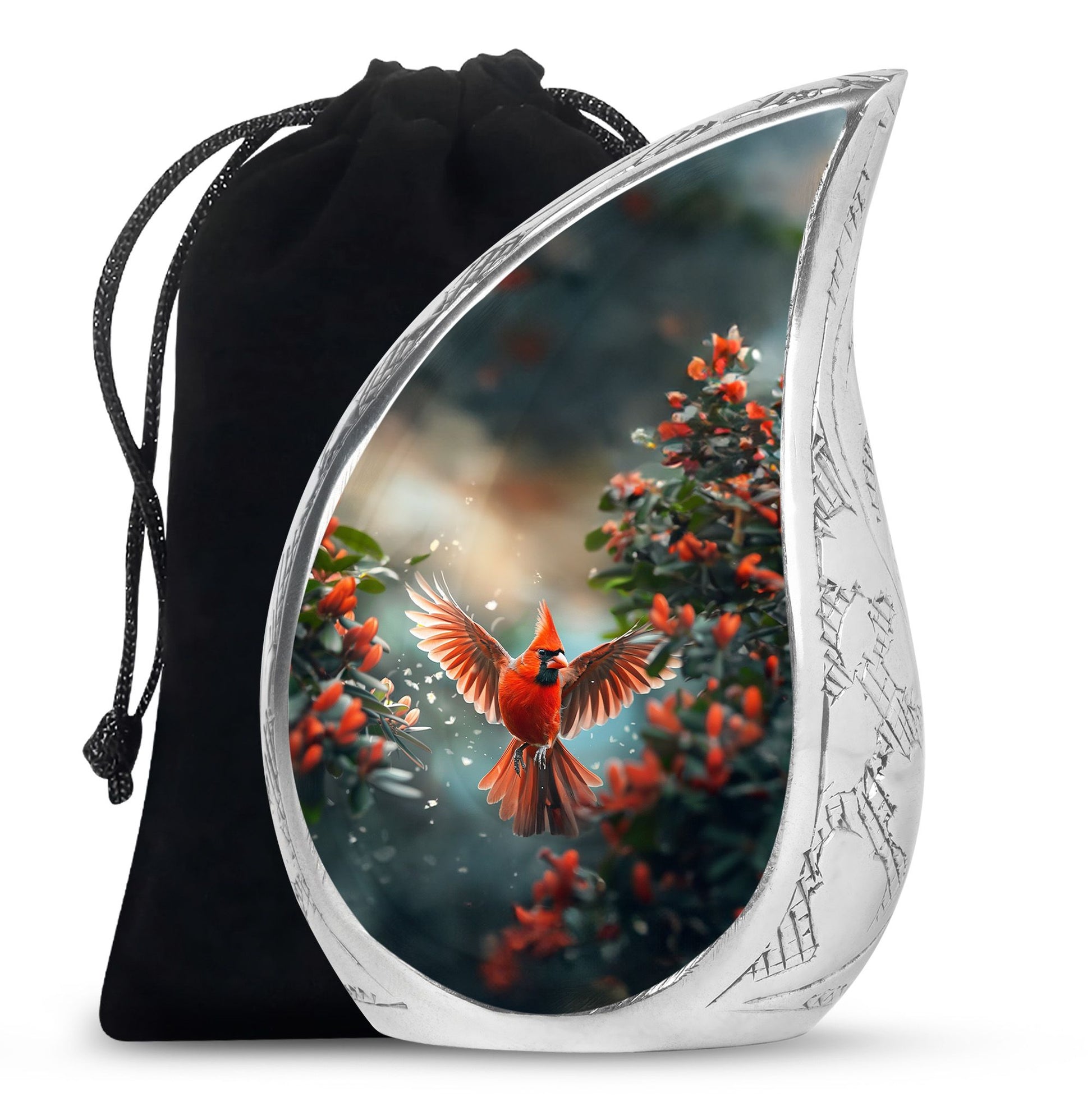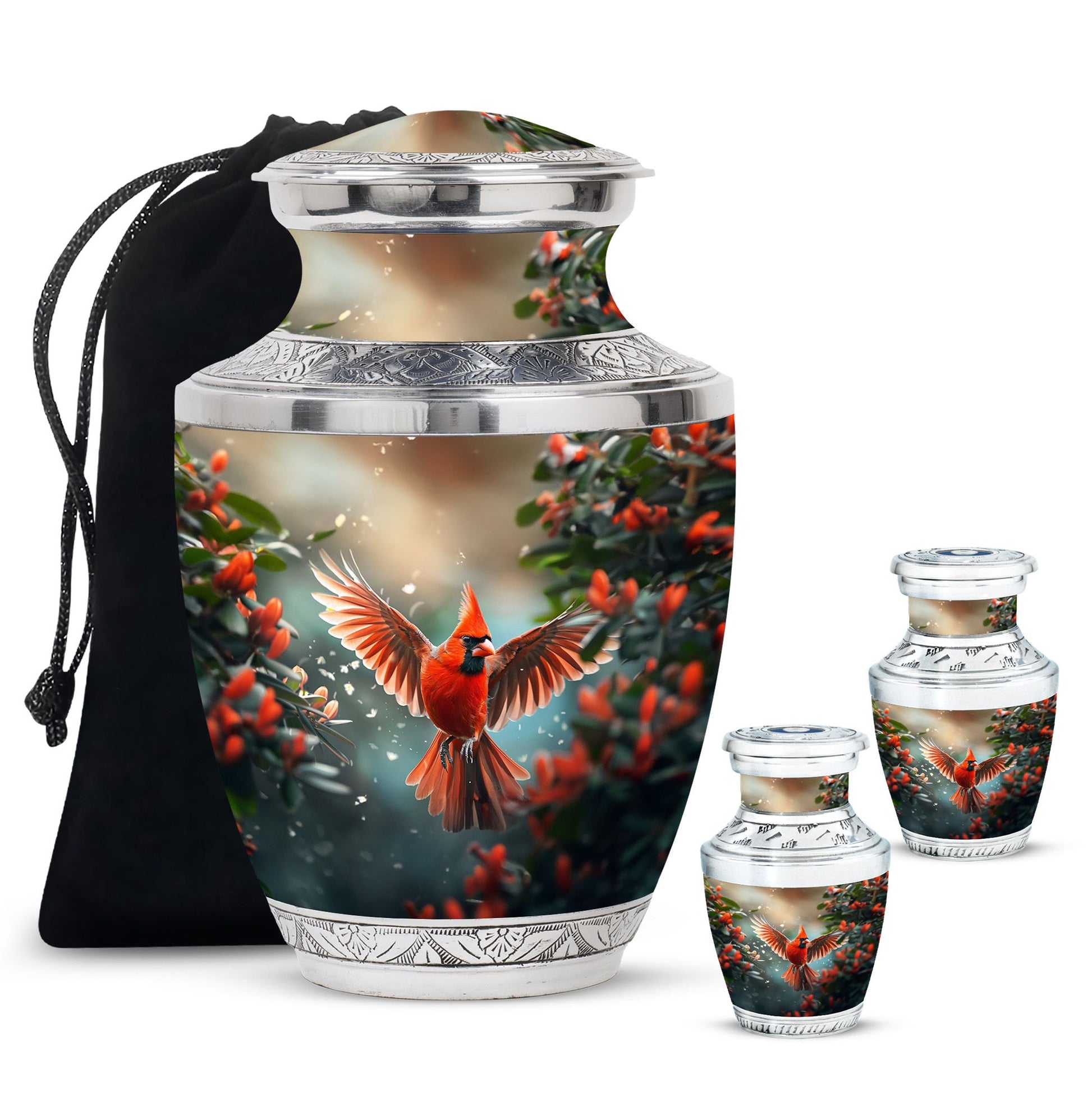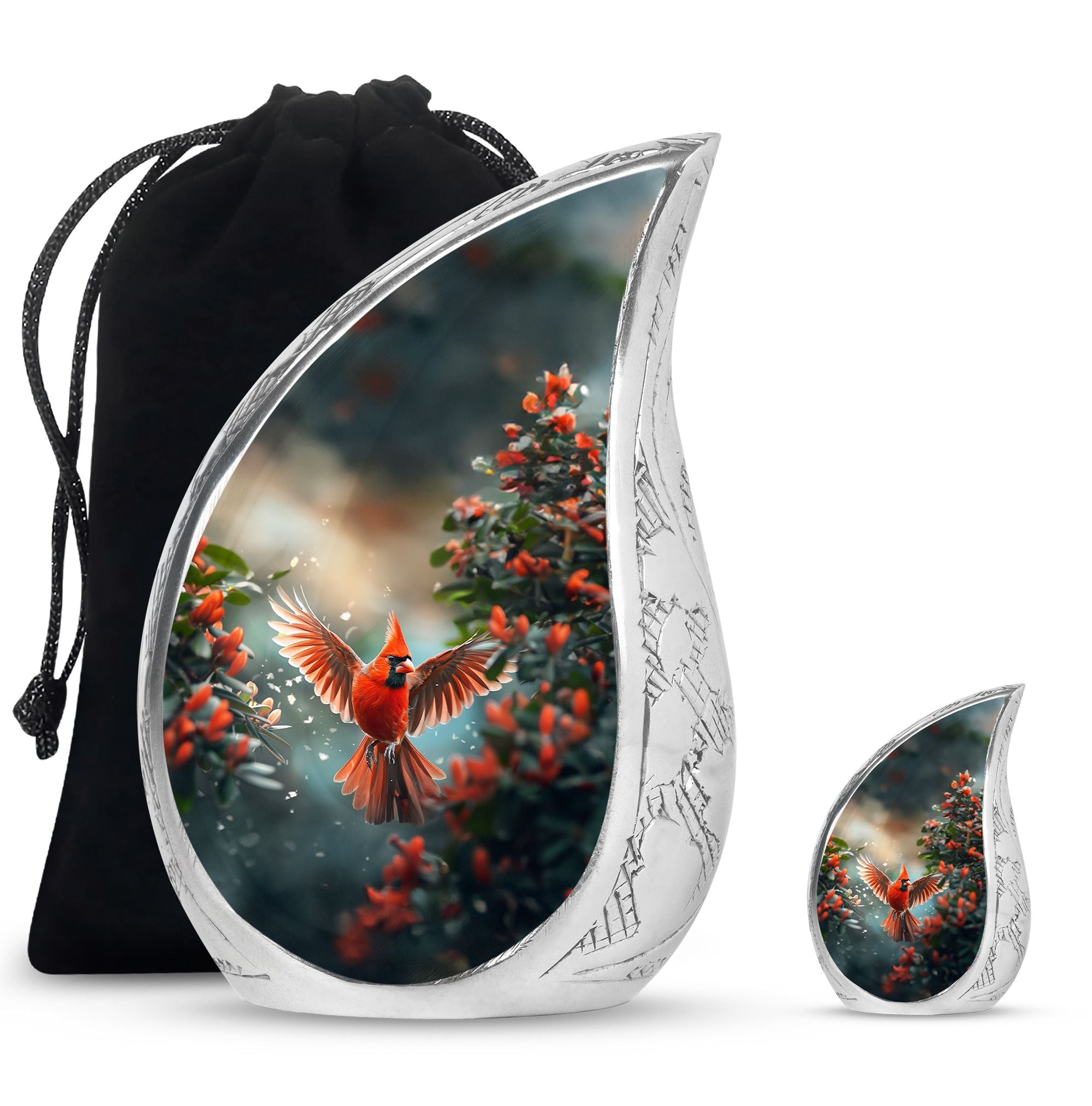 With its vibrant cardinal design, this urn symbolizes hope, love, and remembrance, creating a lasting memorial that brings comfort and peace.
