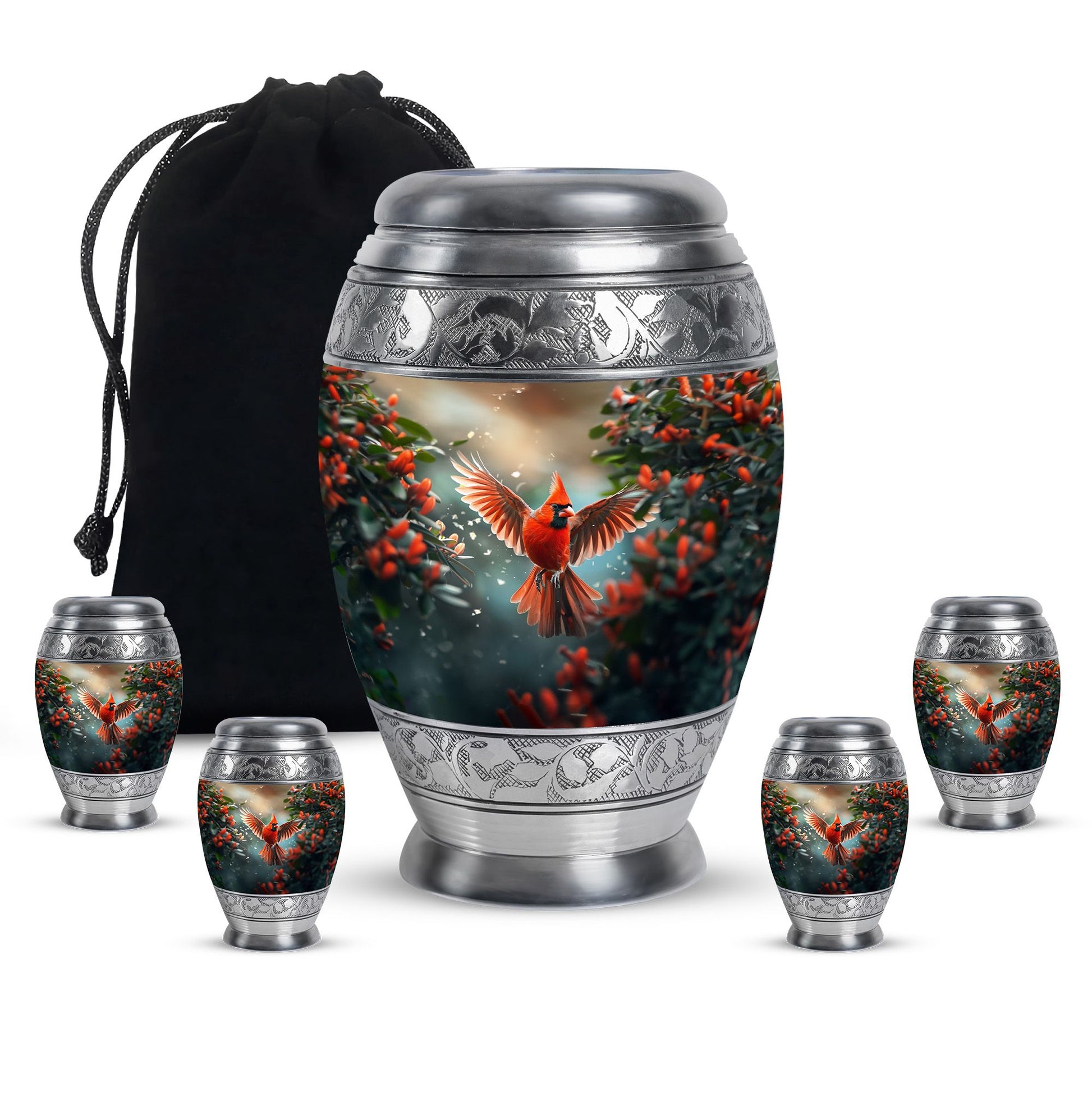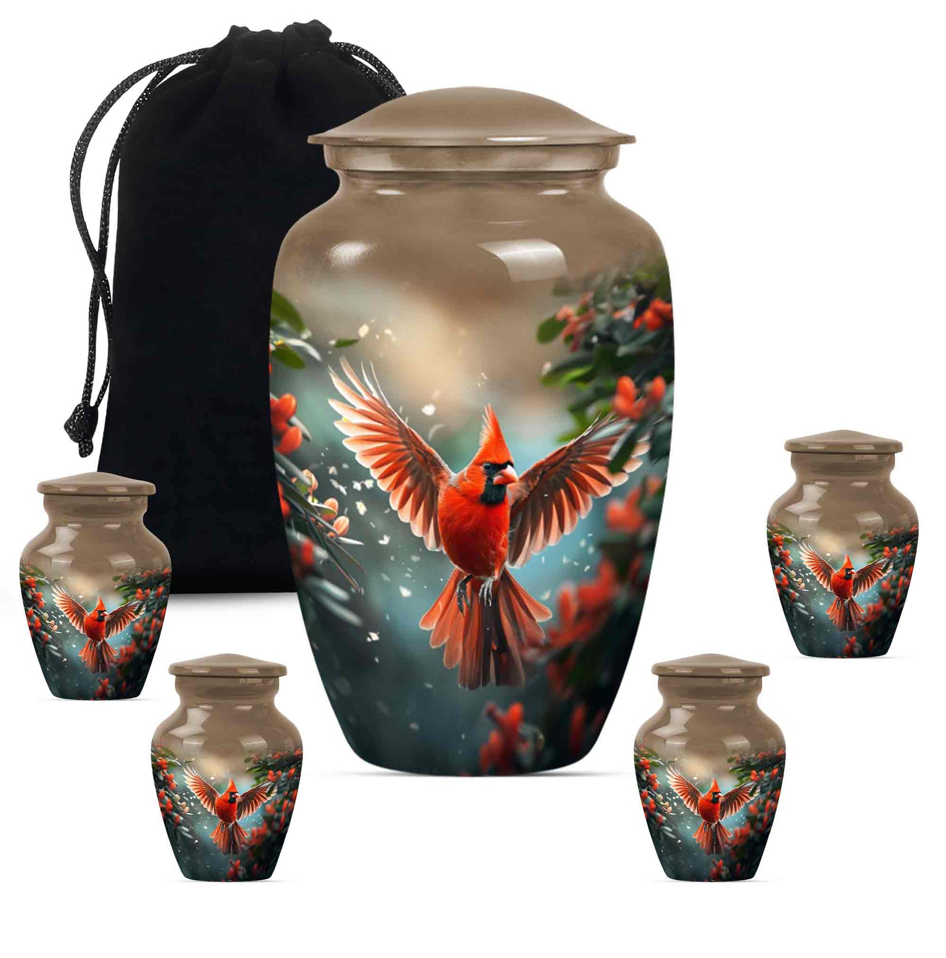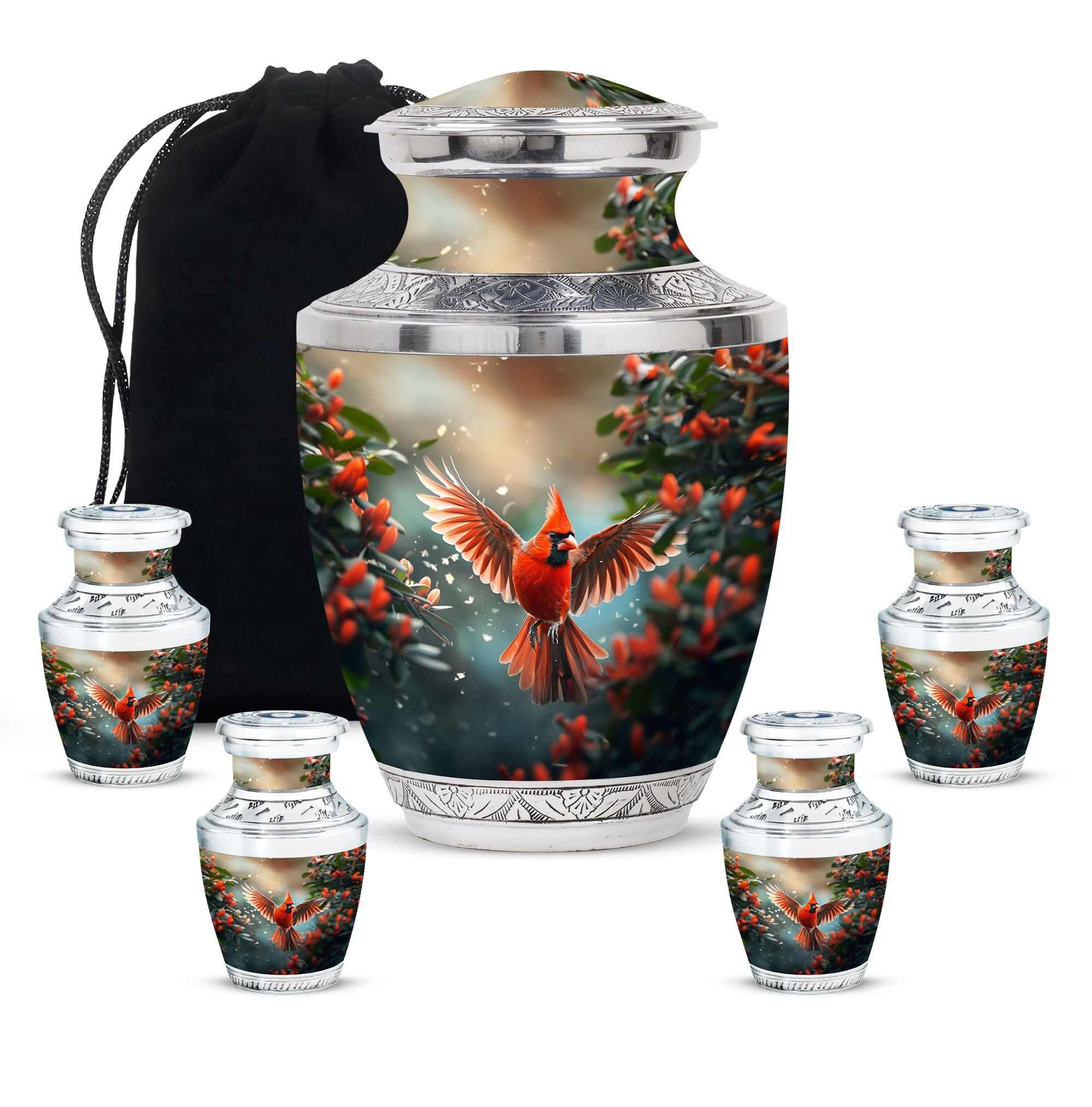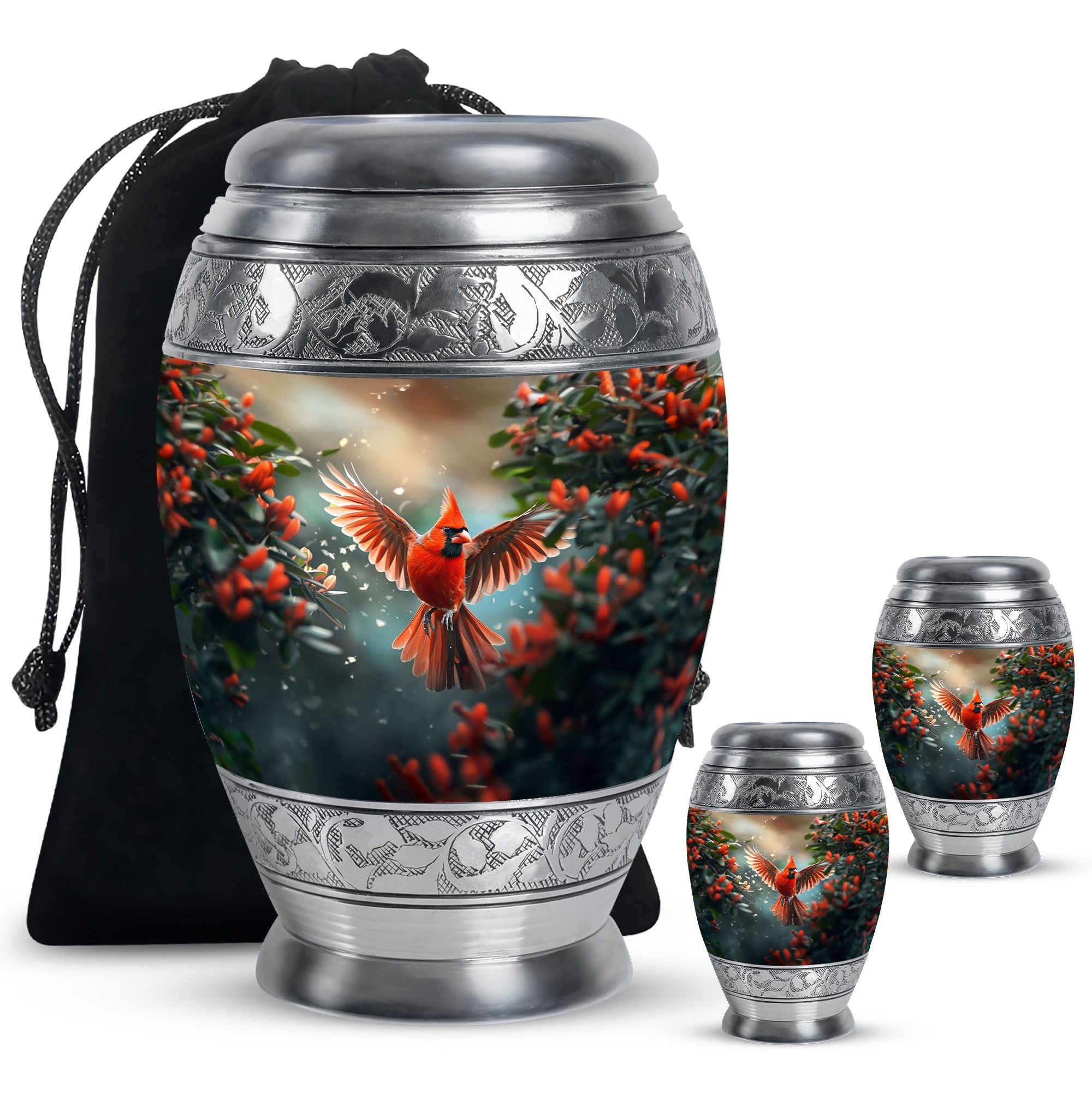 With its vibrant cardinal design, this urn symbolizes hope, love, and remembrance, creating a lasting memorial that brings comfort and peace.