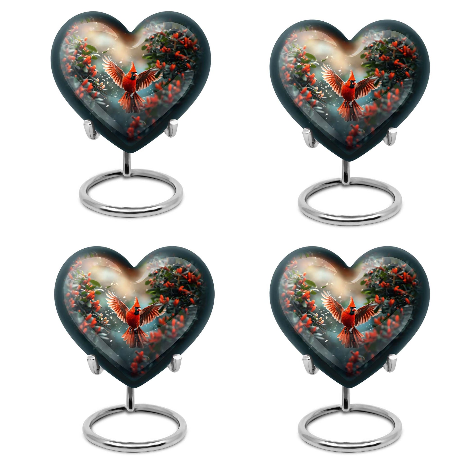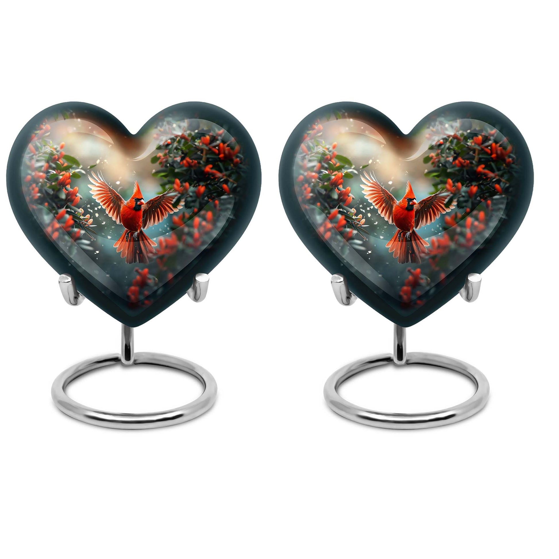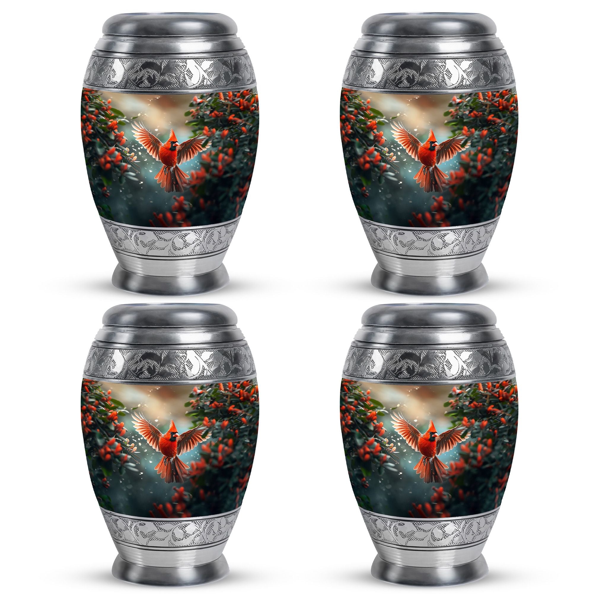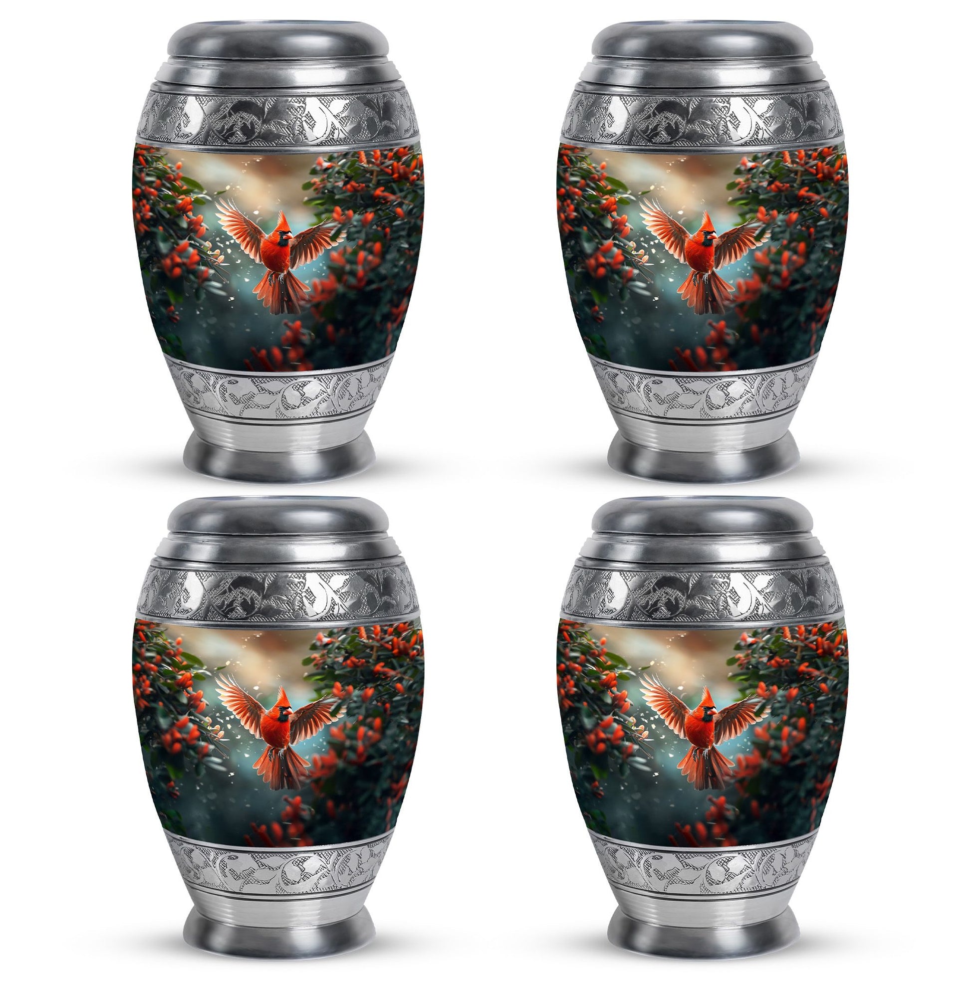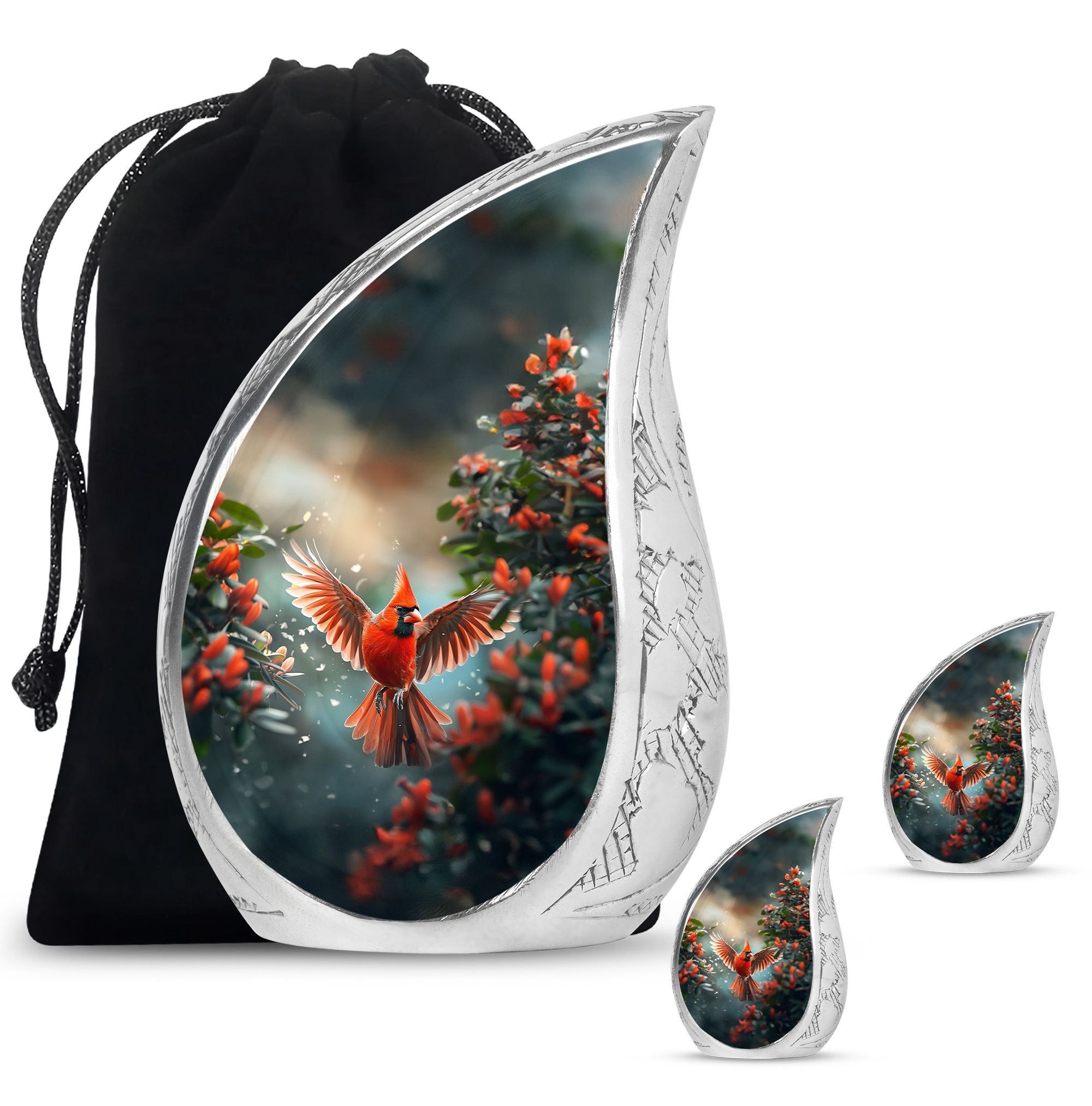 Crafted with care from durable aluminum, this urn features a vivid cardinal bird design and a secure screw-top lid. Its compact size makes it perfect as small urn for human ashes keepsake, small keepsake urn, or urns for ashes small keepsake. It is suitable for honoring parents, serving as small urns for human ashes keepsake dad or small urns for human ashes keepsake mom.