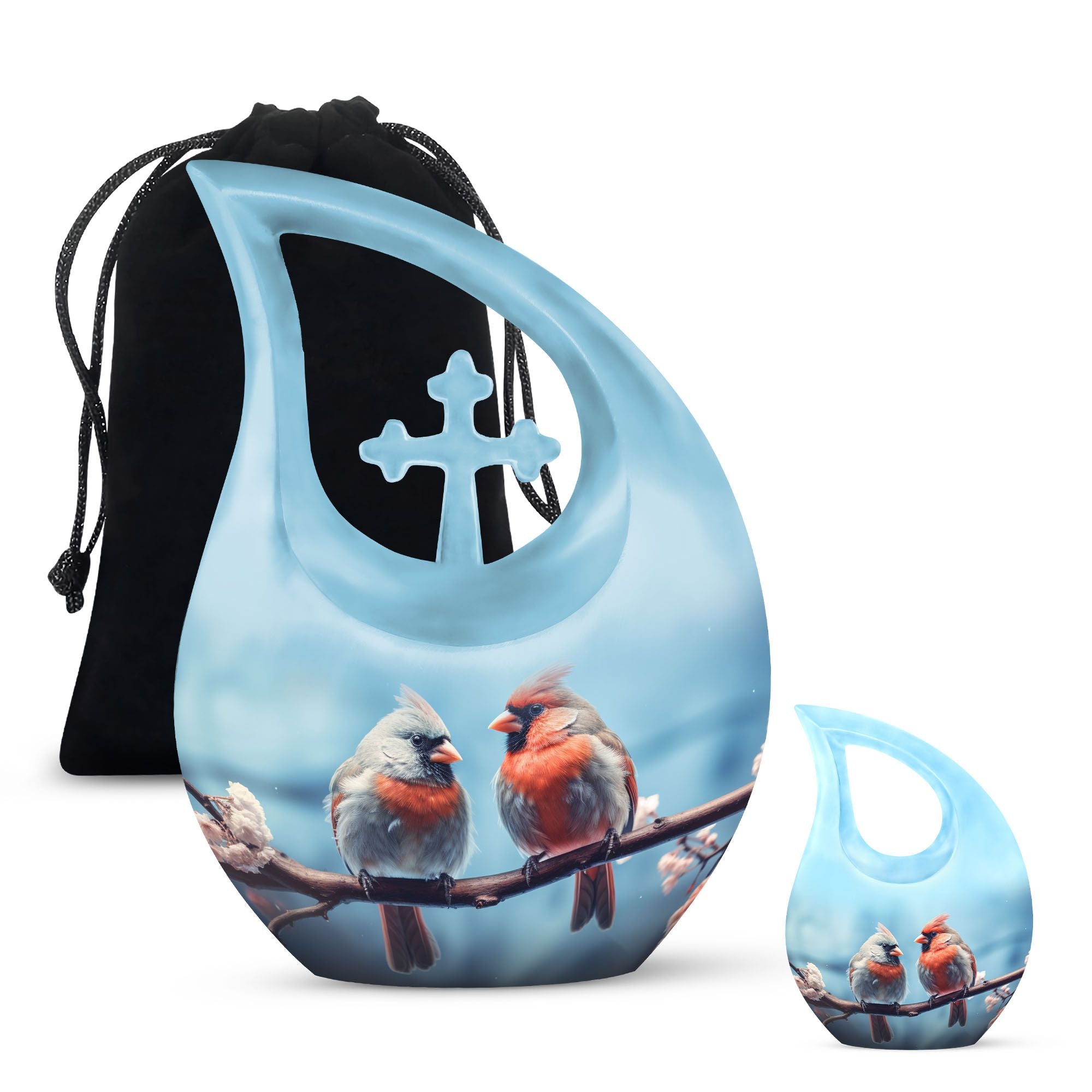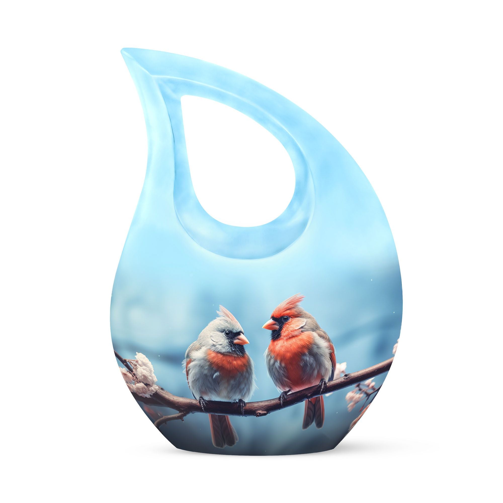 Celebrate eternal love and companionship with the Love Birds Urn for Memorial Ashes — a beautifully crafted cardinal bird urn symbolizing devotion and remembrance. This exquisite large urn human ashes design features a pair of cardinals resting together, representing lasting bonds and the continuation of love beyond life.