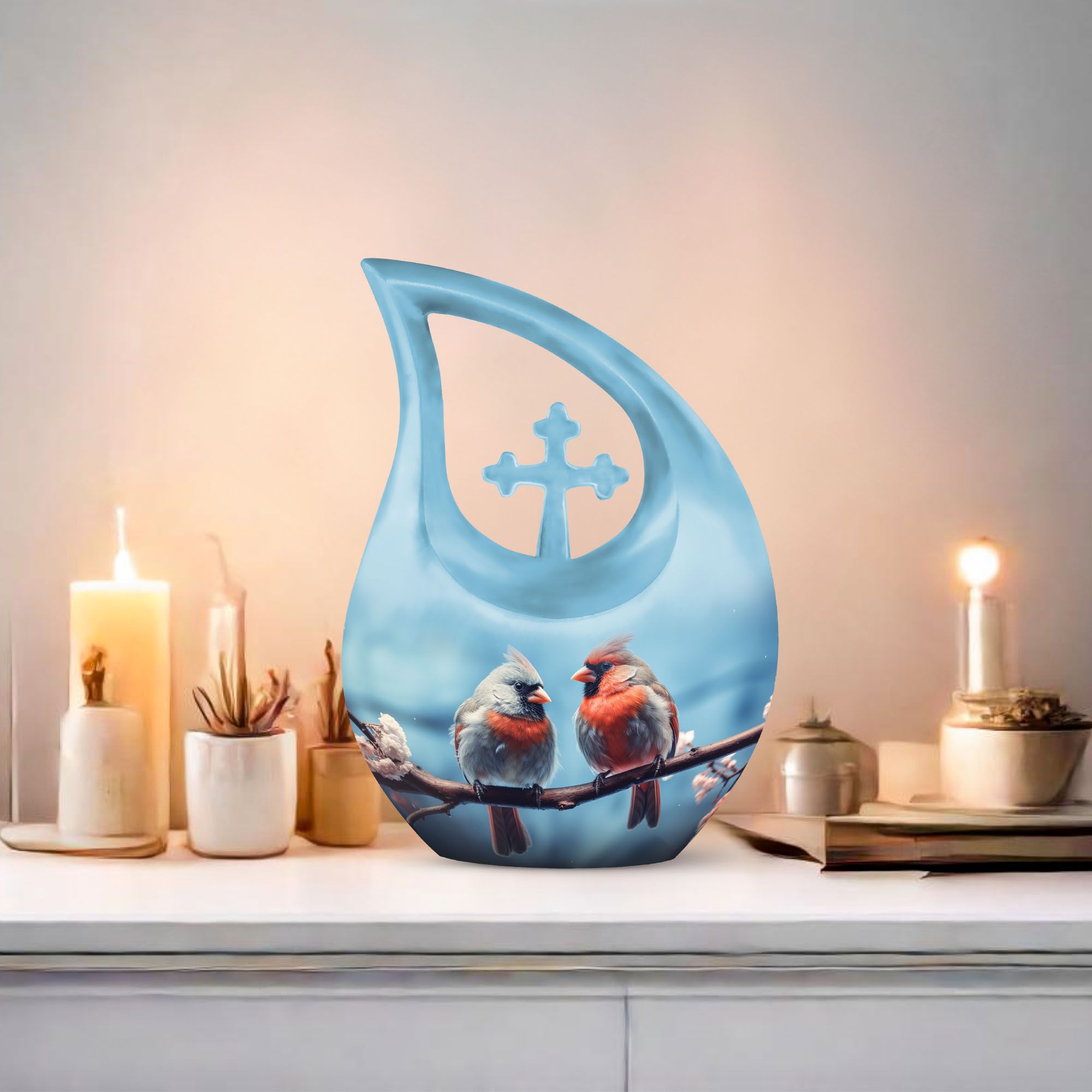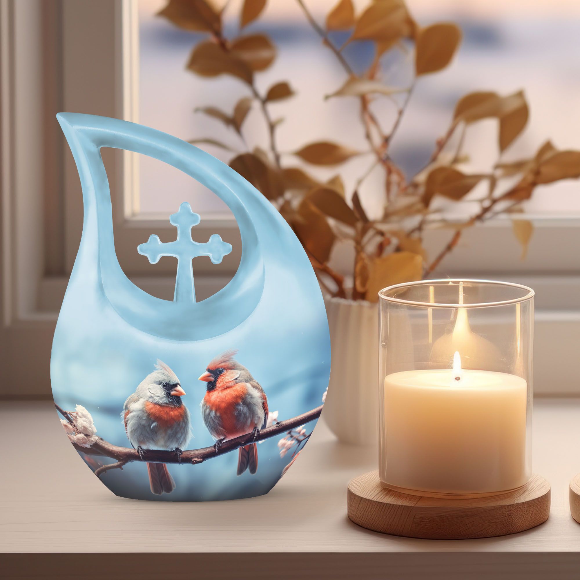 The Love Birds Cardinal Urn serves as a timeless symbol of enduring affection — a large urn human ashes keepsake that beautifully honors the love shared between partners, family, or dear friends.