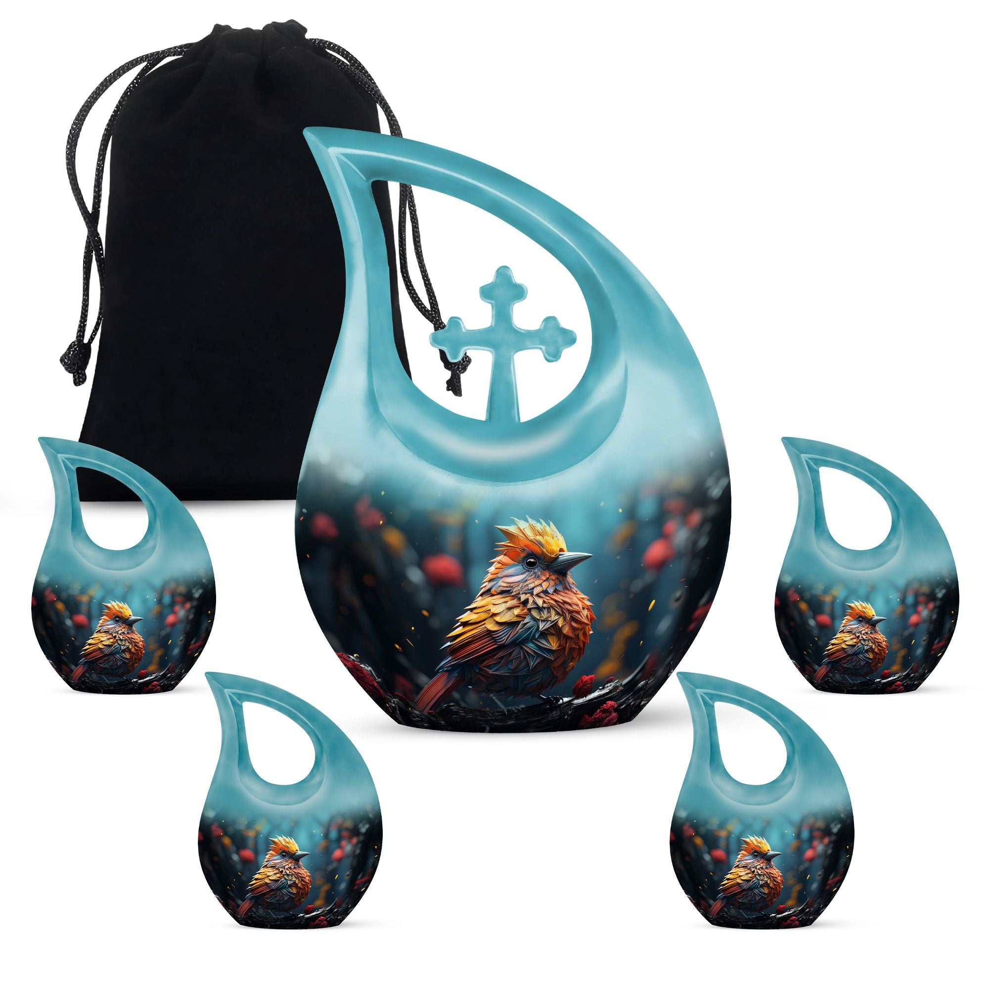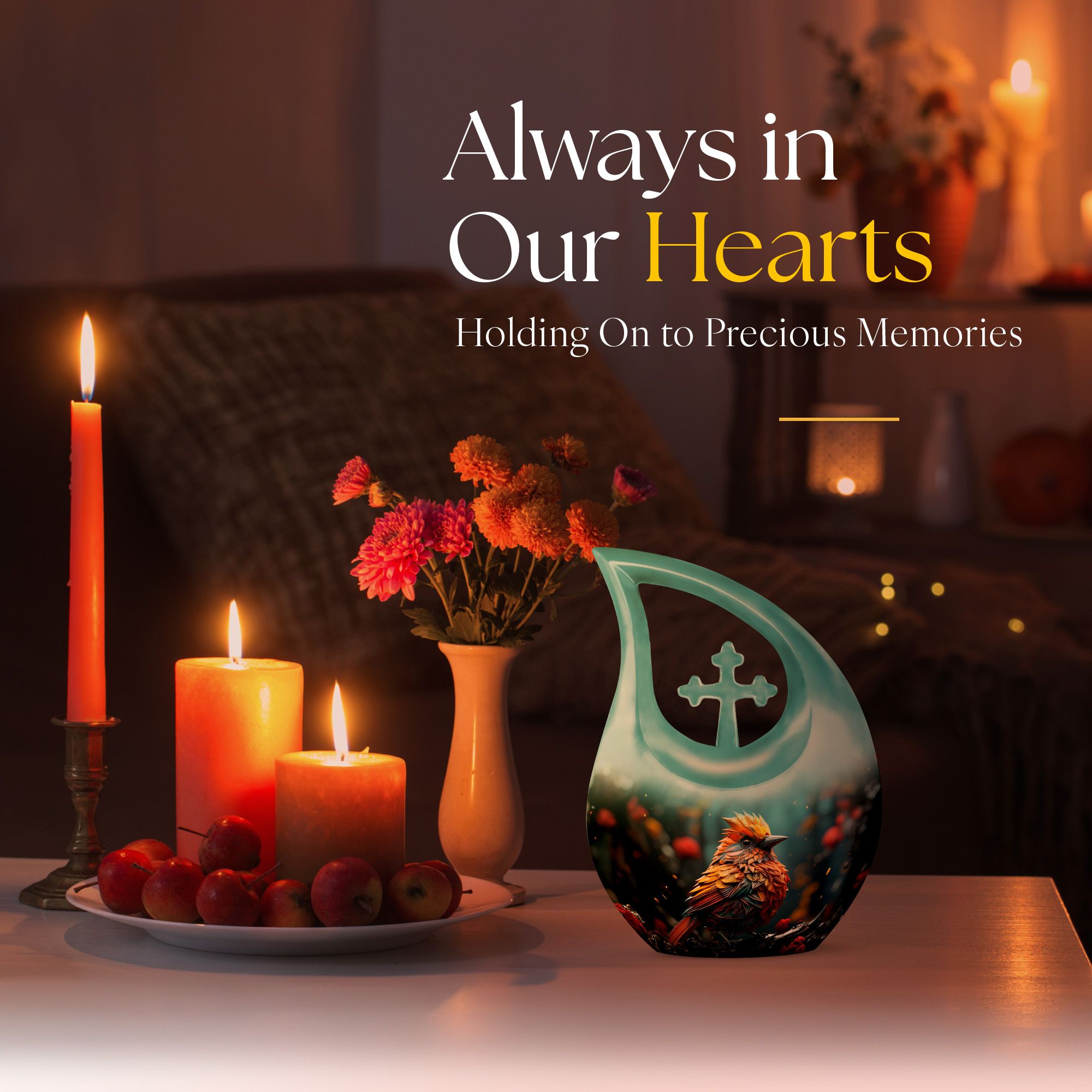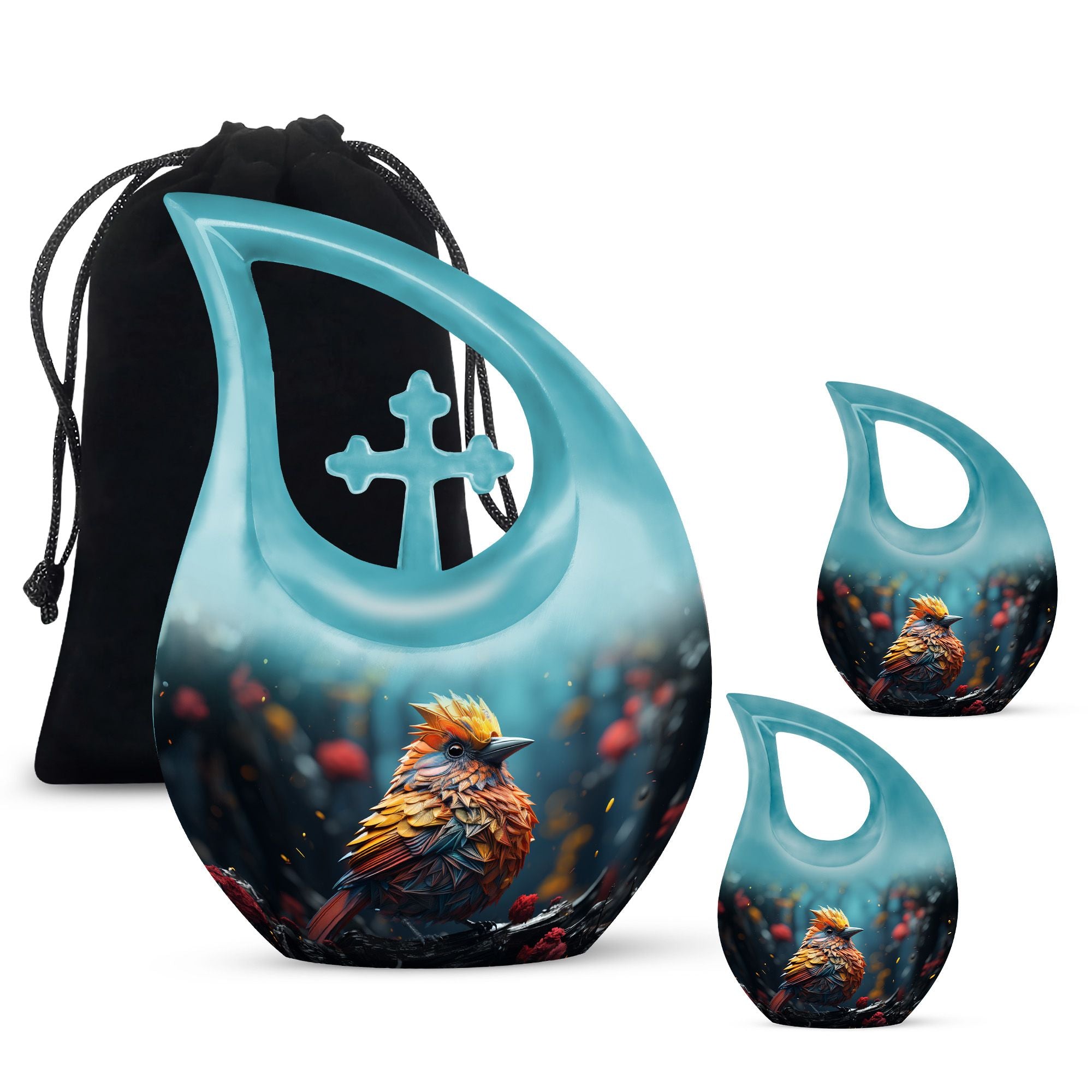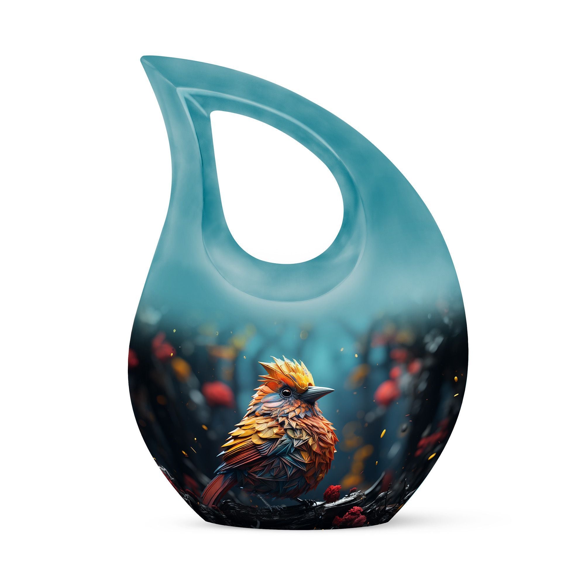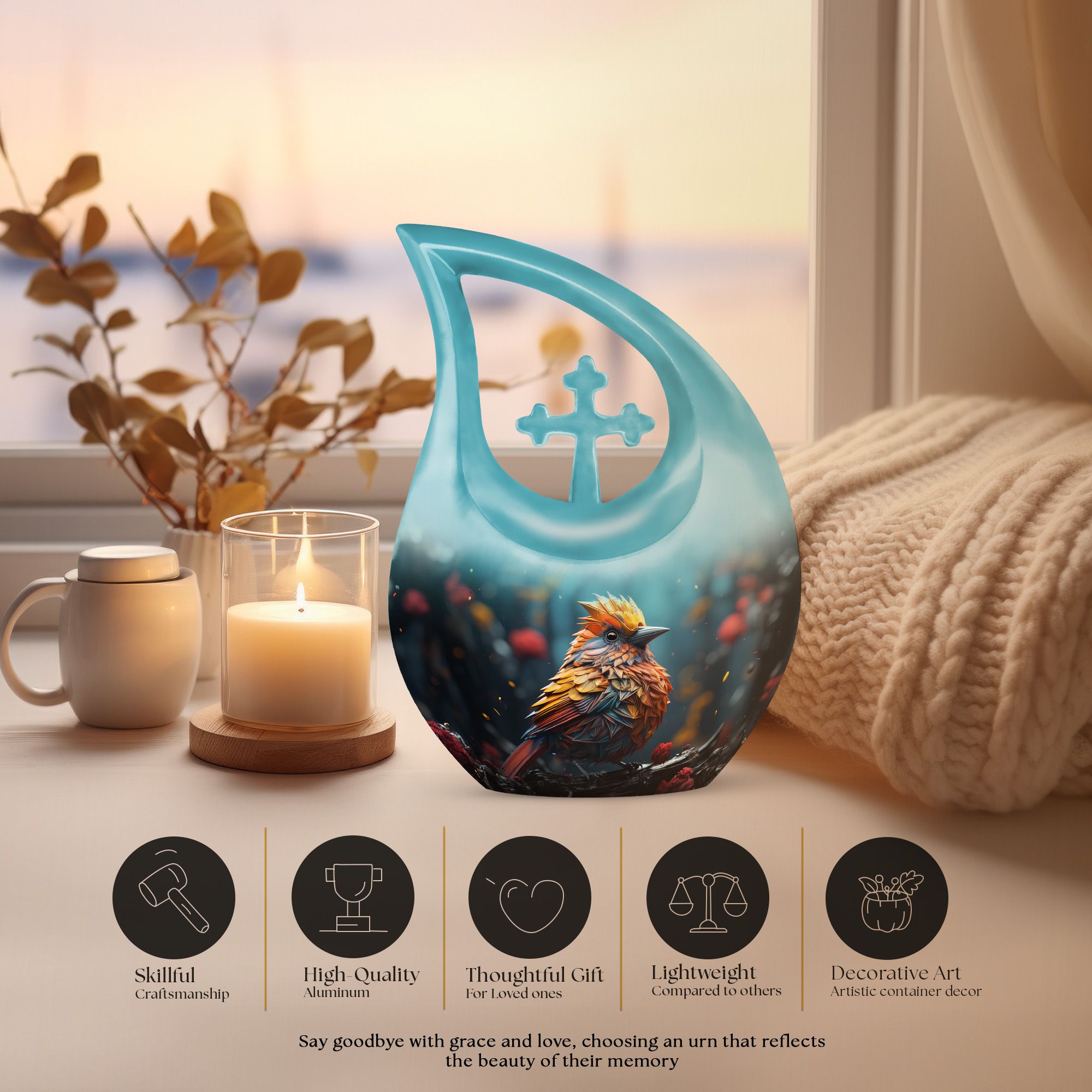 Honor the memory of a loved one with this captivating Cardinal Bird Urn. This 10-inch aluminium urn stands out with its unique 'Cross Drop' theme, resonating not just the beauty but also the freedom of a cardinal bird. Perfect for those in pursuit of affordable, yet symbolic memorial urns, this urn weighs a solid 3.3 pounds and can hold up to 200 cubic inches of ashes. Along with the urn, this package also includes a velvet pouch, a seemly containment for the ashes. But what sets this item apart is its ability to be personalized. Customize it with engraving to bear the name of your beloved departed, preserving their memory in the most intimate way. So, when thinking cremation urns or burial urns, consider this Cardinal Bird Urn—a perfect choice for a beautiful, lasting memorial.