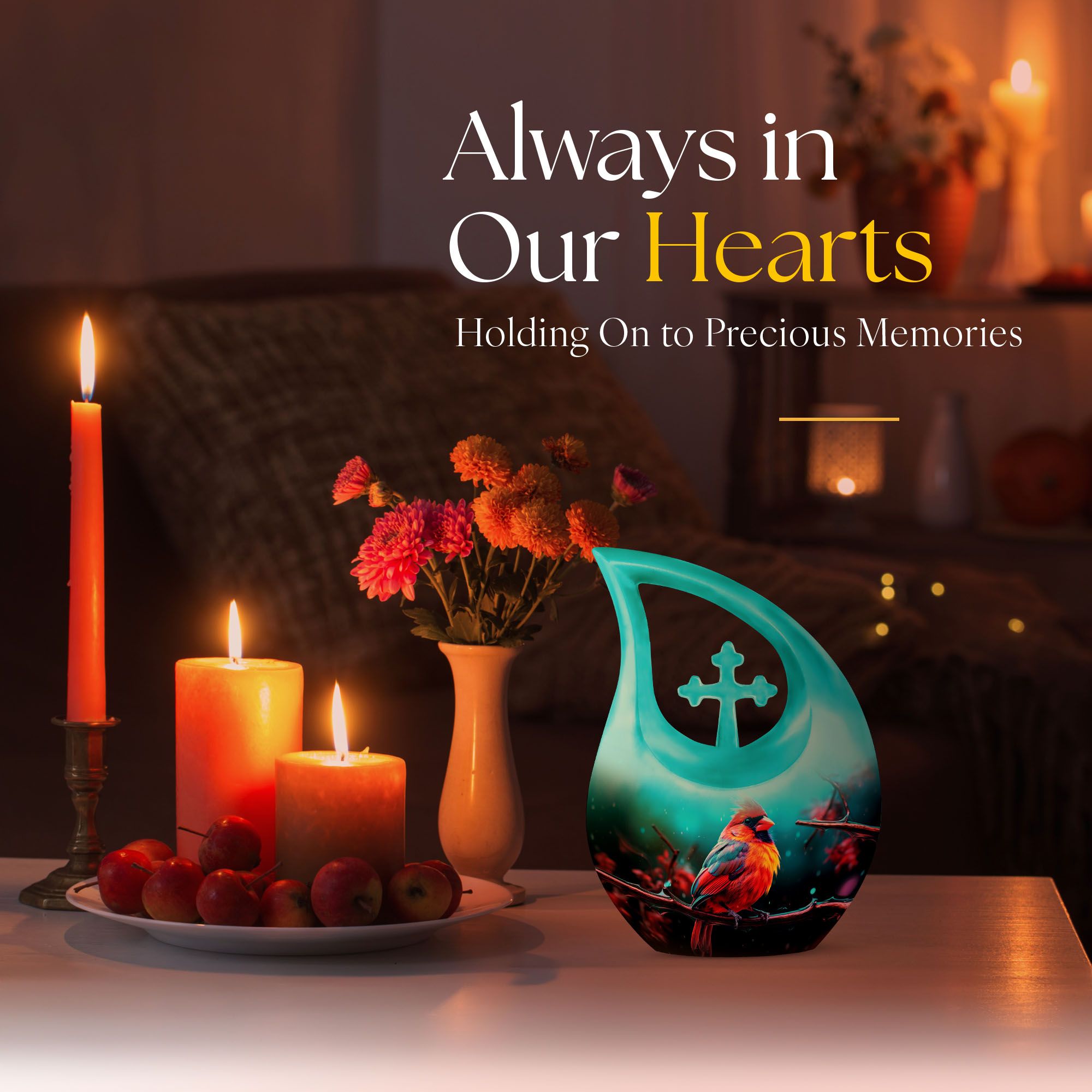 Let this cardinal memorial urn serve as a symbol of comfort and love — a reminder that every time a red bird appears, it carries the whisper of your loved one’s eternal presence.