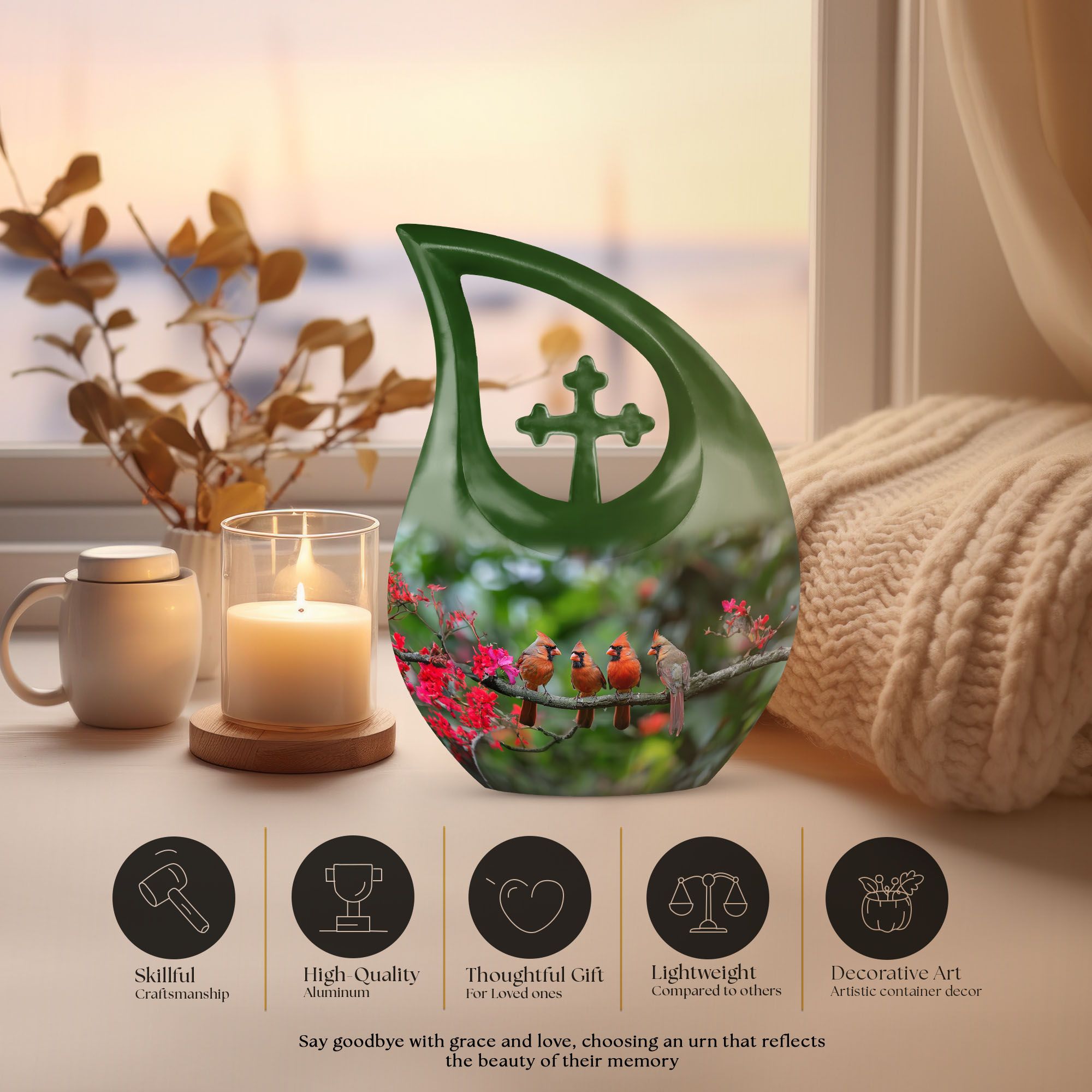 This Extra Large Cardinal Bird Memorial Urn offers a serene, meaningful resting place for honoring a cherished life. Its symbolic cardinal artwork brings warmth and presence, making it an ideal choice for families seeking unique urns for human ashes or unique urns for ashes with emotional significance.