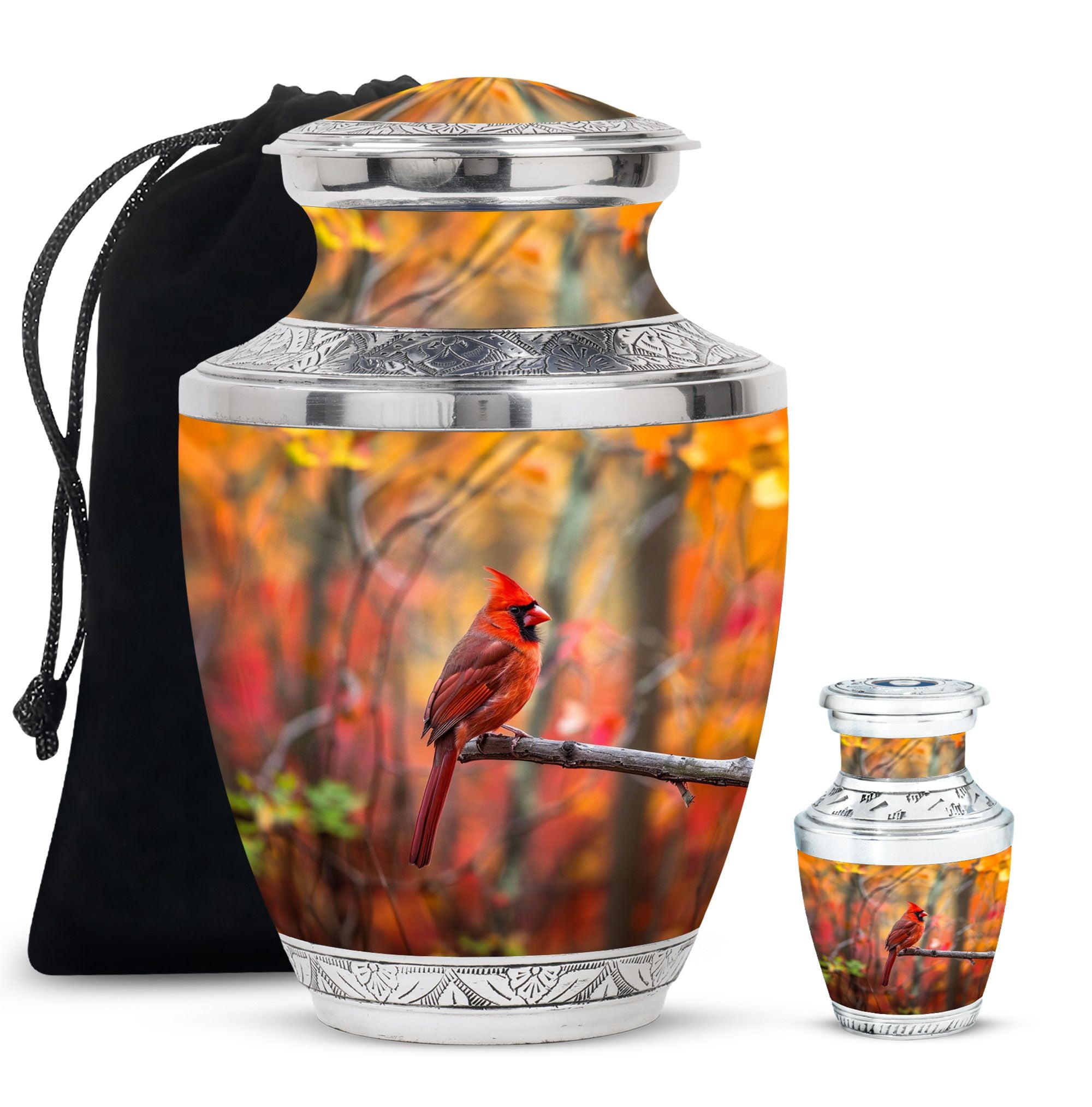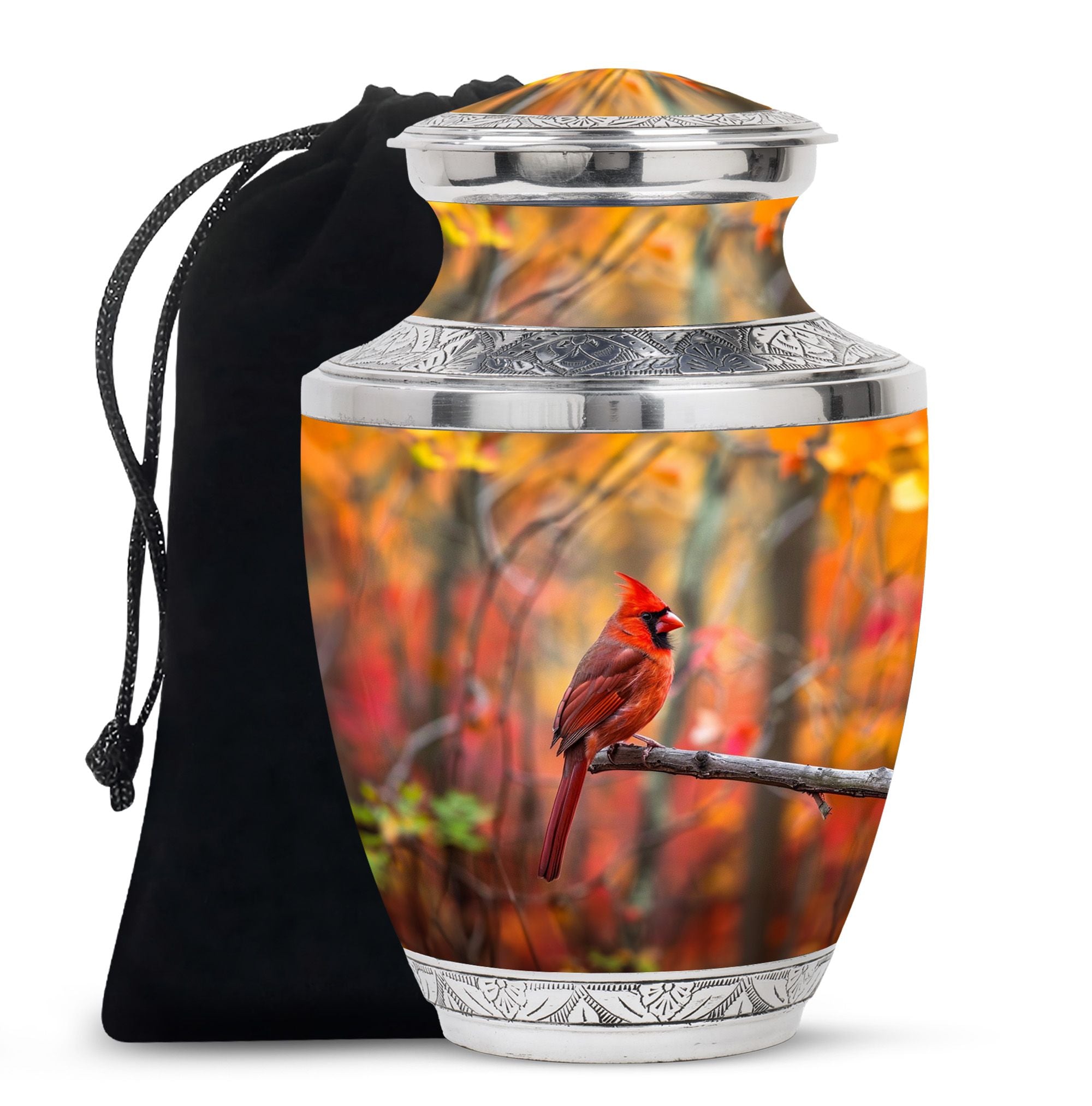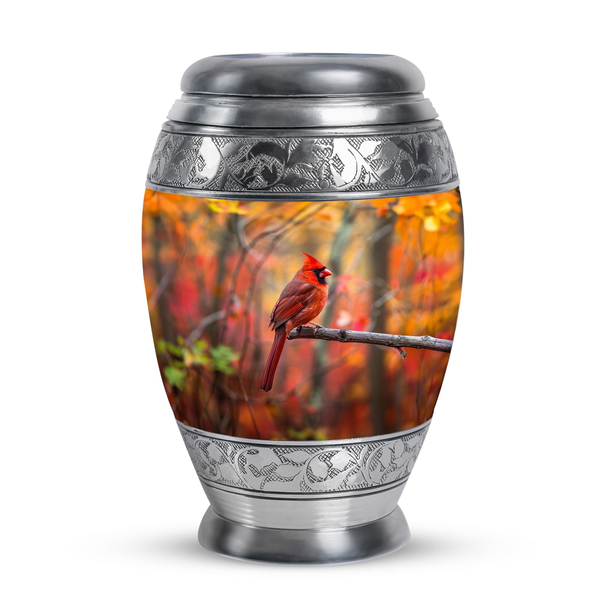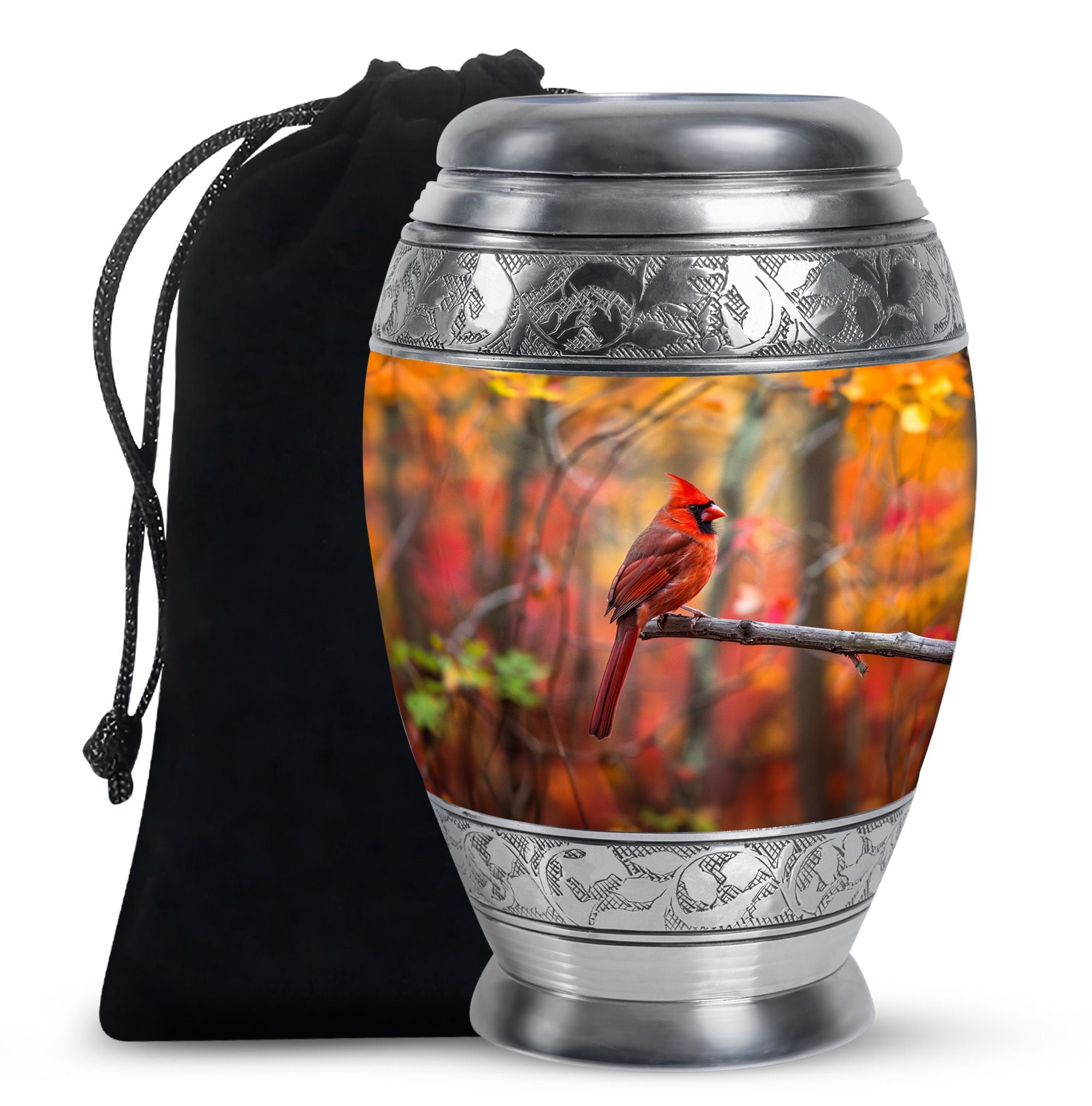 Crafted from durable aluminum, the urn features a vibrant red cardinal design with a secure screw-top lid for safe storage. Perfect as cremation urn for human, cremation urn adult human, or cremation urns for humans, it also works beautifully as small urns for human ashes keepsake or cremation urns for human ashes adult small. Its elegant craftsmanship ensures a lasting memorial suitable for display at home or burial.