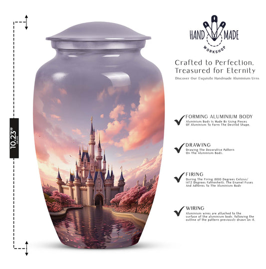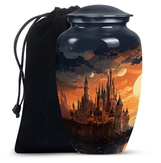 Crafted with artistry and care, each urn with castle design blends elegance with meaning, offering families a secure and dignified vessel for remembrance. Families often choose these urns because castles reflect both strength and sanctuary, embodying the eternal bond of family and the protection of cherished memories.