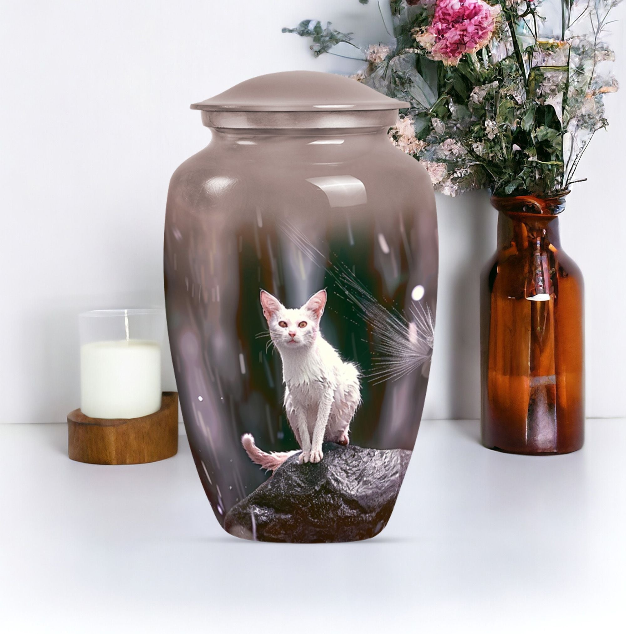 Abstract White Cat Memorial Urn, Tribute for Loved Ones