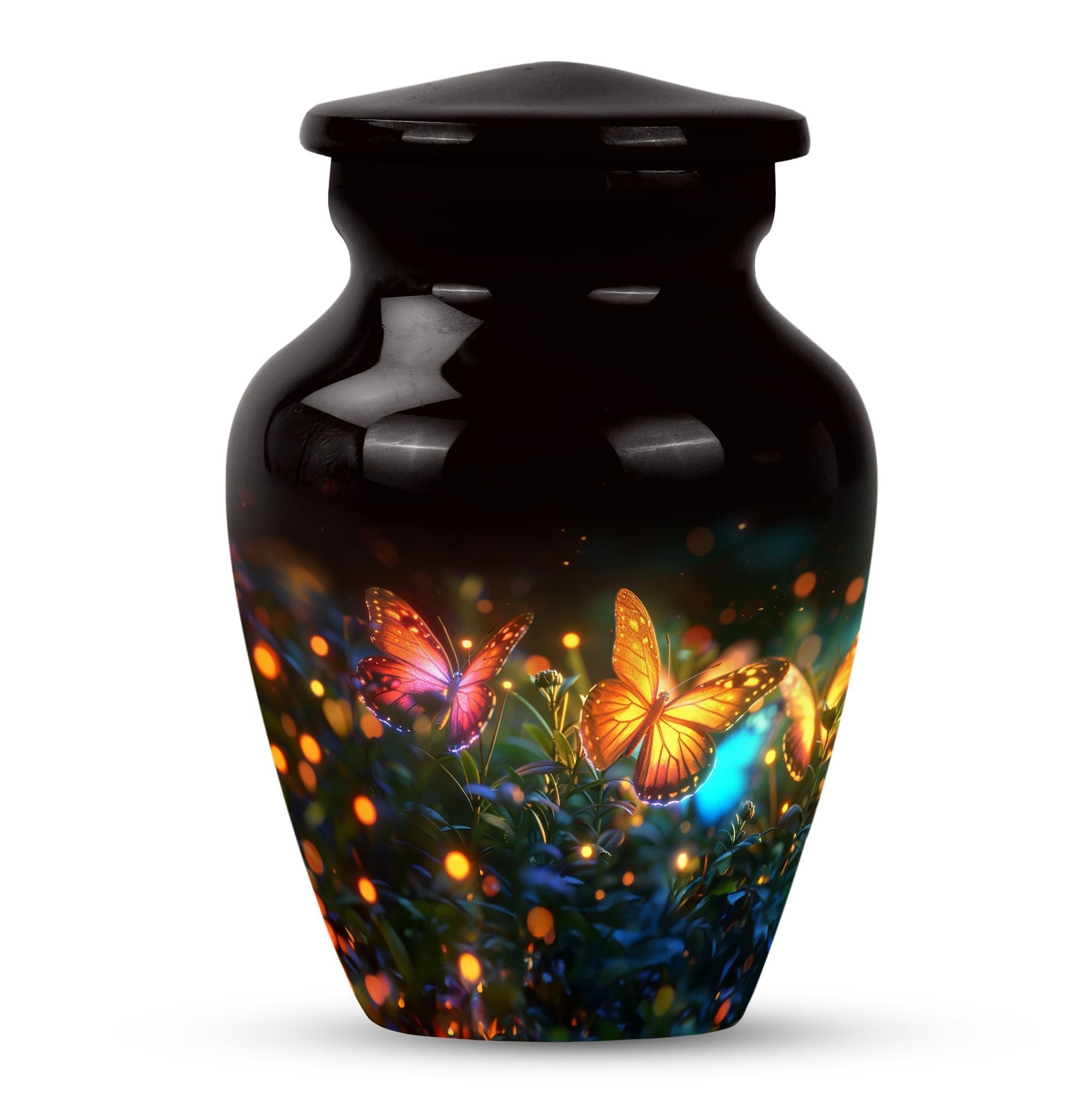 Bring grace and dignity to your beloved's last journey with this meticulously crafted butterfly urn. This large urn, built robustly from aluminium, has a weight of 3.3 pounds, standing at 10 inches in height and can contain up to 200 cubic inches of ash. Complete with a velvet pouch for respectful containment, this urn is classy and serene, reflecting the theme of peaceful continuation. Our burial urn is designed for adult females, but it equally serves as a respectful resting place for adult men as a cremation urn. You also have the opportunity to personalize this abstract piece with engraved names, adding a personal touch to this memorial gift. This urn is not just a funeral necessity but a memento of love and life well lived. It is more than just an urn; it's a testament to a life's worth of memories. Remember your loved one with this unique, memorable and intimately personal item. With keywords like 'butterfly urn', 'burial urns for adult female', 'memorial urns', 'burial funeral urns for adult women', 'cremation urn funeral urn adult ash', 'memorial gift' and 'metal urn for ashes adult male', it is easy to find us online and make your purchase stress-free.
