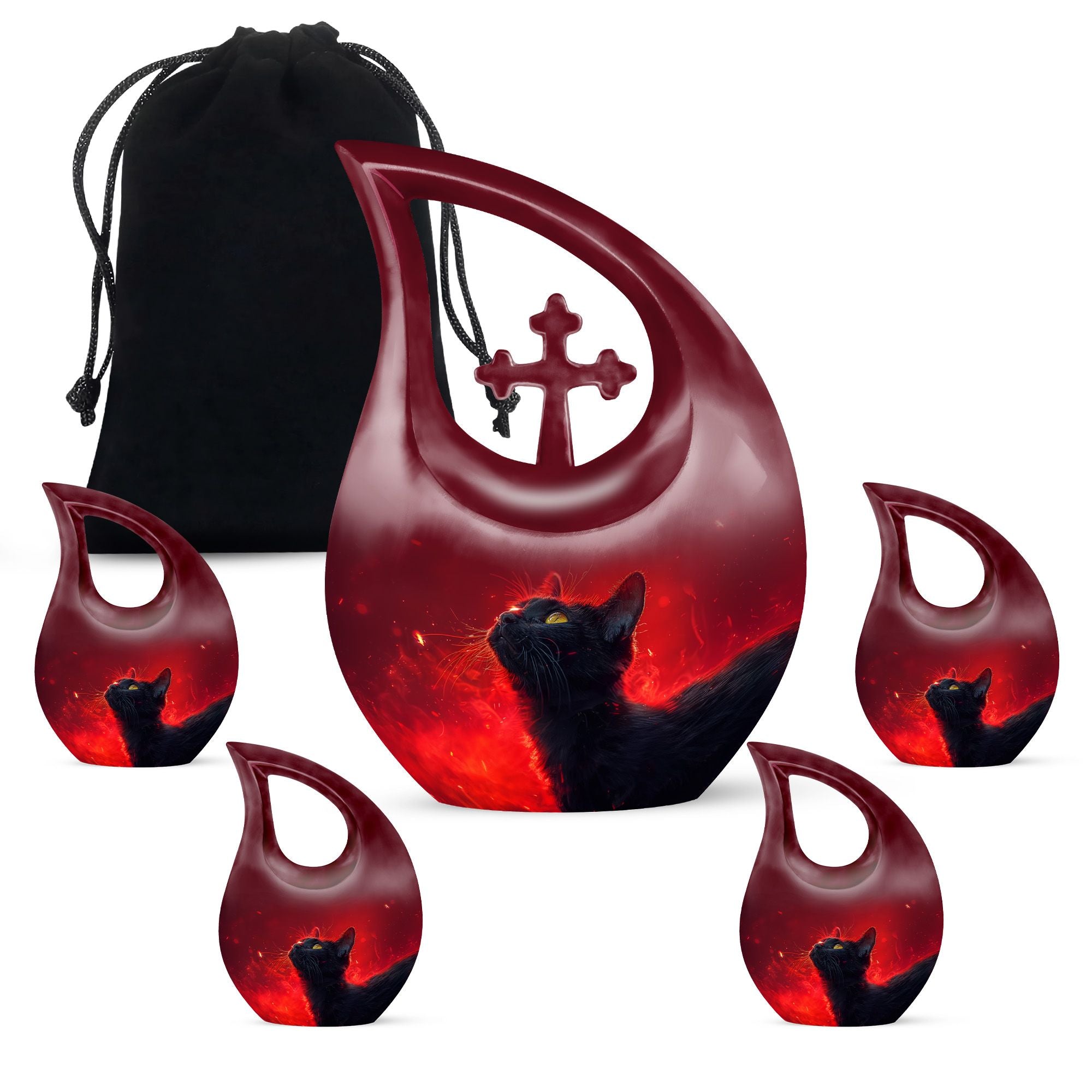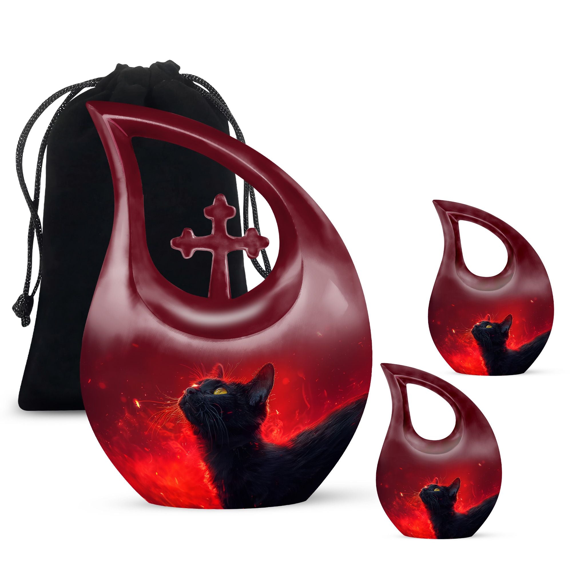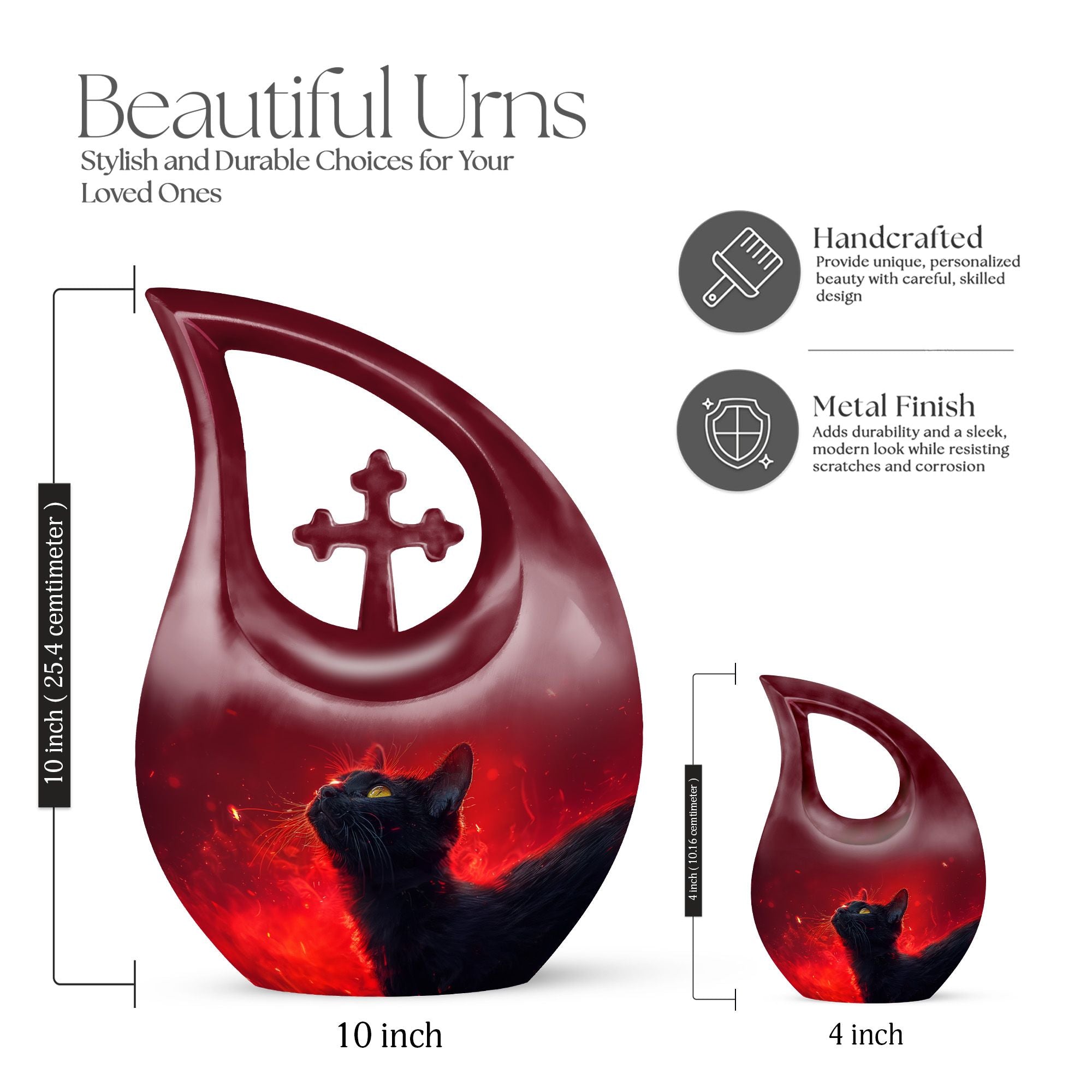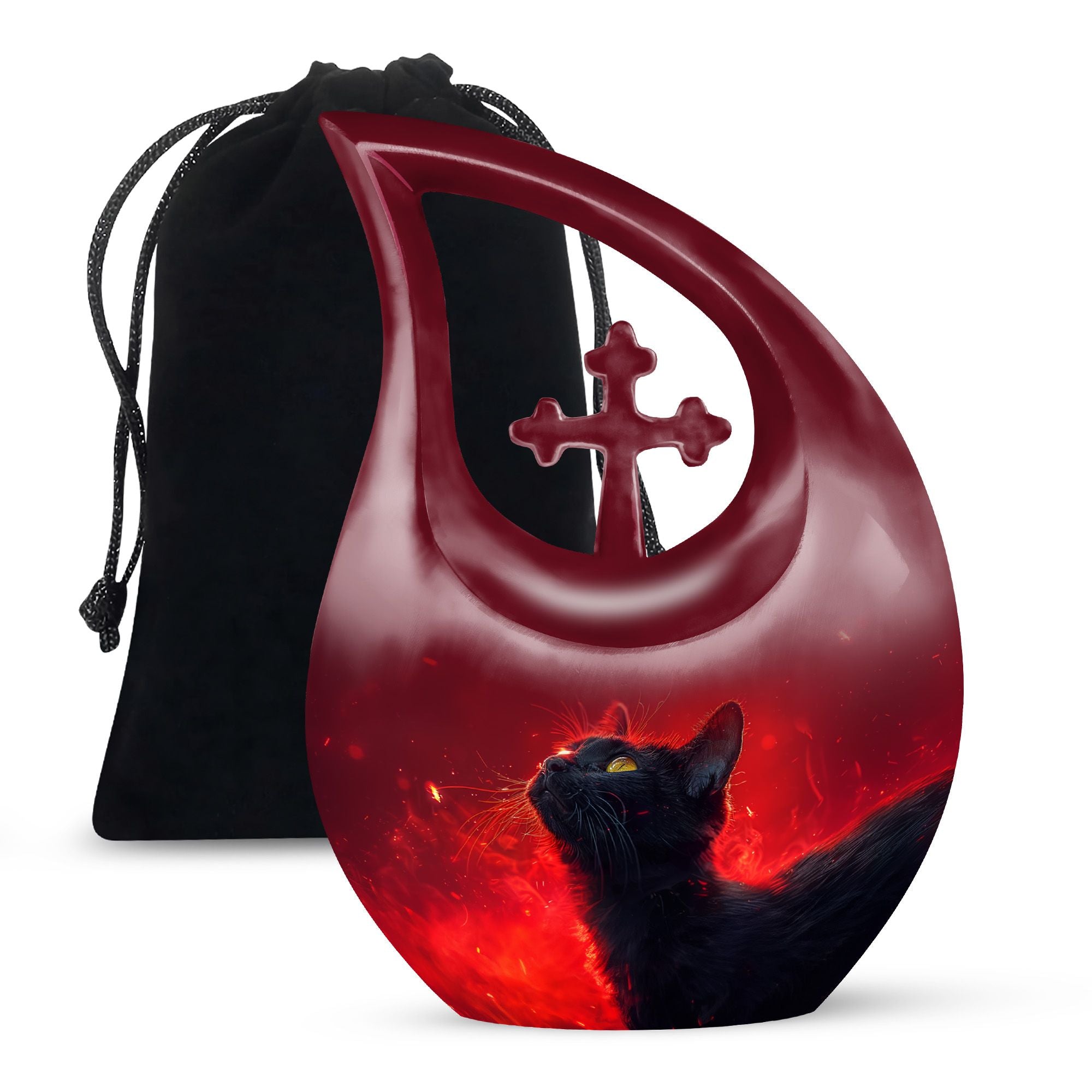 Gracefully honor the memory of a loved one with the Cross Drop Cat Urn. Carefully crafted from top-quality aluminium, this large urn is both durable and elegant, making it the perfect vessel to safeguard precious memorial ashes. Its significant 200 cubic inches capacity ensures ample room for human ashes, including those of larger adults or seniors. Its impressive 10-inch height along with its substantial weight of 3.3 pounds underscores its excellent craftsmanship. This urn comes with a soft velvet pouch, allowing for sought-after discretion and secure containment of ashes. Make it even more special by personalizing your Cat urn with engraved names, a heartfelt remembrance in your times of quiet reflection. In addition, key search terms related to this product include memorial urns, small urns for human ashes, keepsake urns for human ashes, urns for cremation ashes, or biodegradable urn. This urn encapsulates the warmth and affection of your lost loved ones, making it a cherished memorabilia.