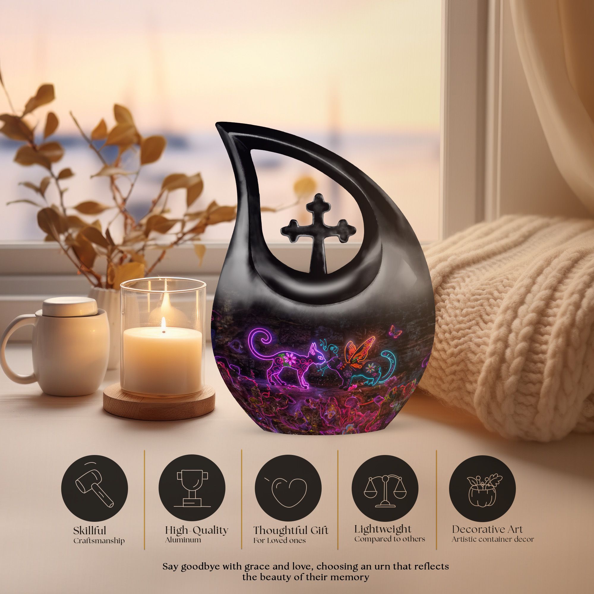Beautifully crafted with detailed cat artwork, this urn symbolizes loyalty, companionship, and enduring love. Its strong aluminium construction ensures dependable protection, making it a meaningful choice among large cremation urns, large urns for human ashes adult female, and urns for ashes adult male large. With its generous size and secure lid, it serves gracefully as an urn for ashes large, a large human ashes urn, or a large urn for human ashes suited for long-term display or burial. Families seeking urns for human ashes large adult will appreciate its balanced blend of elegance and durability.