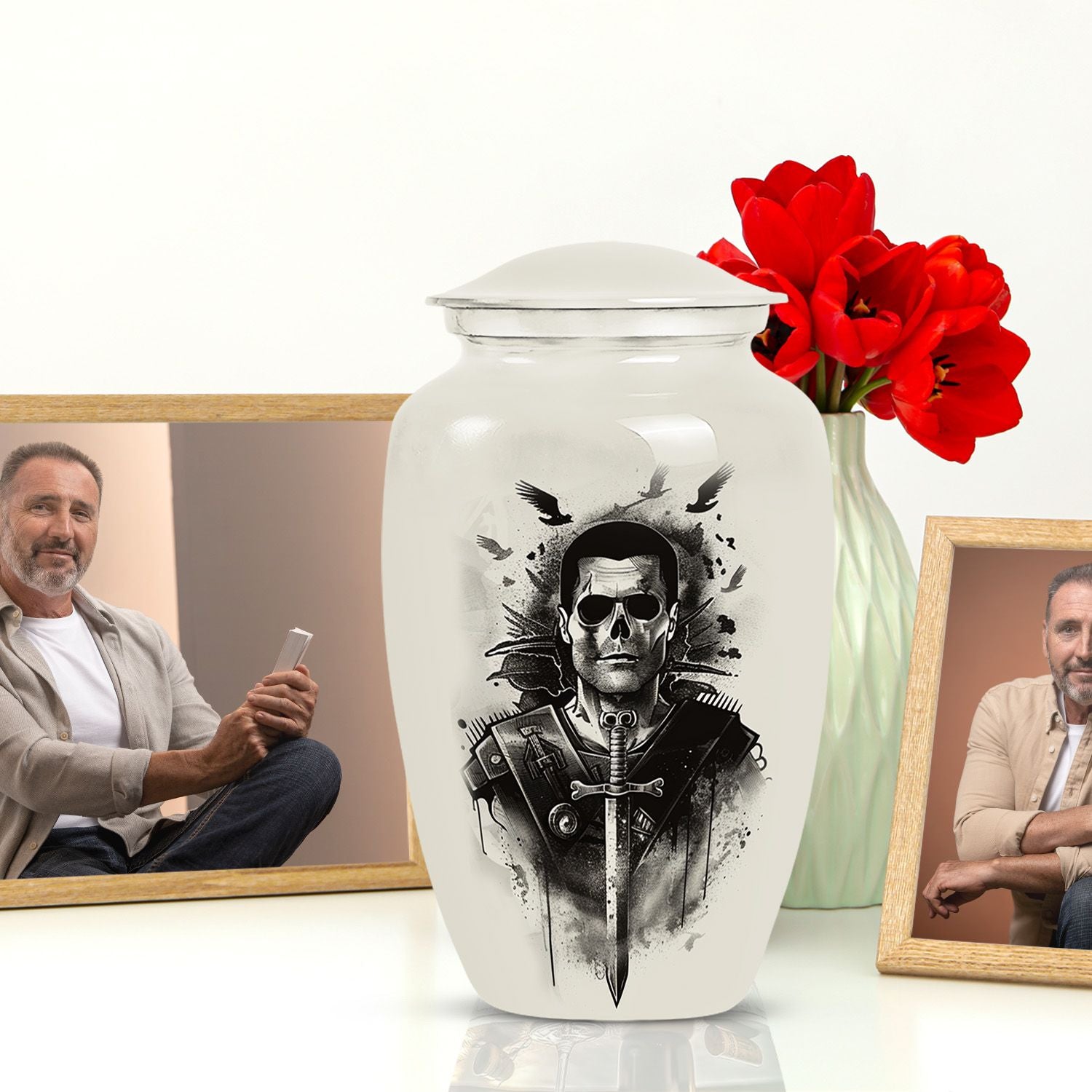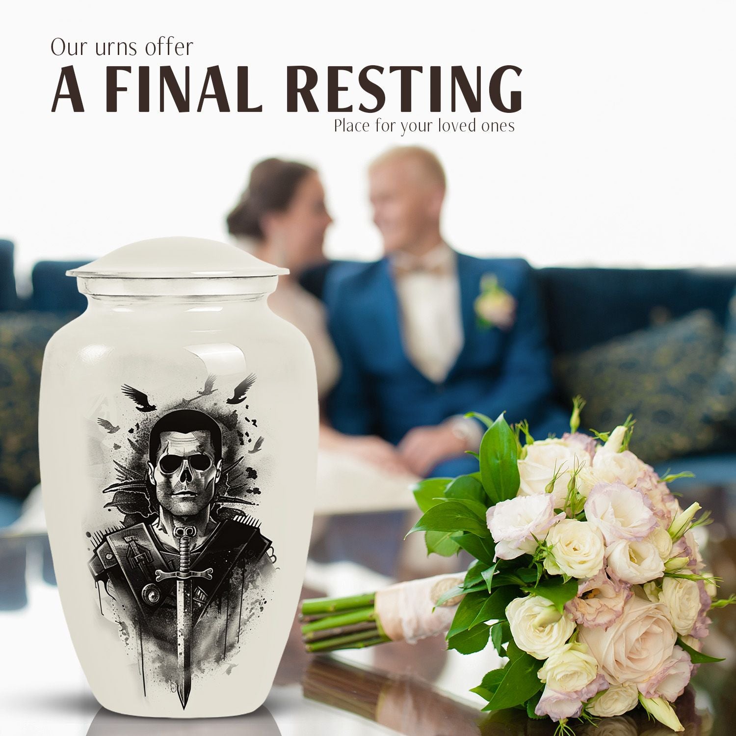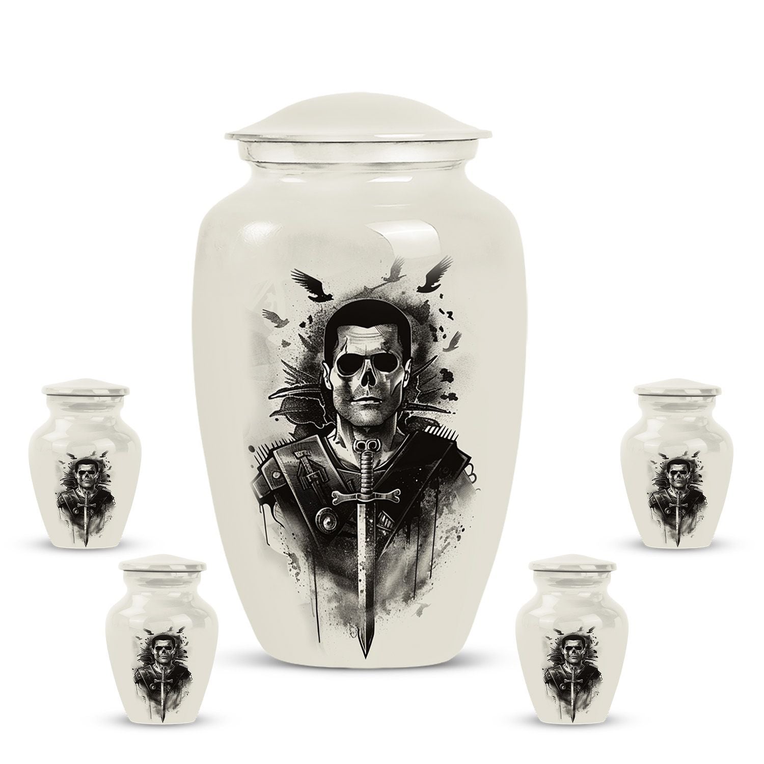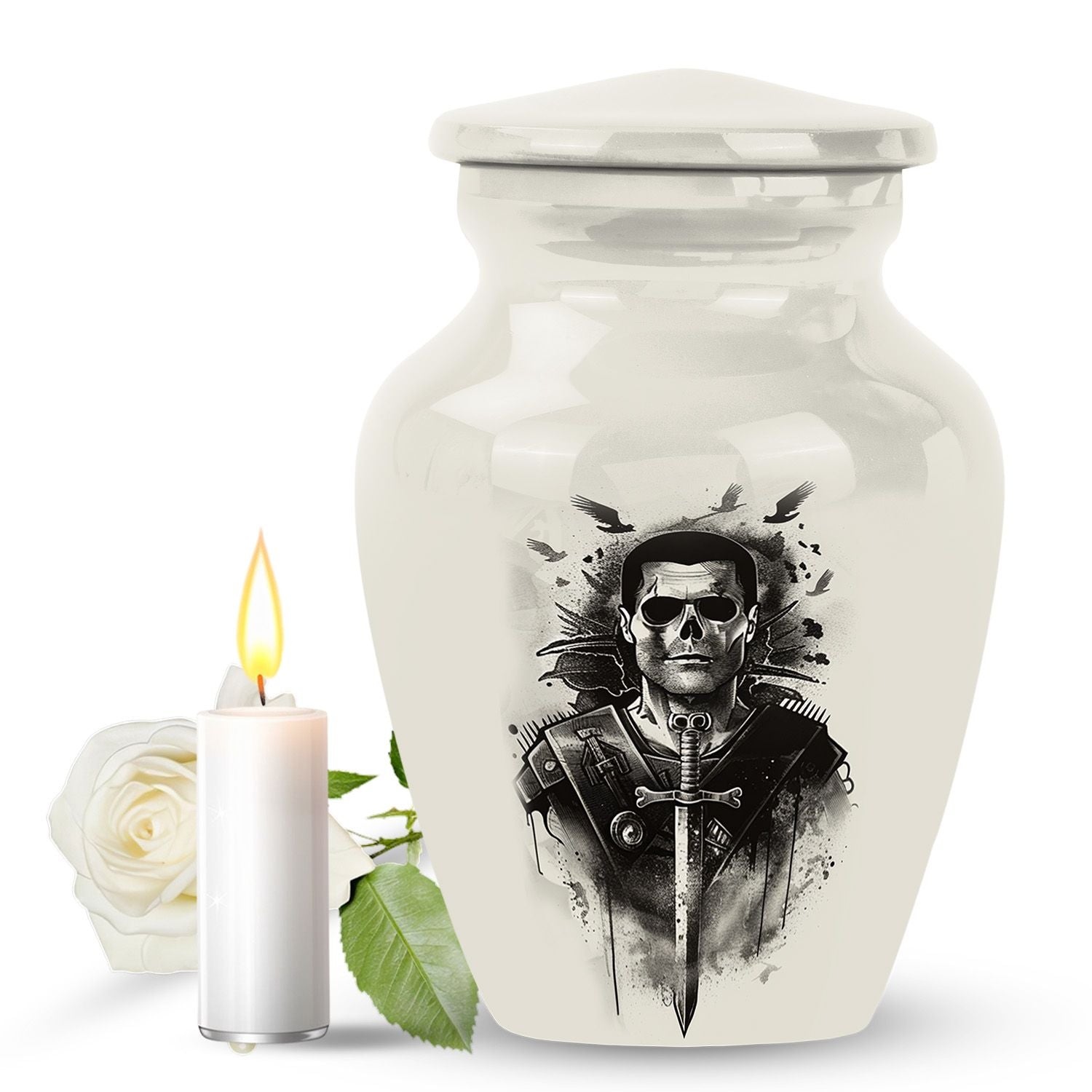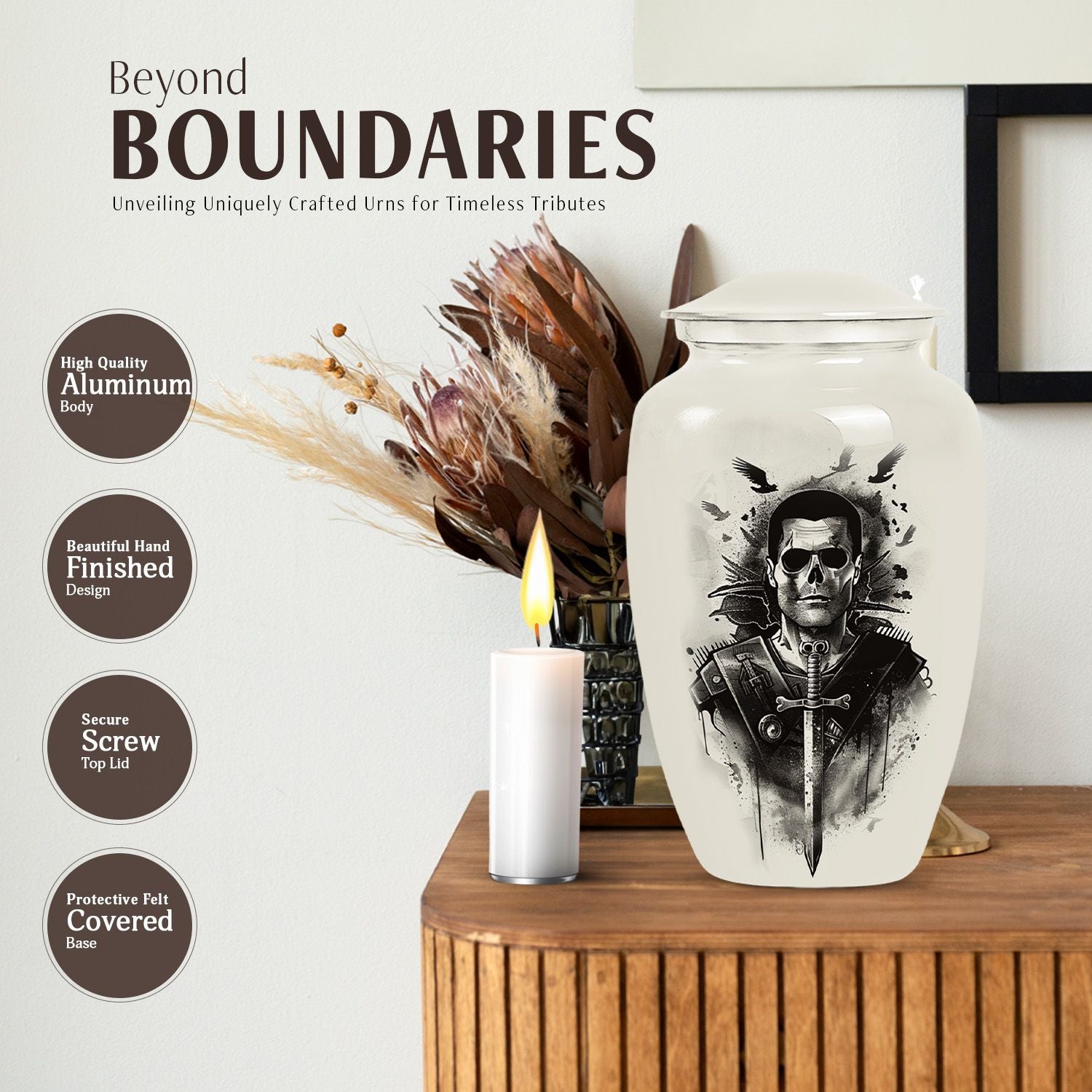 Introducing our meticulously crafted 10-inch Catholic Urn, an indispensable item in the line-up of burial funeral cremation urns. This large urn, with a weight of 3.3 pounds, is designed to accommodate 200 cubic inches of remains. A tangible tribute to your loved ones, it resonates with an abstract theme, adding to its celestial essence. Constructed from robust aluminium, the urn ensures longevity and flawlessness. The package includes a plush velvet pouch, offering a dignified containment for ashes. Personalize your tribute with engraved names, enhancing the ownership feeling. This cremation urn is a brilliant blend of functionality and aesthetics. Ideal for adult male or female ashes, this urn also serves as an artful ornamental addition to your home. Discover the comforting gesture in preserving your loved ones in this beautifully conceived Catholic urn.