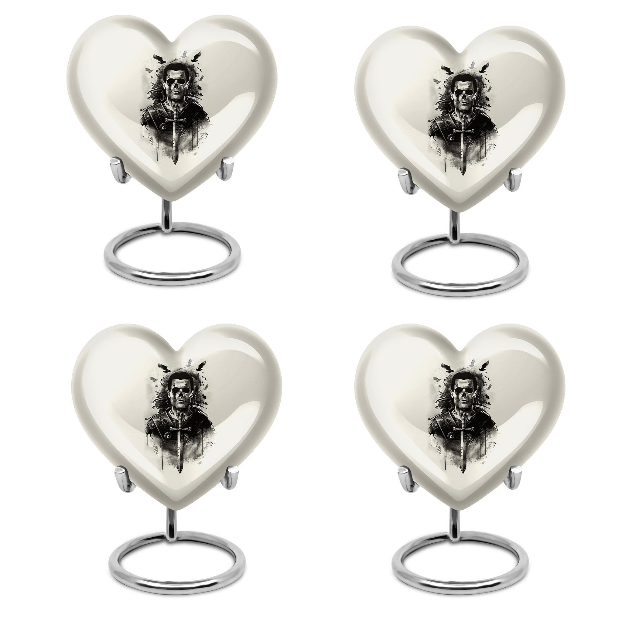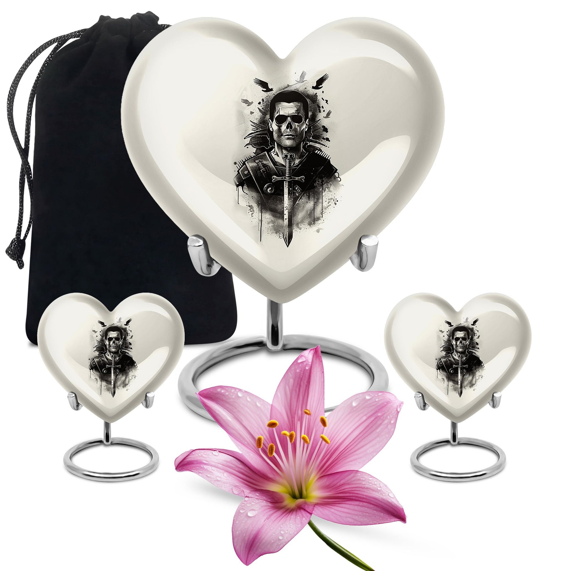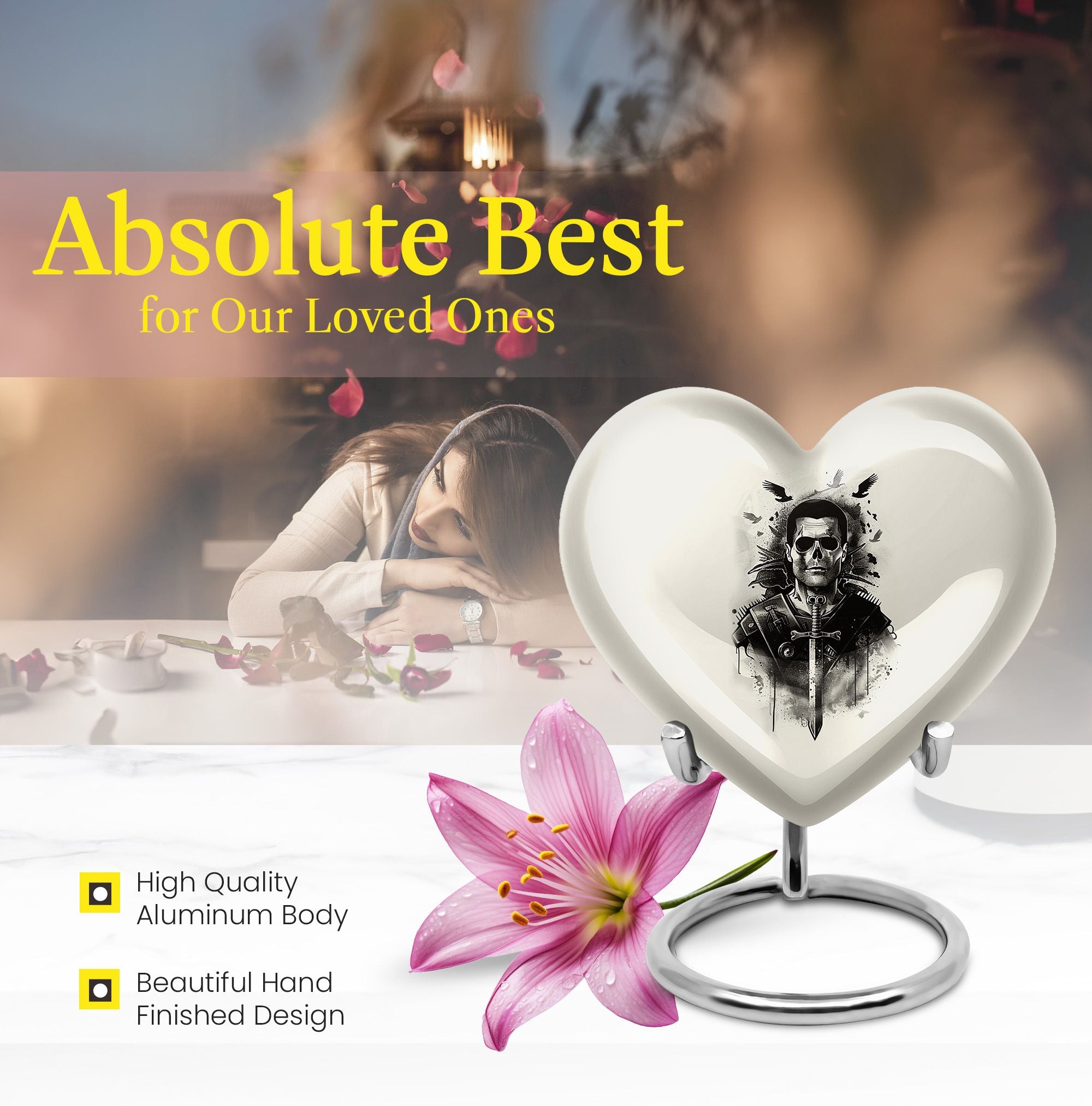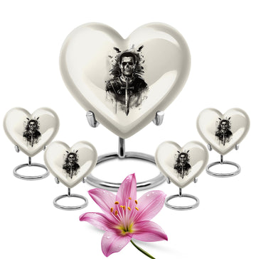 Honor your loved one's memory with our beautifully crafted, 10-inch tall Catholic Urn, a distinct choice among burial funeral cremation urns. Carefully weighing 3.3 pounds, this large urn, fashioned from high-grade Aluminium, evokes comfort and peace. Its compelling heart urn theme and abstract stylization create a cherished resting space for ashes. Each urn includes a velvet pouch, just apt to store cherished remembrances. With a substantial capacity of 200 cubic inches, it can accommodate adult male or woman’s ashes. As a thoughtful touch, you also have the option to personalize it with engraved names. Our Catholic urn stands out among cremation urns for human ashes, as this urn can be used as a decorative urn at home too. Note: 'Cremation urn' is an important search term to keep in mind when looking for our product. The durability and finish of our man's metal cremation urn will certainly impress.