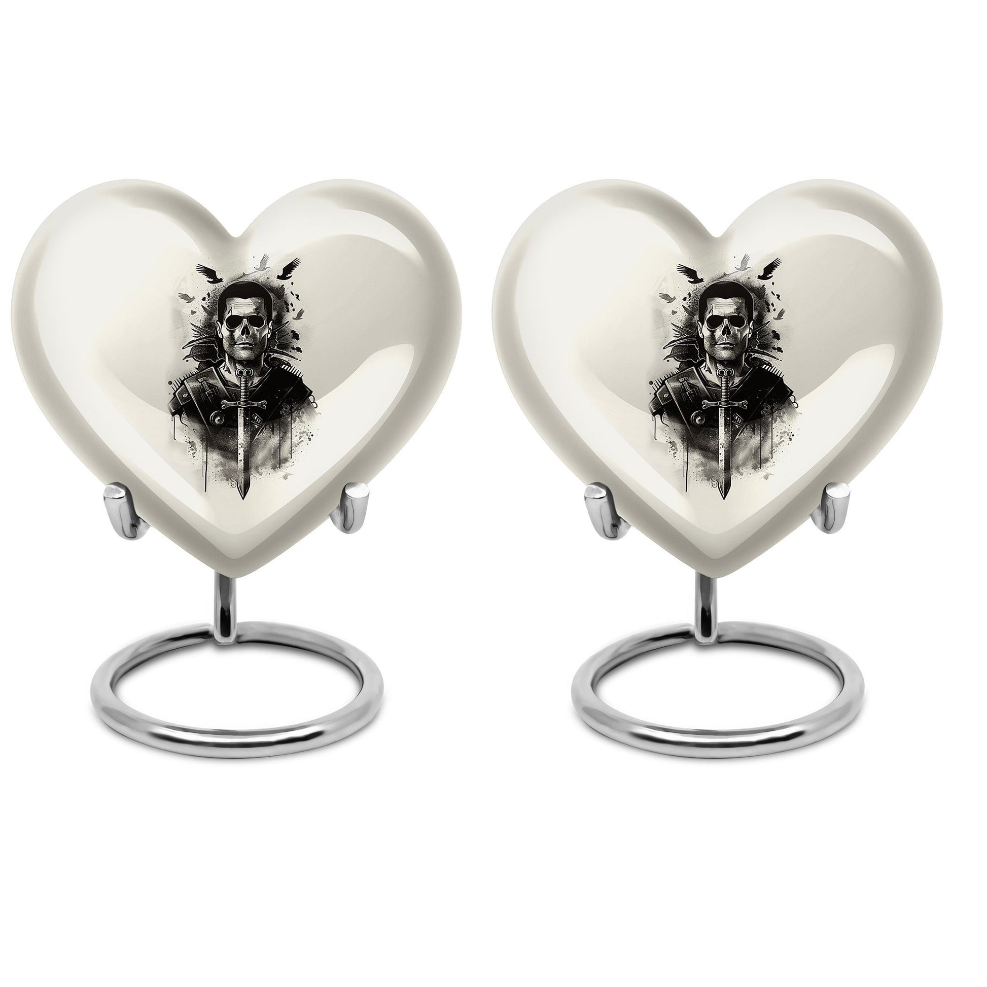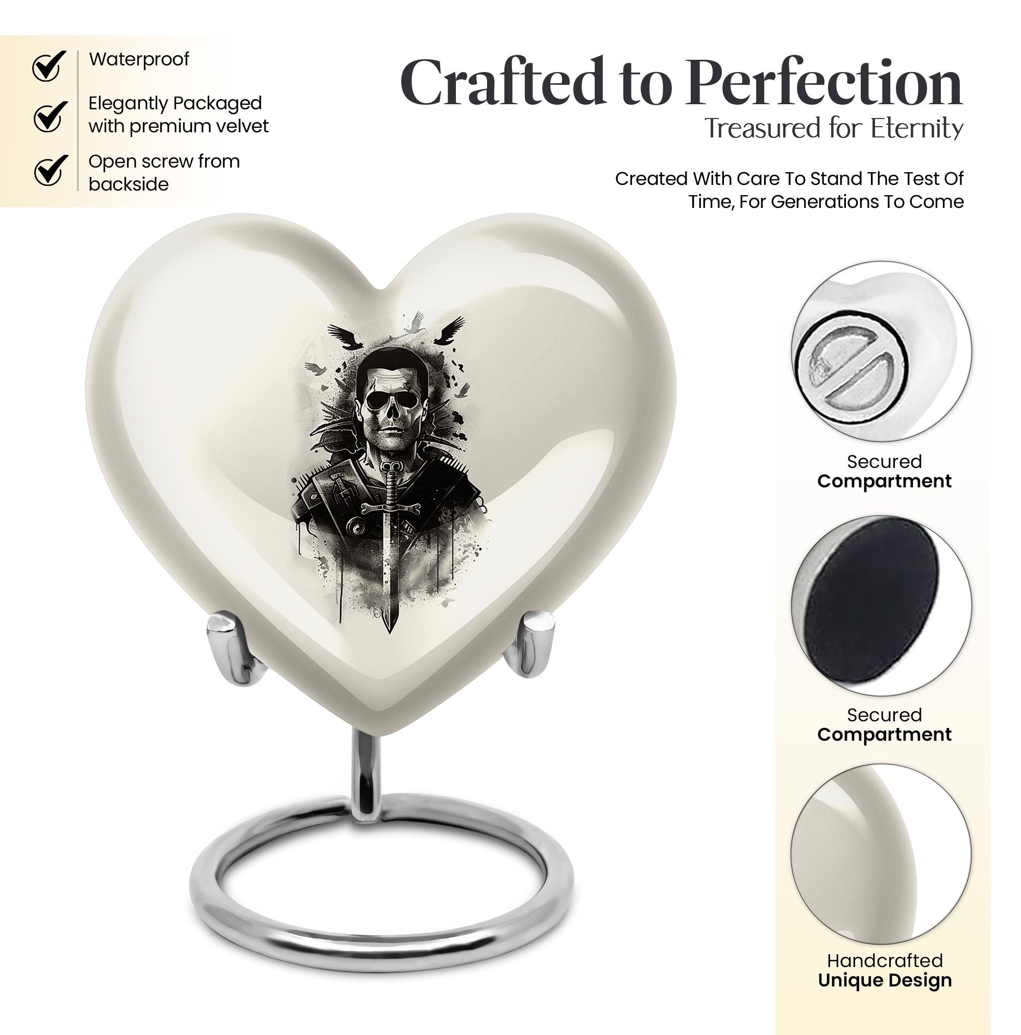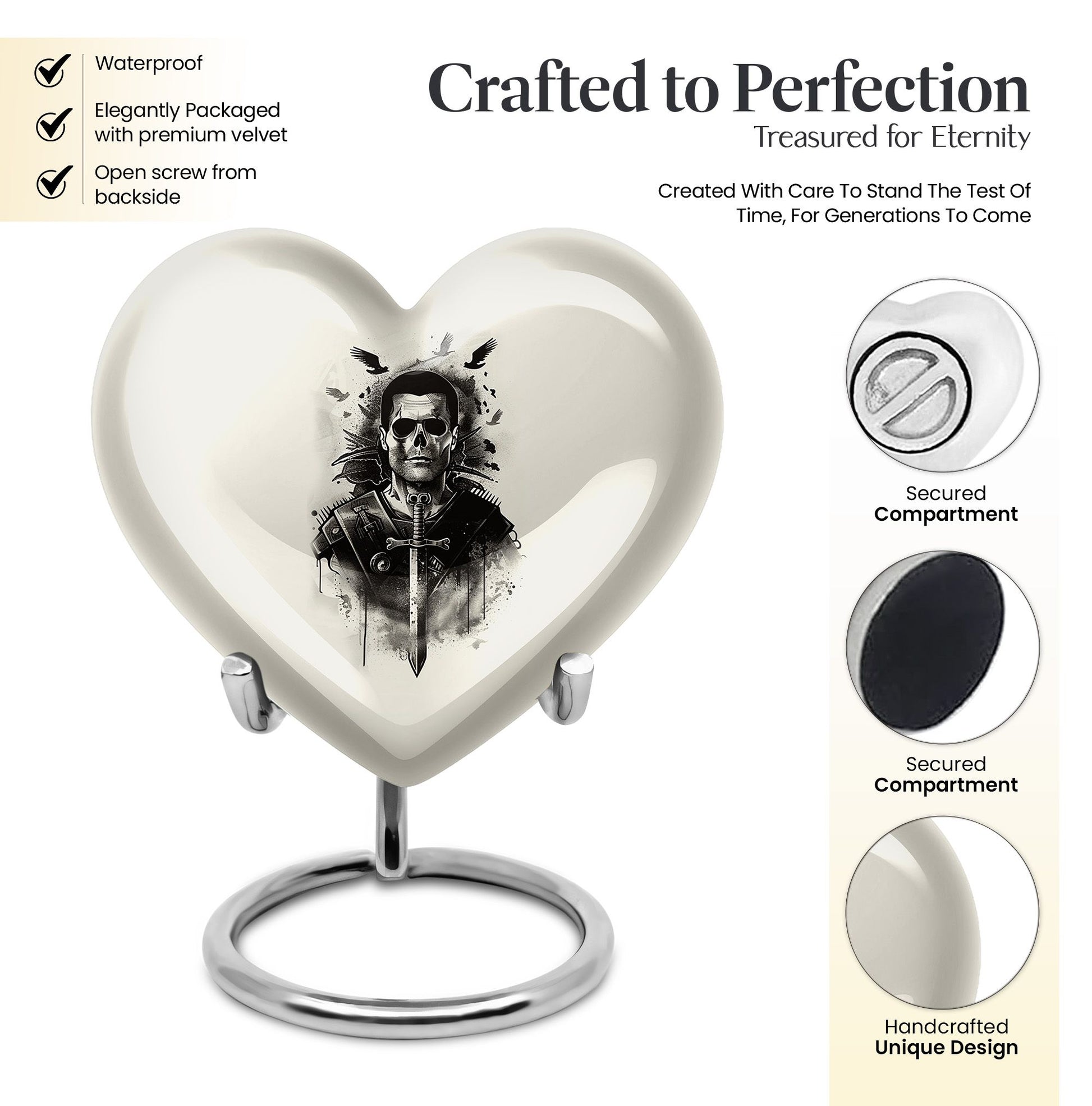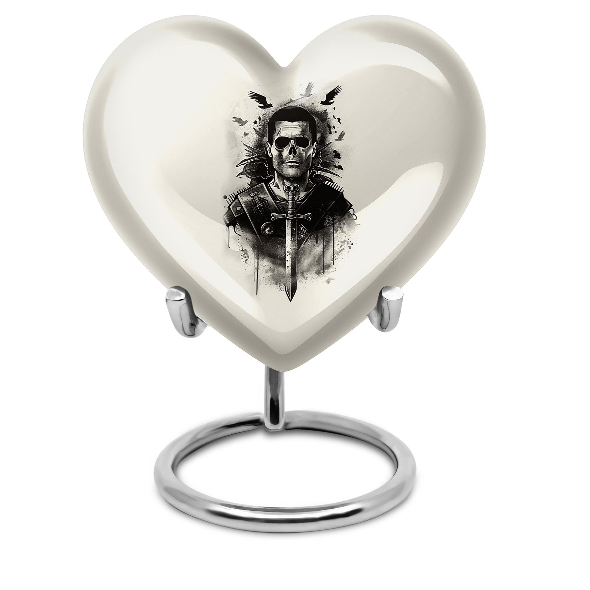 Honor your loved one's memory with our beautifully crafted, 10-inch tall Catholic Urn, a distinct choice among burial funeral cremation urns. Carefully weighing 3.3 pounds, this large urn, fashioned from high-grade Aluminium, evokes comfort and peace. Its compelling heart urn theme and abstract stylization create a cherished resting space for ashes. Each urn includes a velvet pouch, just apt to store cherished remembrances. With a substantial capacity of 200 cubic inches, it can accommodate adult male or woman’s ashes. As a thoughtful touch, you also have the option to personalize it with engraved names. Our Catholic urn stands out among cremation urns for human ashes, as this urn can be used as a decorative urn at home too. Note: 'Cremation urn' is an important search term to keep in mind when looking for our product. The durability and finish of our man's metal cremation urn will certainly impress.