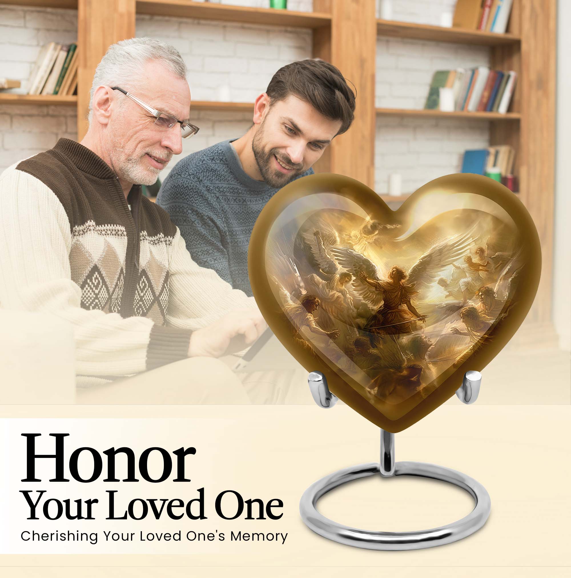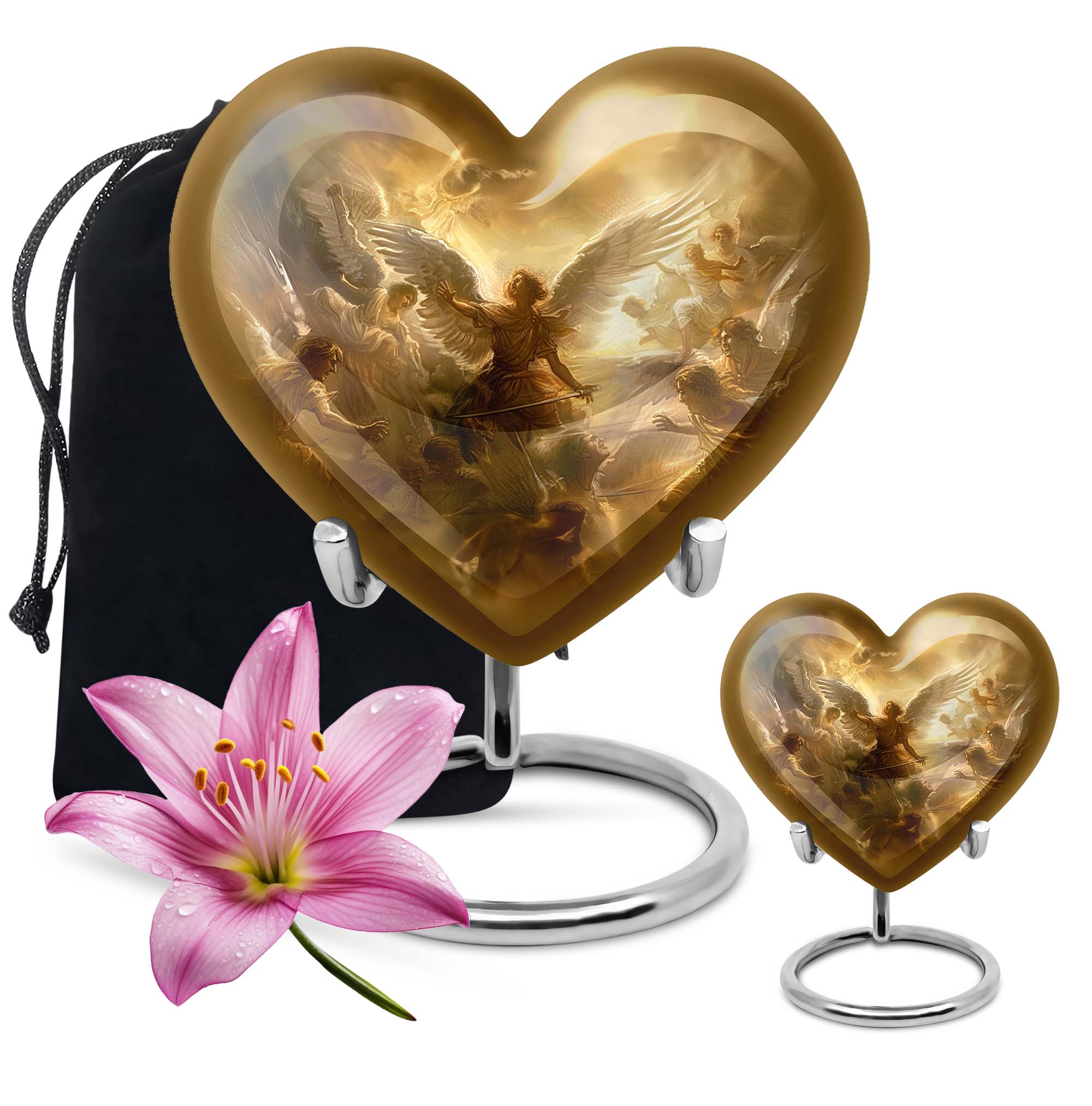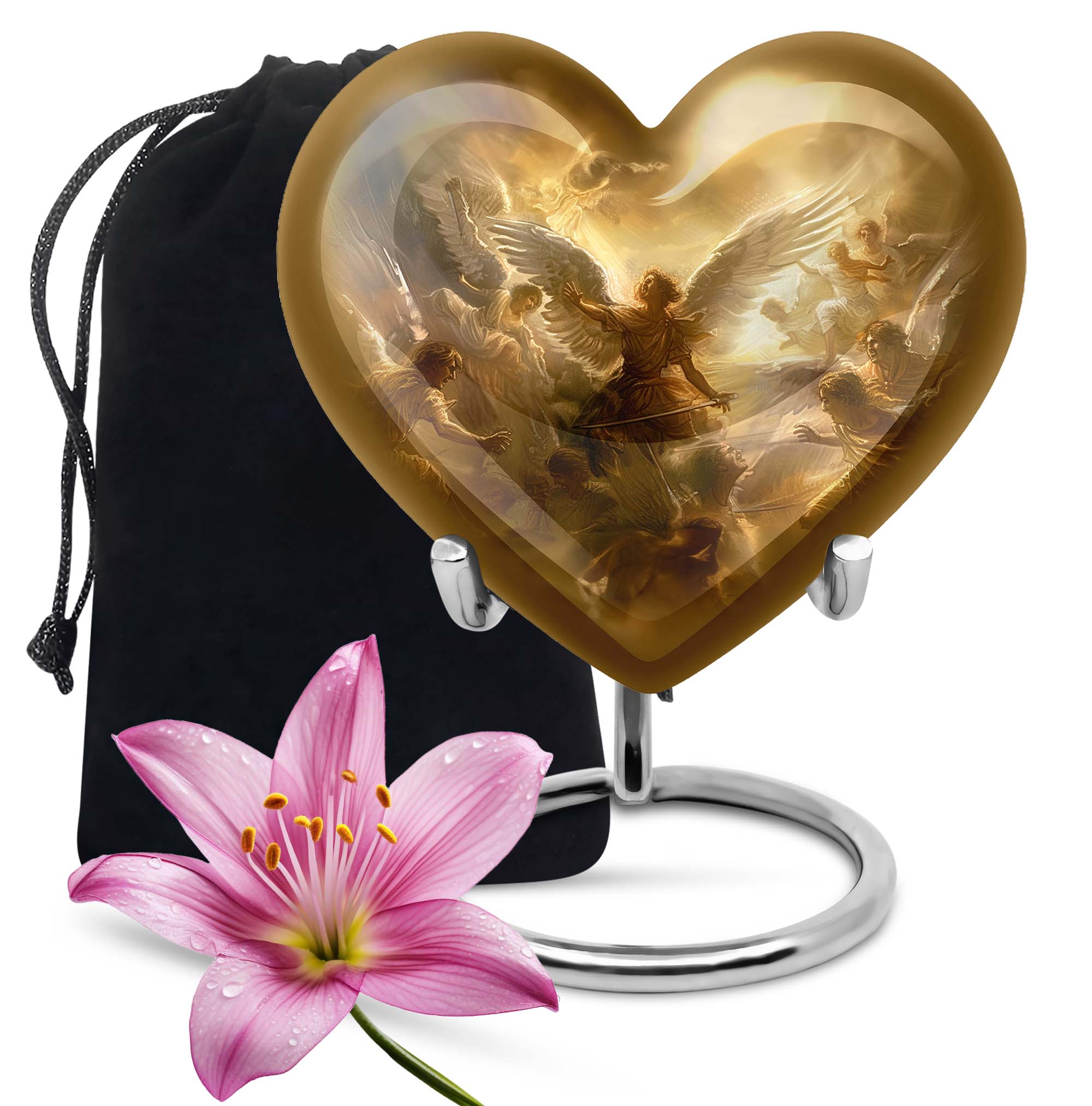 Make a cherished tribute to a dear departed with our elegantly designed catholic ovoid memorial urn. Sized at 10 inches and built to last, this robust cremation funeral urn is skilfully moulded from a sturdy aluminium, making it a timeless keepsake. The large urn is capacious enough, with a containment ability of 200 cubic inches, adequately suited to hold the ashes of an adult. We go a step further in offerings, providing a suave velvet pouch for secure storage. The urn weighs 3.3 pounds, making it relatively portable despite its size. Our urns hold a unique selling point in customization, with an option to get names beautifully engraved, ensuring each piece carries a signature essence of your loved one. The themed abstract design adds a touch of somber sophistication, making your urn more than just a vessel for ashes, but a decorative tribute radiating love and fond memories. Explore the kinds of catholic urns, funeral decorative urns, human urn ashes, urns for ashes, and cremation urns for human ashes adult male available on our store.