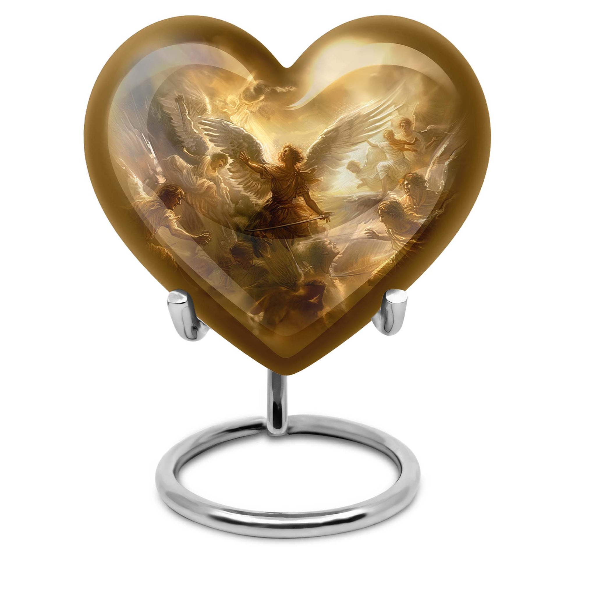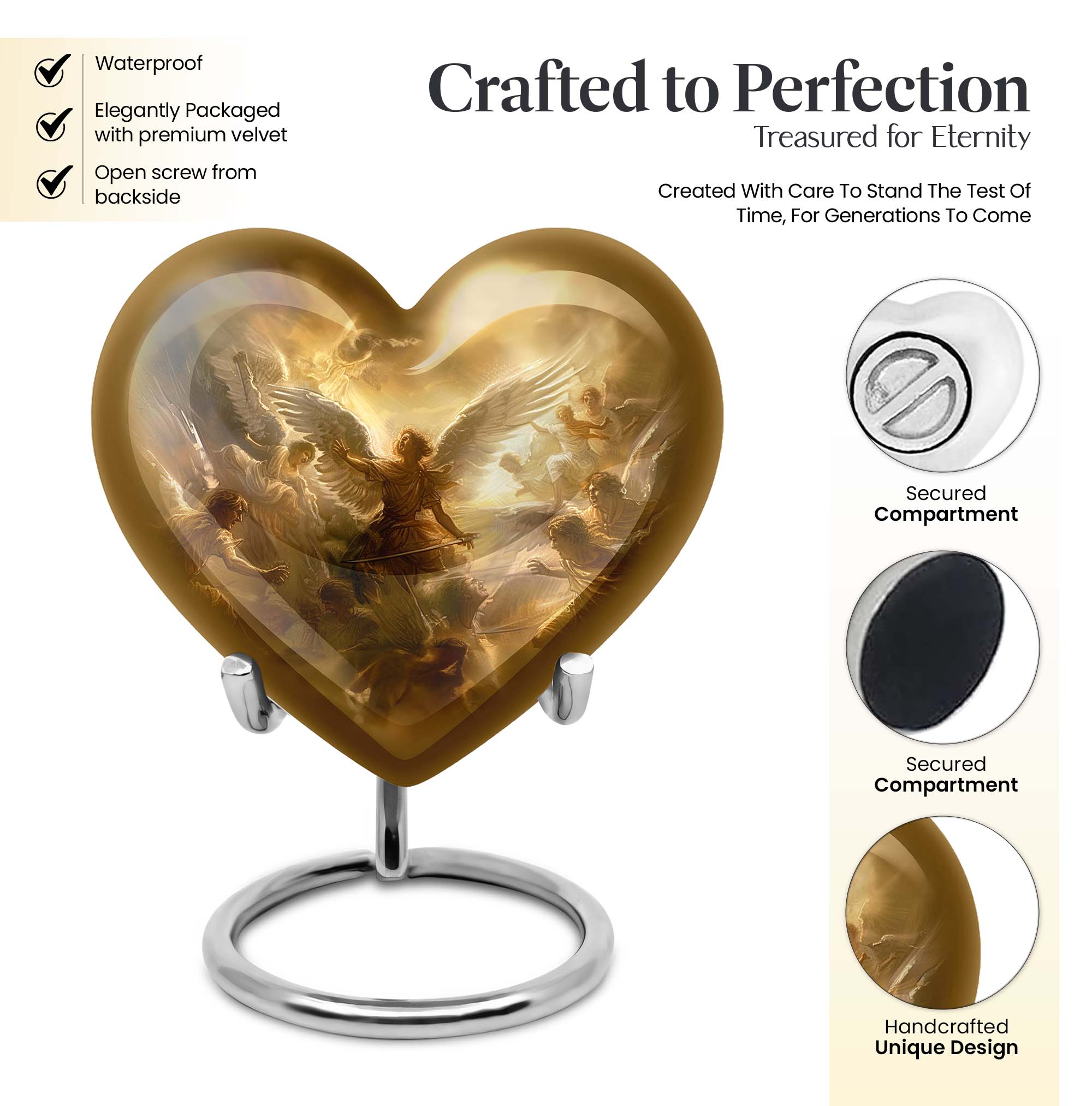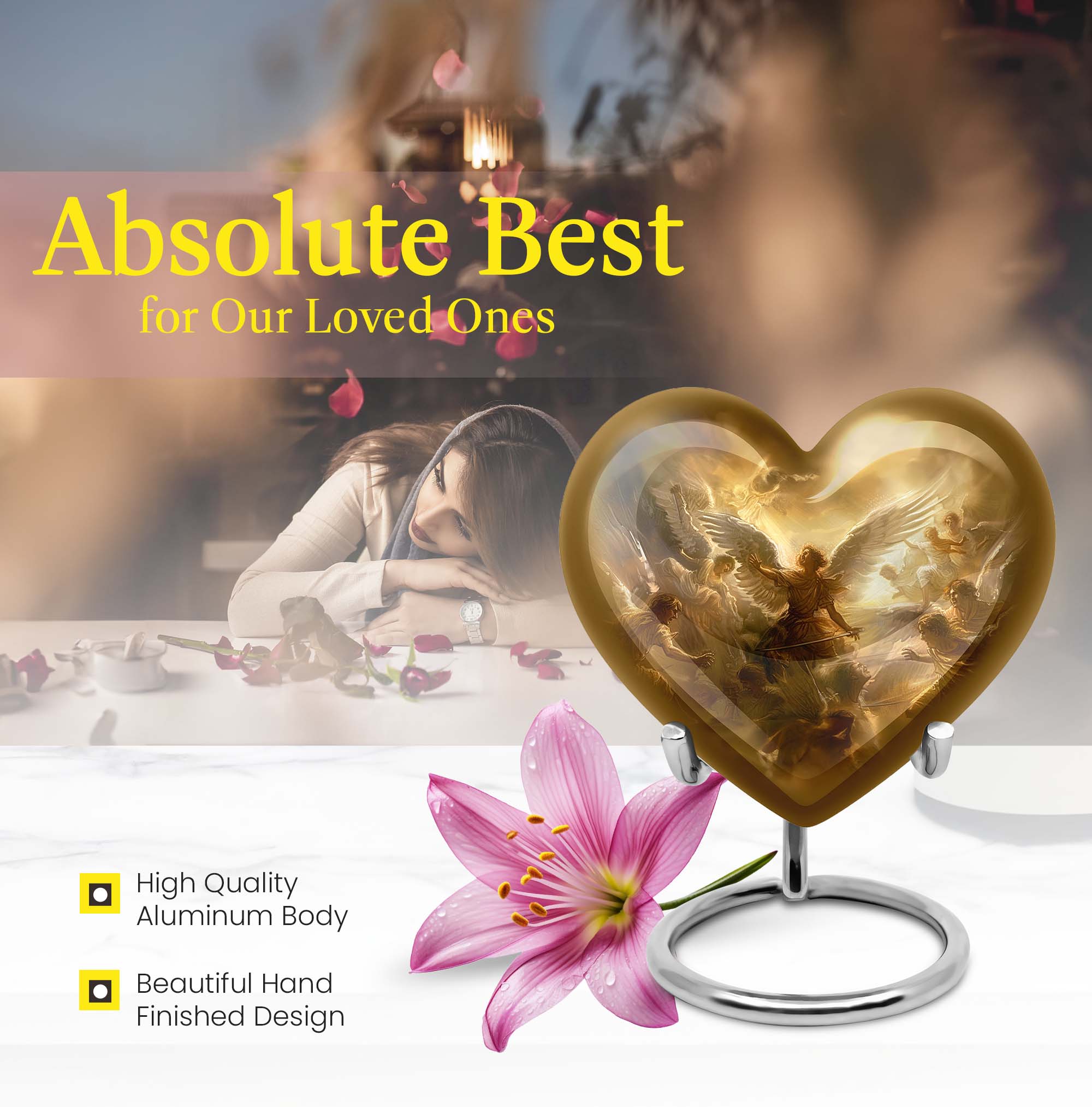 Make a cherished tribute to a dear departed with our elegantly designed catholic ovoid memorial urn. Sized at 10 inches and built to last, this robust cremation funeral urn is skilfully moulded from a sturdy aluminium, making it a timeless keepsake. The large urn is capacious enough, with a containment ability of 200 cubic inches, adequately suited to hold the ashes of an adult. We go a step further in offerings, providing a suave velvet pouch for secure storage. The urn weighs 3.3 pounds, making it relatively portable despite its size. Our urns hold a unique selling point in customization, with an option to get names beautifully engraved, ensuring each piece carries a signature essence of your loved one. The themed abstract design adds a touch of somber sophistication, making your urn more than just a vessel for ashes, but a decorative tribute radiating love and fond memories. Explore the kinds of catholic urns, funeral decorative urns, human urn ashes, urns for ashes, and cremation urns for human ashes adult male available on our store.