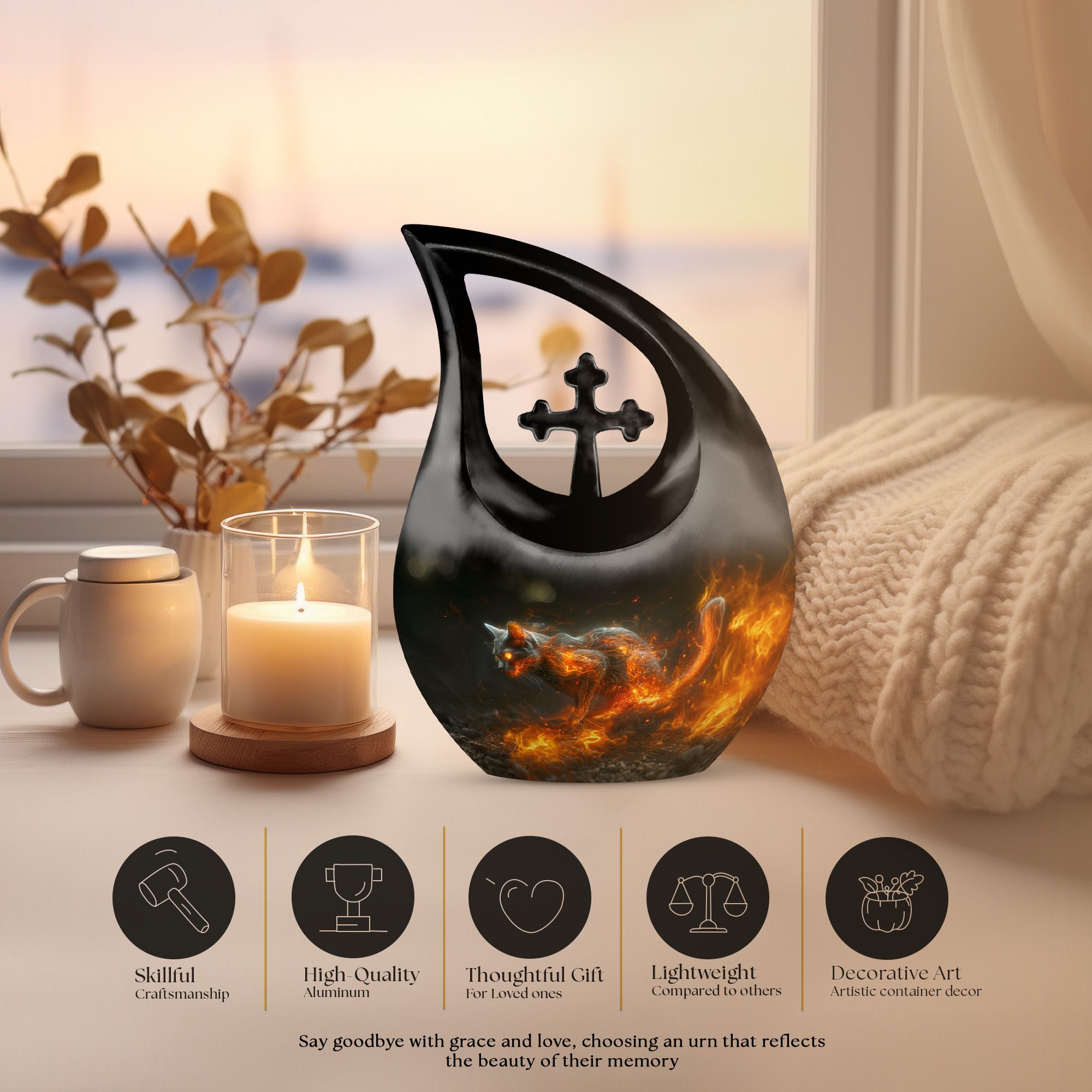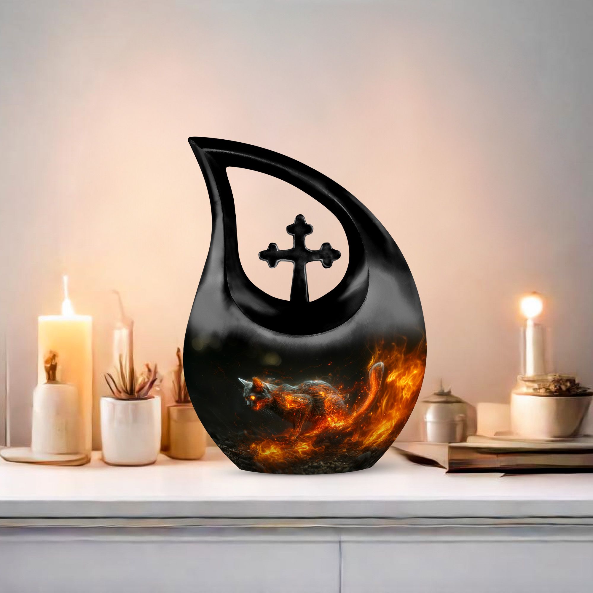 Honor your cherished companion with the Fiery Cat Memorial Urn for Ashes – Flaming Cat Themed Urn for Pet. Crafted for cat lovers who want a tribute as bold and unforgettable as their feline’s personality, this design captures the power of devotion and the enduring flame of love. A radiant choice among modern pet urns, it’s ideal for cat memorials and keepsakes that express both passion and remembrance.