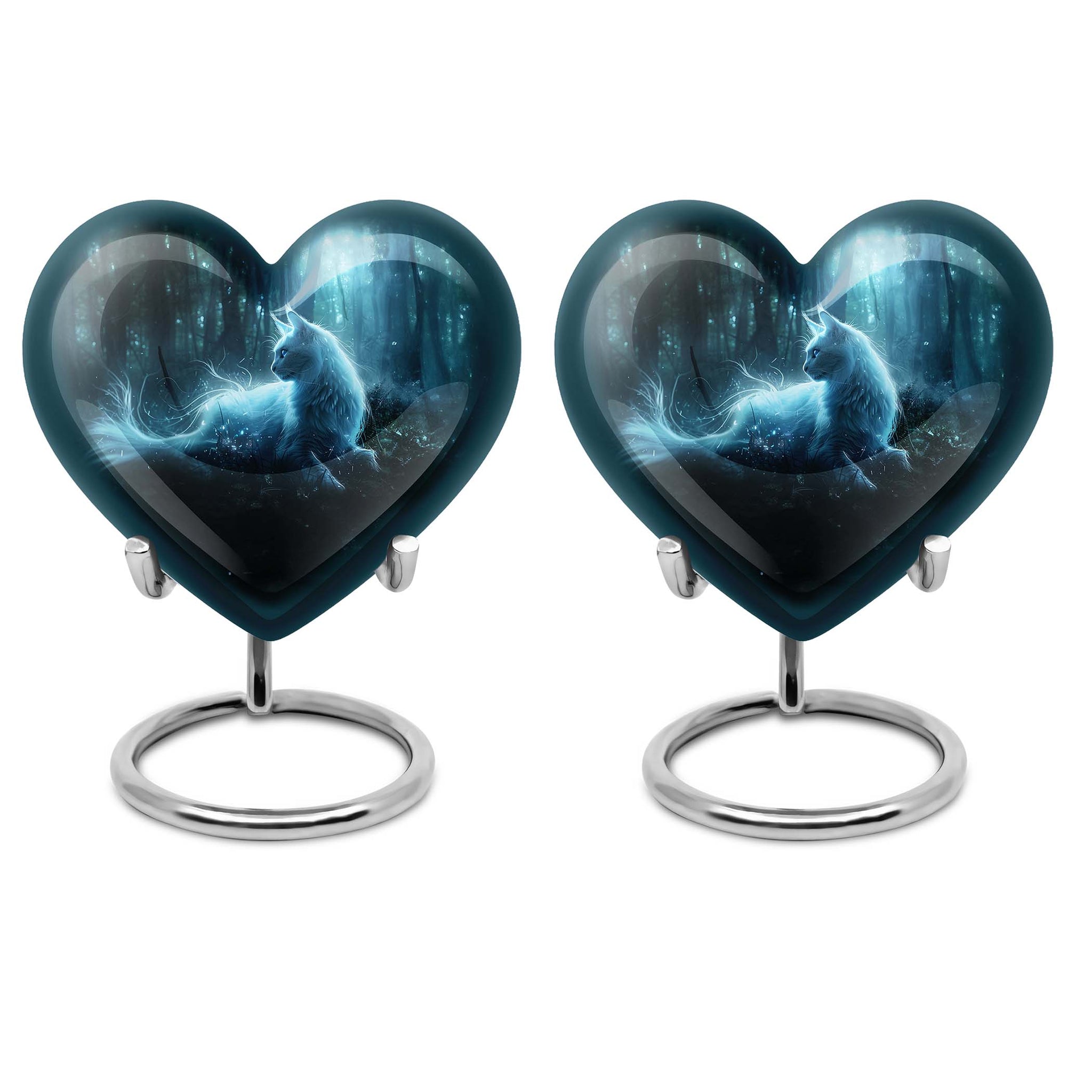 Introducing a solemn and respectful way to remember your departed loved ones with this 10-inch 'Heart Urn’. Crafted with precision from resilient aluminium, its design holds an abstract theme that amplifies its visual appeal. This memorial large urn is not just an adornment but also a vessel of remembrance with a capacity of 200 cubic inches, ample for human ashes. Despite the robust material and large size, it just weighs a modest 3.3 pounds making it easy to position at your preferred spot. Our pack comes with a velvet pouch to respectfully contain the ashes. What’s distinctive about the 'Heart Urn' is the customizable attribute; personalize it with the engraved names of your loved ones to forever etch their memory in your heart. Considering the terms that our target audience may use, this cat urn is perfect in categorization as both cremation urns for men and cremation urns for women.
