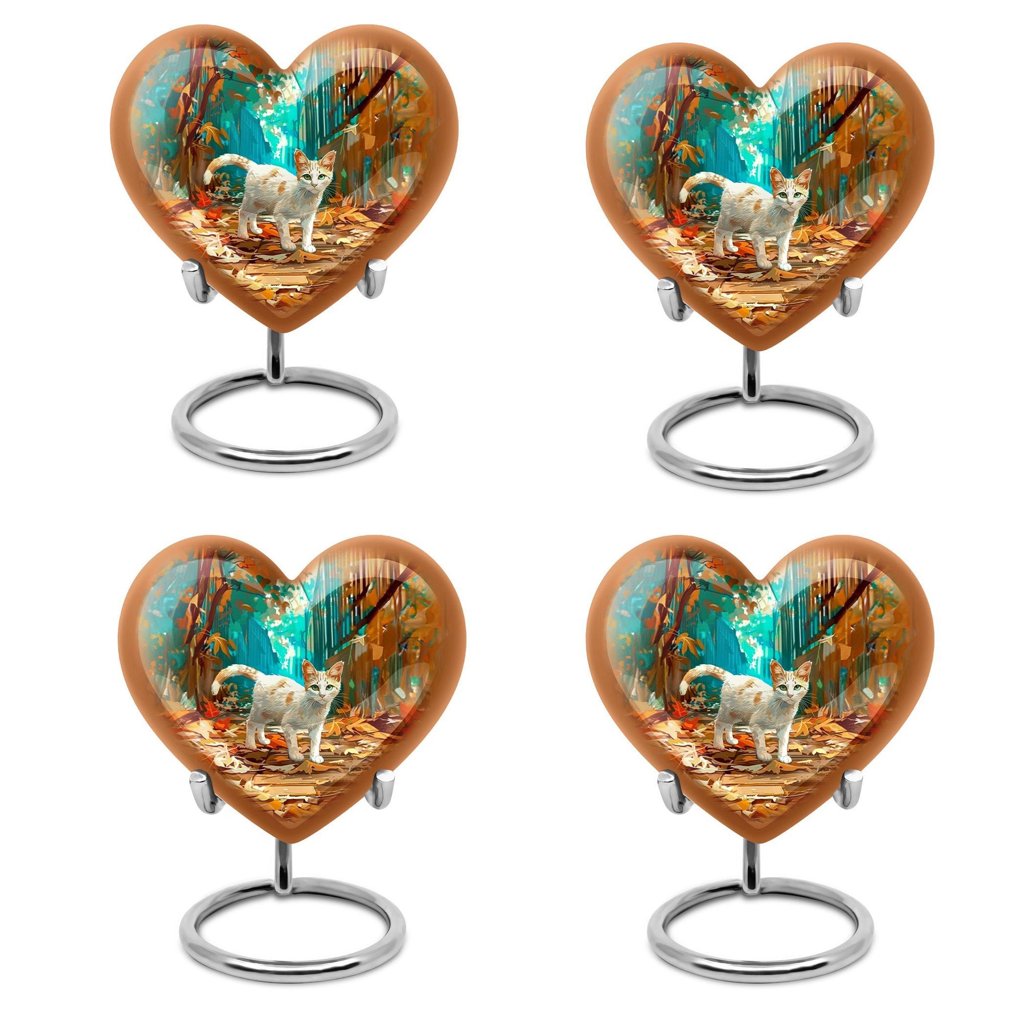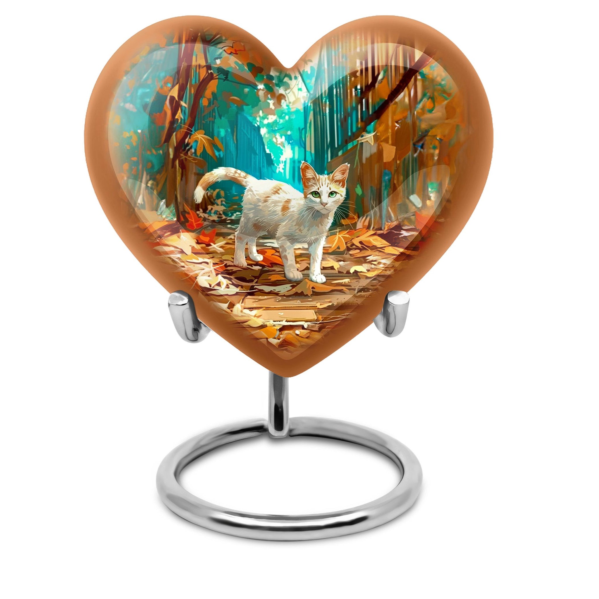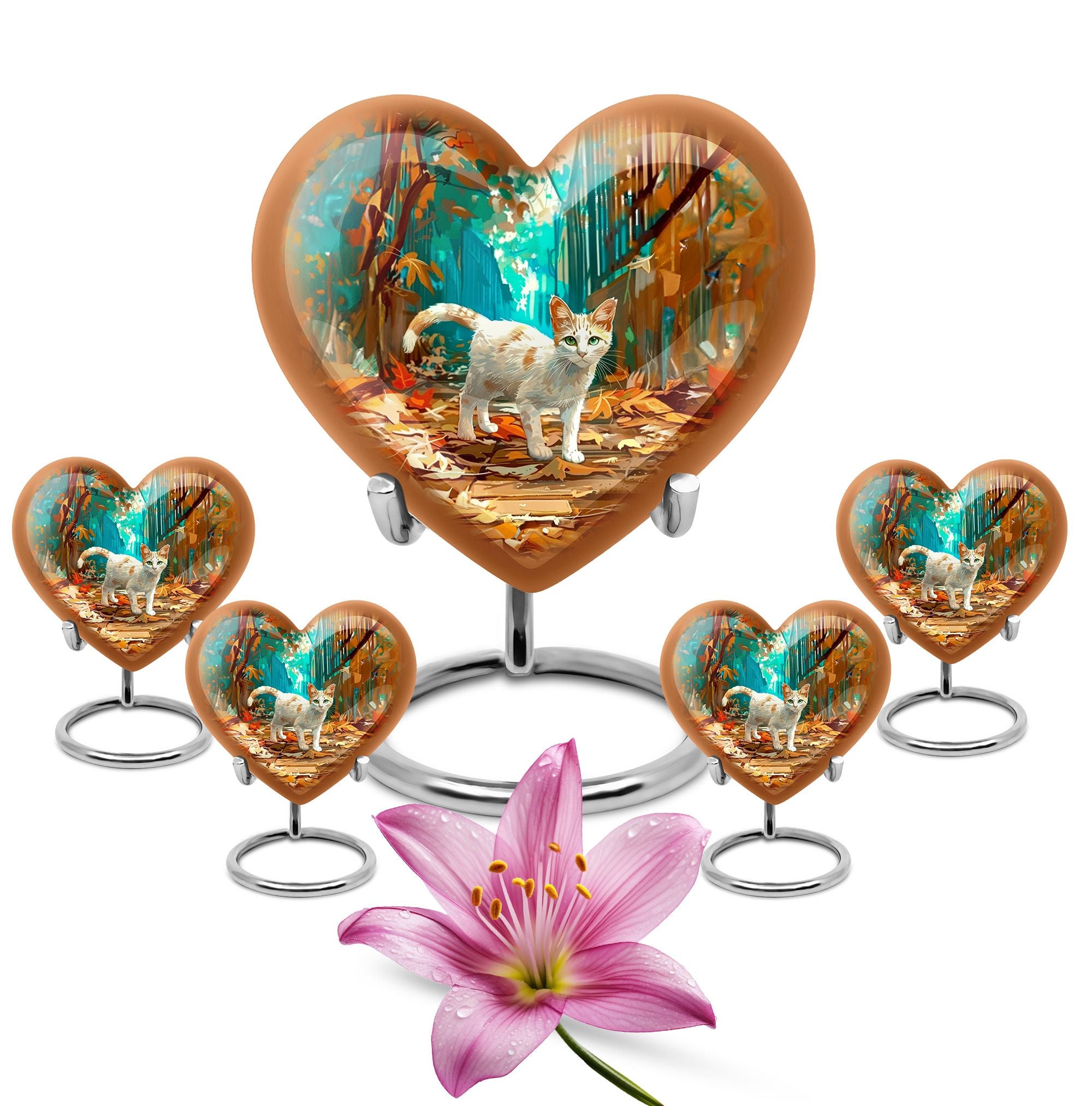 Find peace and solace by keeping your loved one close to your heart. Our 10-inch white cat urn is meticulously crafted out of high-quality aluminum, subtly reflecting both strength and grace. The overall weight of this burial ash urn for humans is 3.3 pounds, designed specifically for large urns category. The capacity is substantial, accommodating up to 200 cubic inches of remains in a secure manner. The abstract-theme heart urn is accompanied by a comfortable velvet pouch, providing a safe space for the containment of ashes. To add a touch of personal connection, you can opt to personalize this urn with engraved names. This cremation urn is equipped to cater to all adults - be it a female, male, or any gender. The overall design, shape, and size make it universally fitting, further harnessing the sentimental value of the cremation urns for adult ashes.
