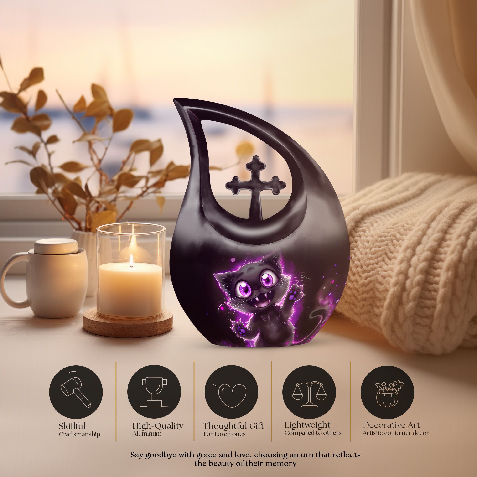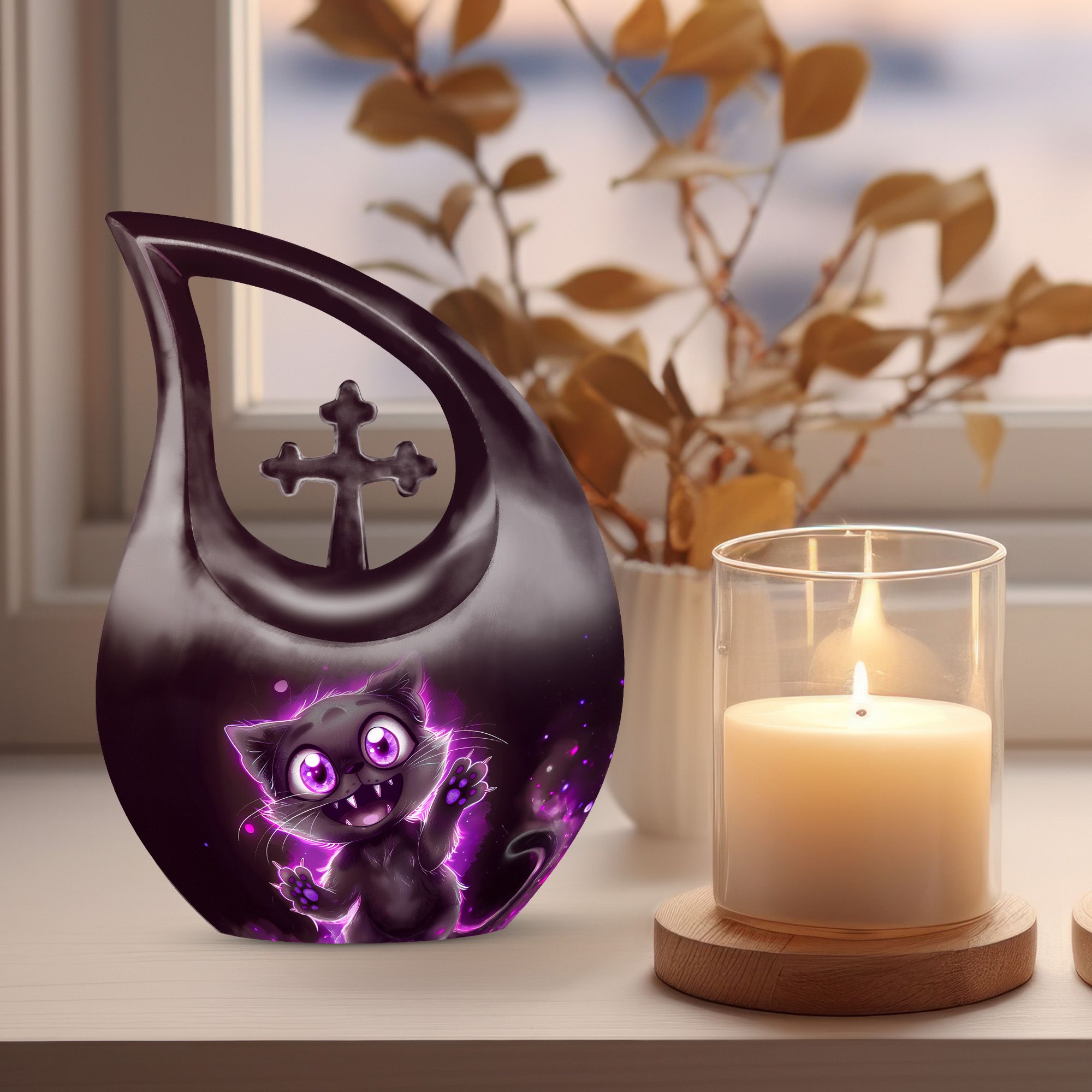 This Cat Cremation Urn provides a tender and dignified way to honor the memory of a cherished feline friend. Designed with heartfelt detail, the cute purple-eyed kitten artwork adds warmth and comfort, making it a meaningful choice among cremation urns adult options. Whether used as an urn for cremation or added to a cremation ashes keepsake collection, it offers a beautiful way to preserve treasured memories.